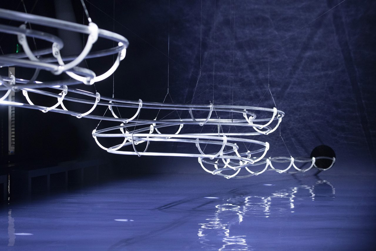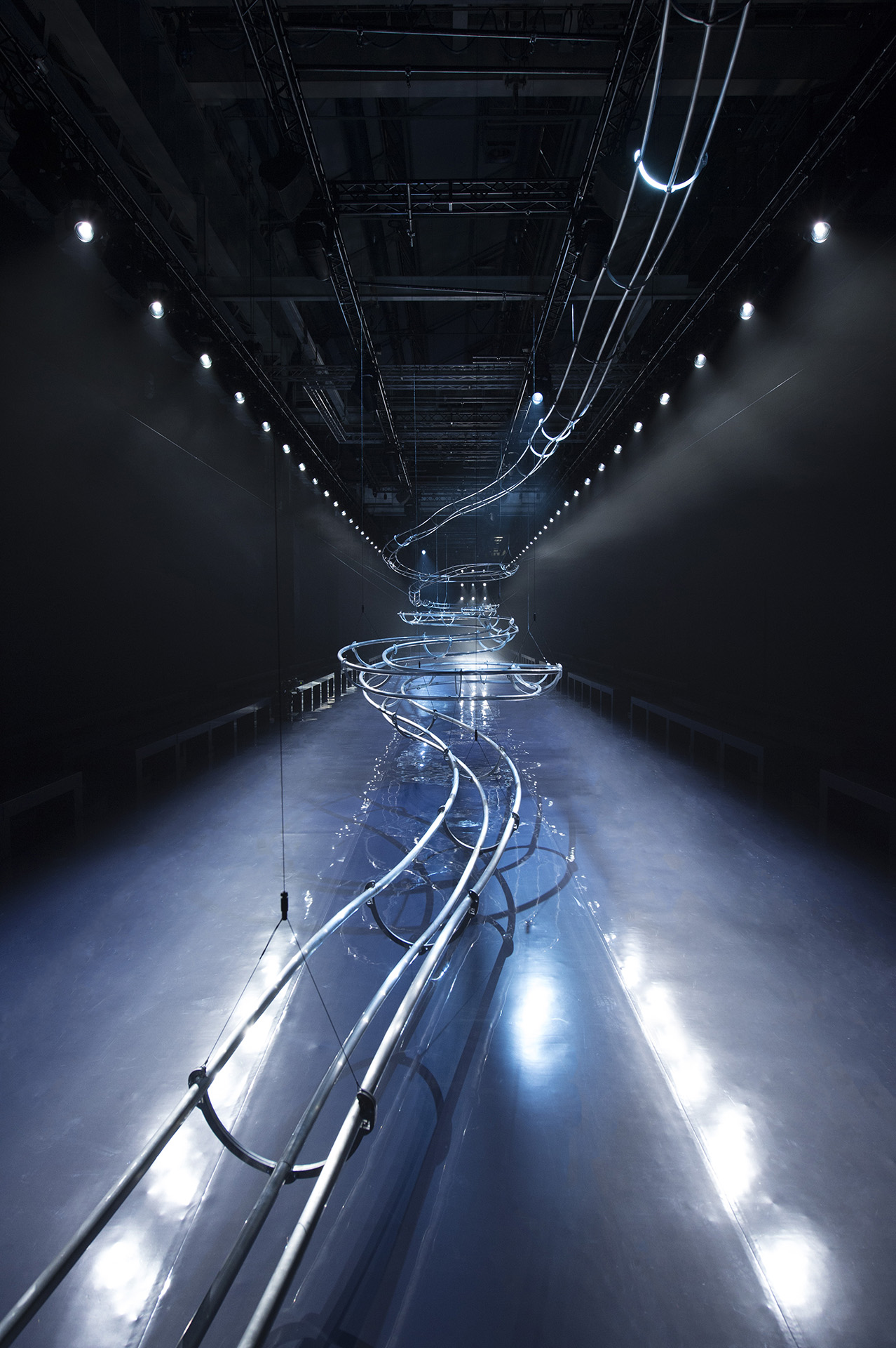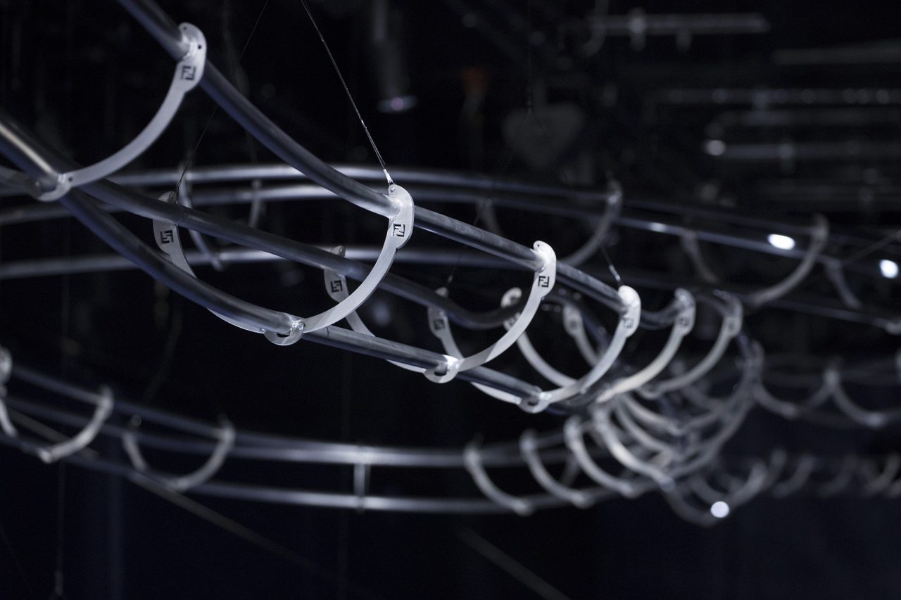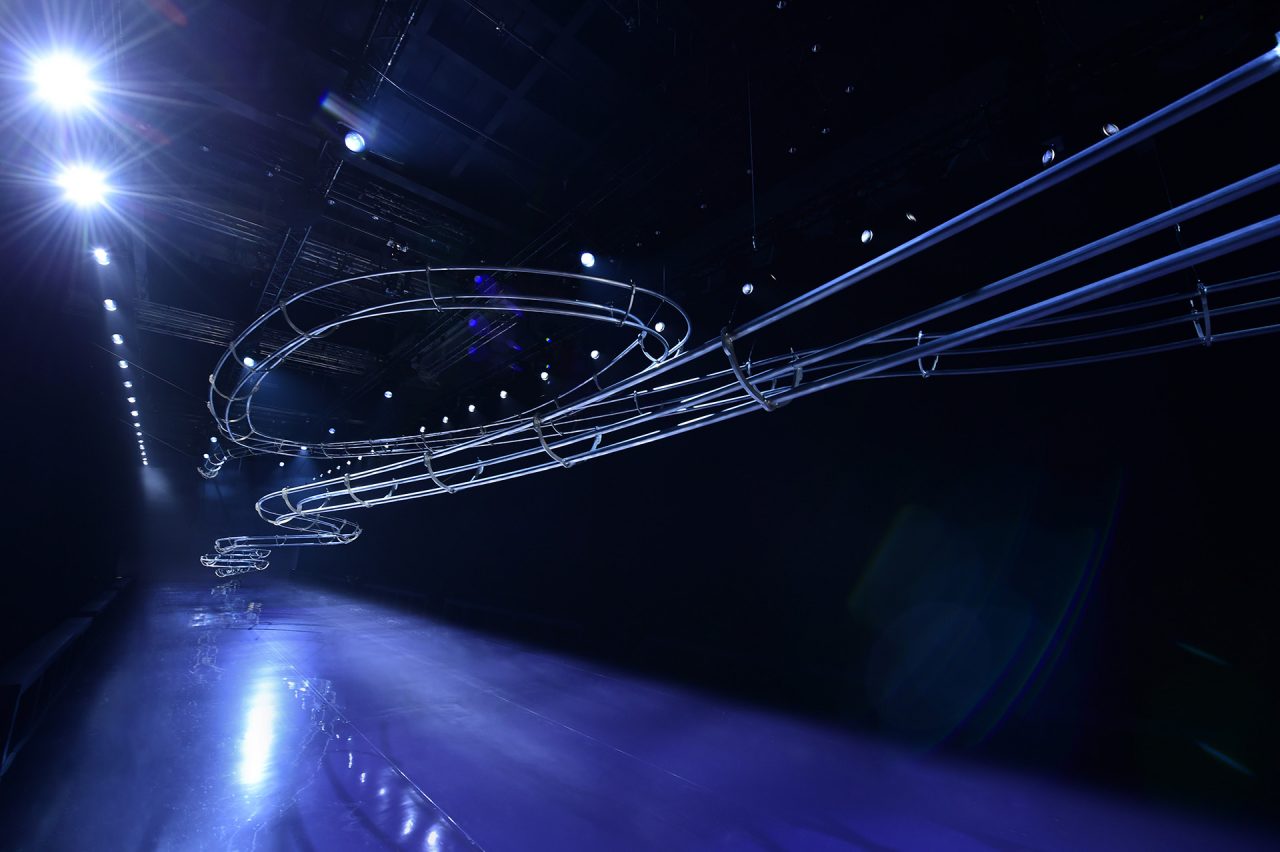 会場のミラノのショールームには、巨大なローラーピンボールマシンを設置。伝説的なイタリアのミュージックディレクター Giorgio Moroder (ジョルジオ・モロダー) によるディスコサウンドトラック「After Dark (アフターダーク)」にのせてショーは始まった。本コレクションでは、目の錯覚を起こさせるトロンプ・ルイユを用いた本コレクションでは、ダイナミックなワークマンシップによりメゾンのコードにひねりを加え、贅沢な質感と艶を新たに生み出している。メンズウェアの無骨さとトラディショナルなシルエットの境界線をぼかし、都市のデカダンスと夜に輝くライトを表現した。