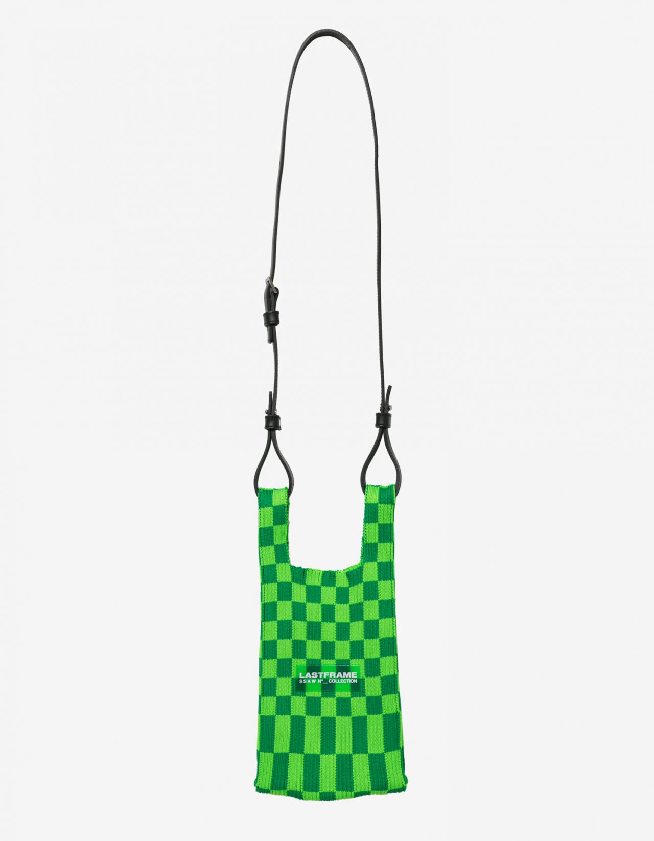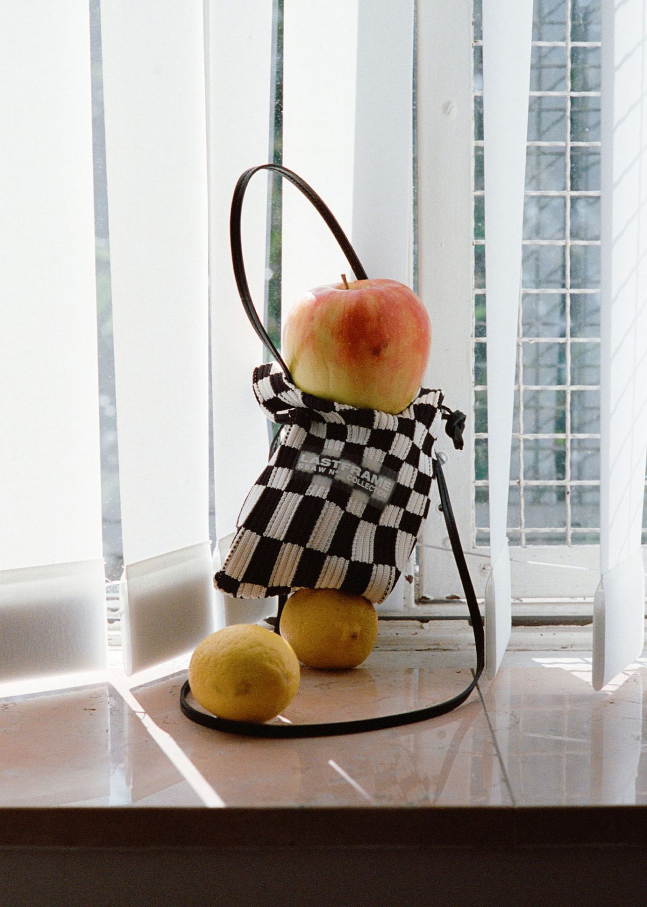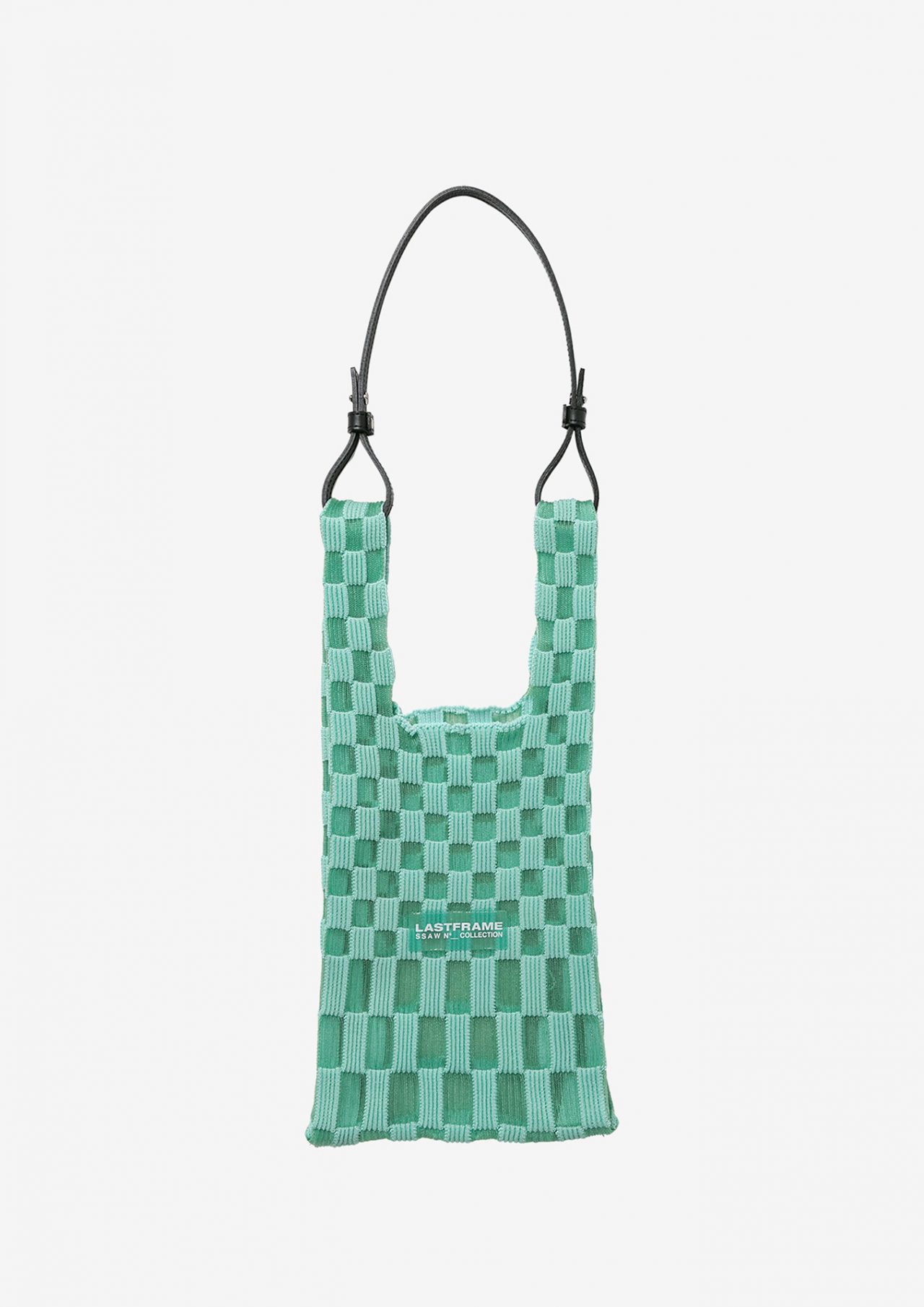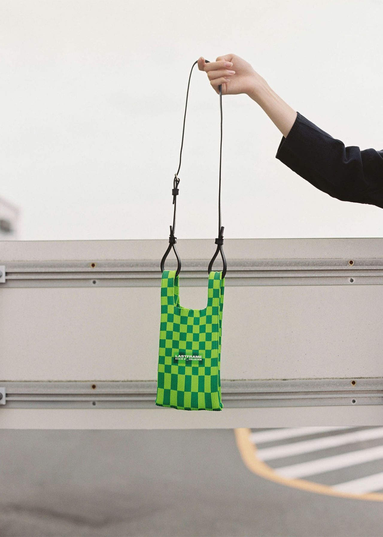 「世界最高レベルの日本の伝統技術を未来に継承する」ことをコンセプトに日本のものづくりに拘るブランド LASTFRAME。今回のポップアップで展開されるニットバッグは、日本国内に数台しかない特殊な編み機で、張りとボリュームを持たせるために別注で作られた伸縮性のあるポリエステルの撚糸を採用。インターシャ編みで細かな柄が編み立てられ、実際に触れることで日本の技術の高さを感じることができる LASTFRAME を象徴するアイテムだ。