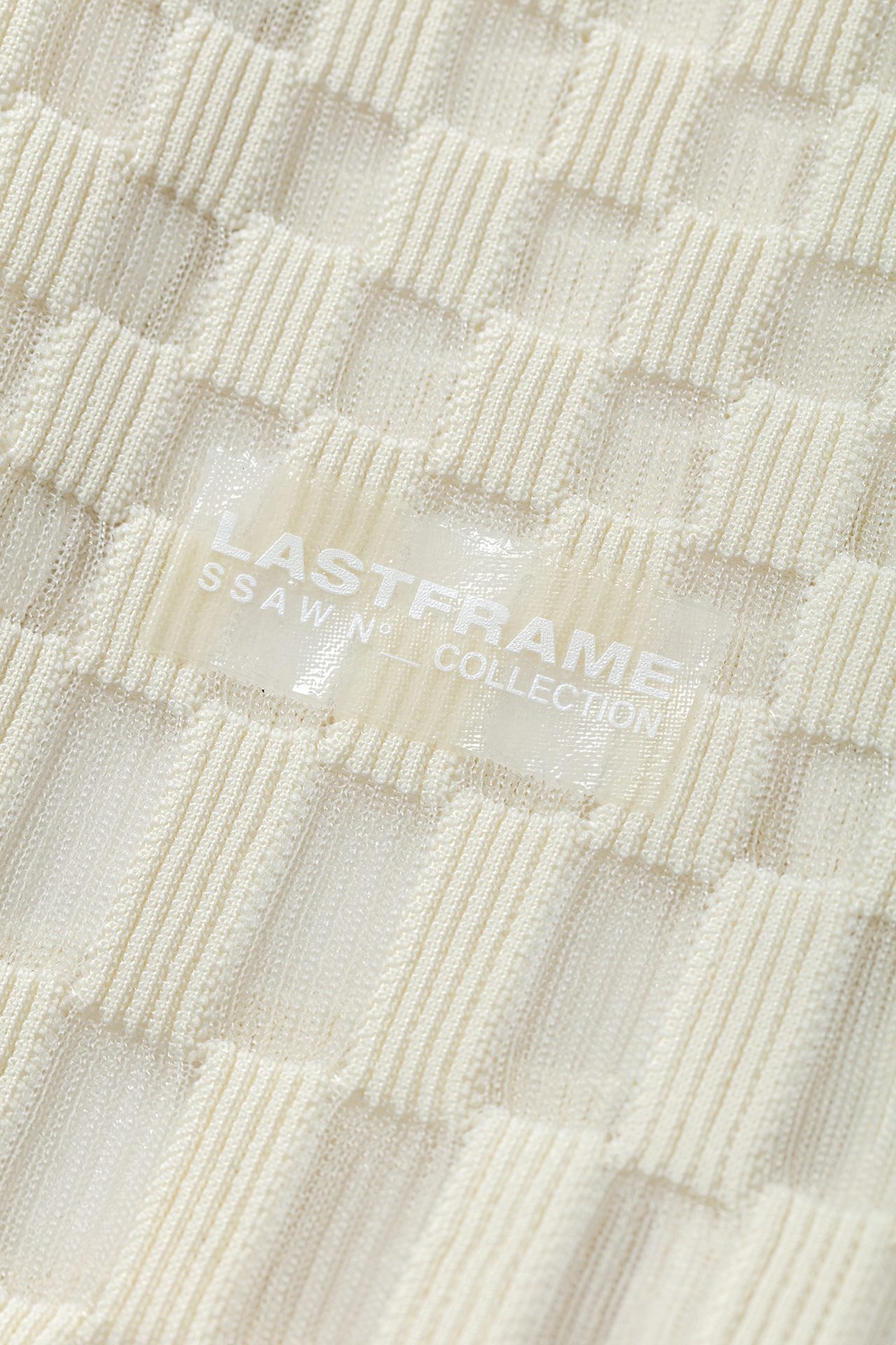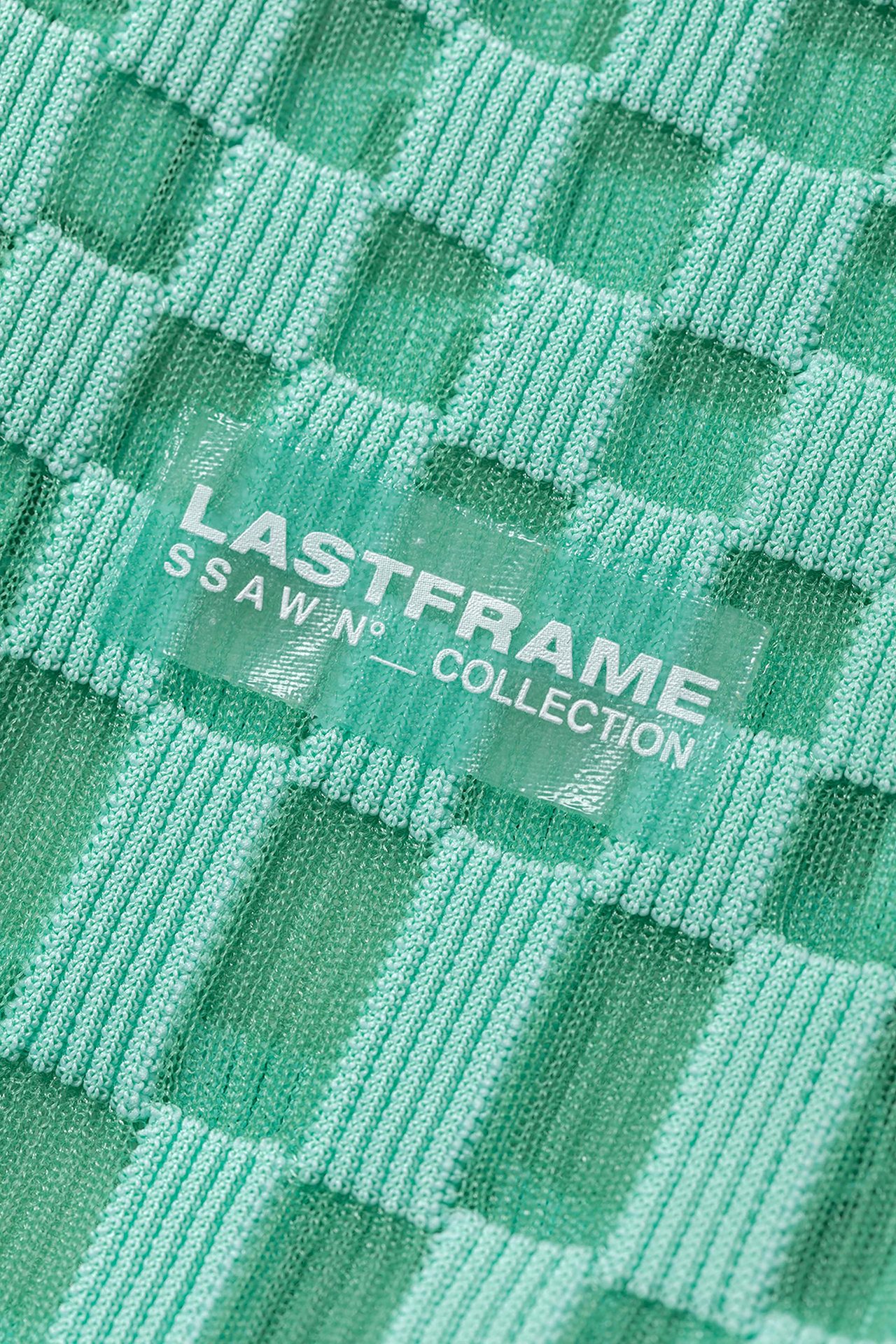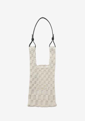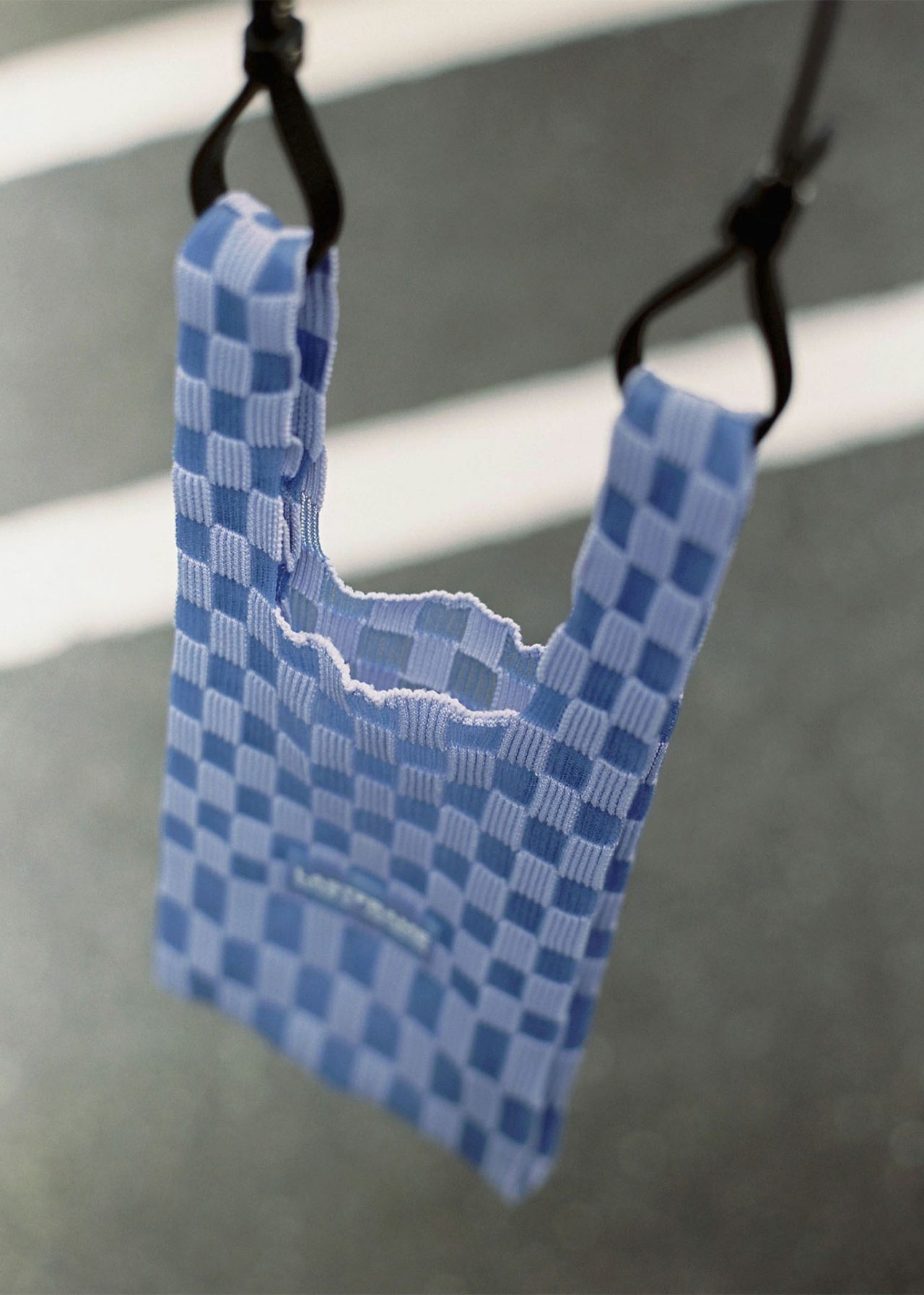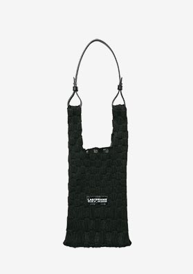 「世界最高レベルの日本の伝統技術を未来に継承する」ことをコンセプトに日本のものづくりに拘るブランド LASTFRAME。今回のポップアップで展開されるニットバッグは、日本国内に数台しかない特殊な編み機で、張りとボリュームを持たせるために別注で作られた伸縮性のあるポリエステルの撚糸を採用。インターシャ編みで細かな柄が編み立てられ、実際に触れることで日本の技術の高さを感じることができる LASTFRAME を象徴するアイテムだ。