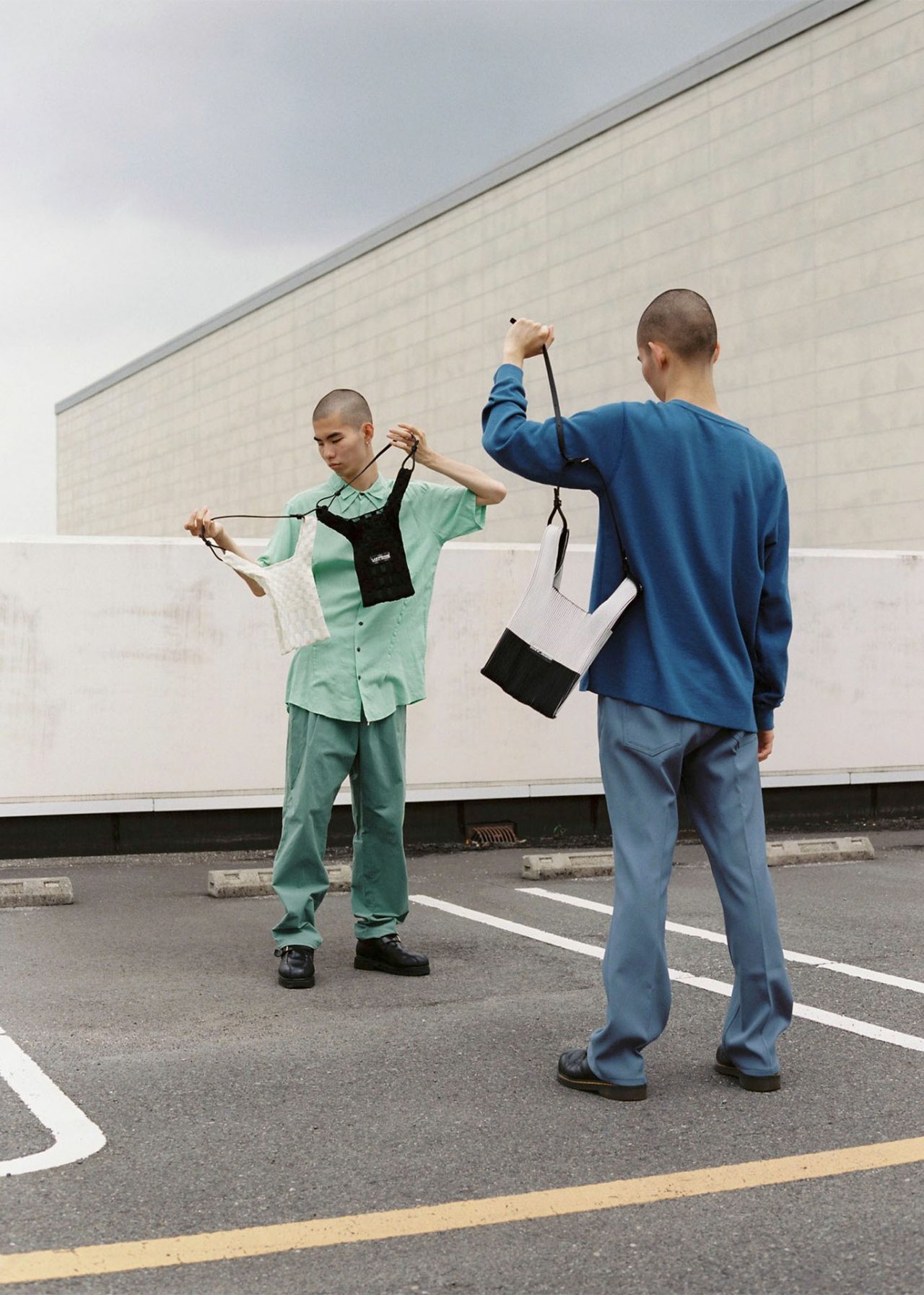 新作では “ICHIMATSU”シリーズにシアー素材を使ったテキスタイルが加わった。また着物の帯をイメージした「OBI BAG (オビ バッグ)」 には、LASTRAME の独特な配色が特徴の BI-COLOR (バイカラー) シリーズが登場。定番の 「MARKET BAG (マーケットバック)」 のストラップは、長さが調節可能になりユニセックスで使用できるデザインに進化した。