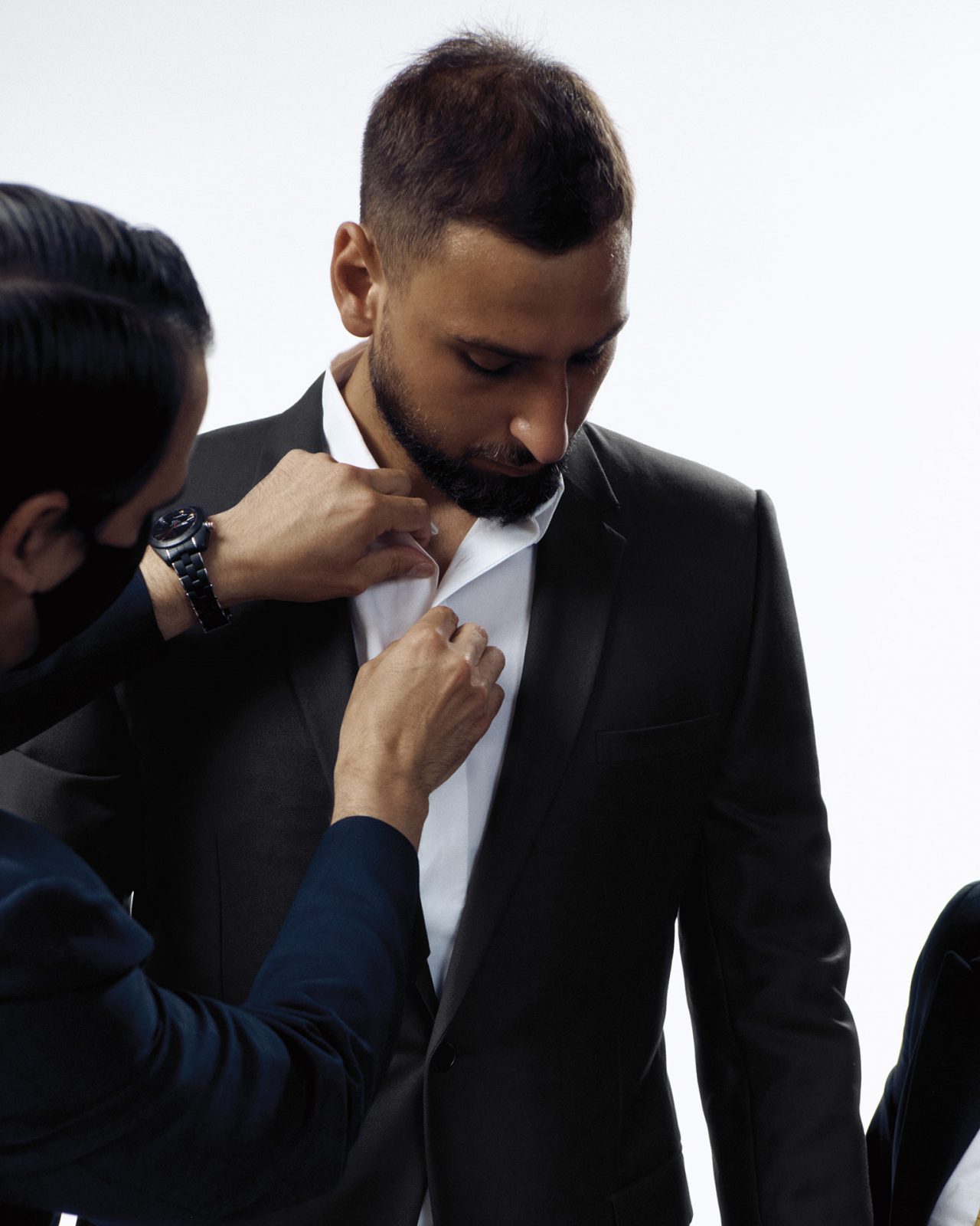 2022-2023年シーズンに着用される本オフィシャルワードローブには、Dior の卓越した技術を体現する繊細なディテールが凝縮されている。カジュアルなアイテムには、Paris Saint-Germain のロゴパッチと Dior の「CDアイコン」が刺繍されたハリントンジャケットとニットセーター、ポロシャツがお目見え。足元を「ディオール オブリーク」がアクセントの、ブラックレザーの「ディオール エクスプローラー」ダービーシューズが仕上げている。また、タイムレスな魅力を放つドレスアップのためのウェアには、カシミアコートやスーツと共に、アクセサリーのカシミアスカーフやシルクタイ、ブラックとネイビーブルーのリバーシブルベルトなどが登場した。