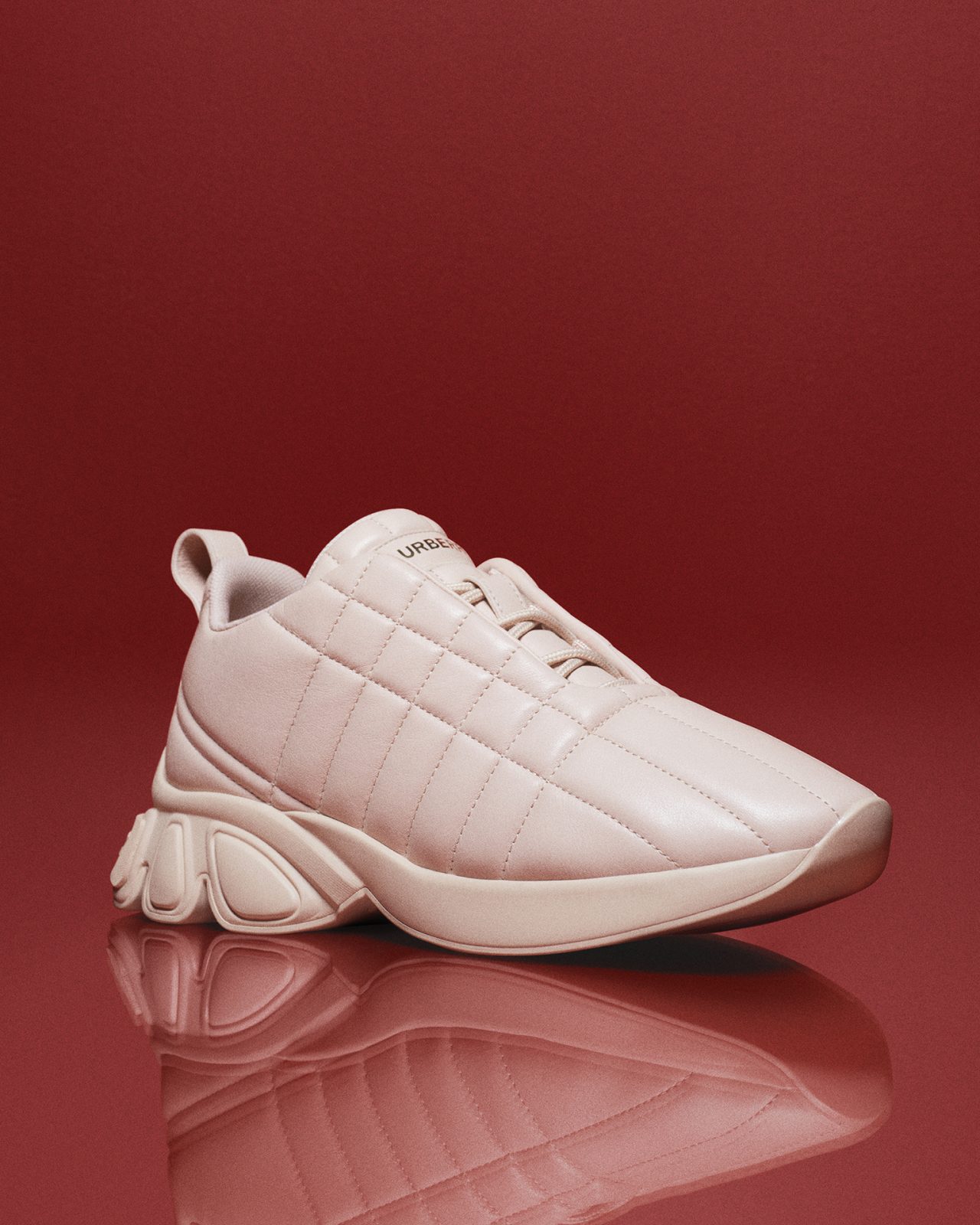 控えめでシンプルなプロポーションの「フランシス」バッグには、グレイニーレザーが使用され、レザーをはめ込んだトーマス・バーバリーのモノグラムがあしらわれた。また、ストリームラインのスポーティーなクラシックスニーカーには、キルティングレザーのアッパーに超軽量のソールが搭載され、さらにアップグレード。