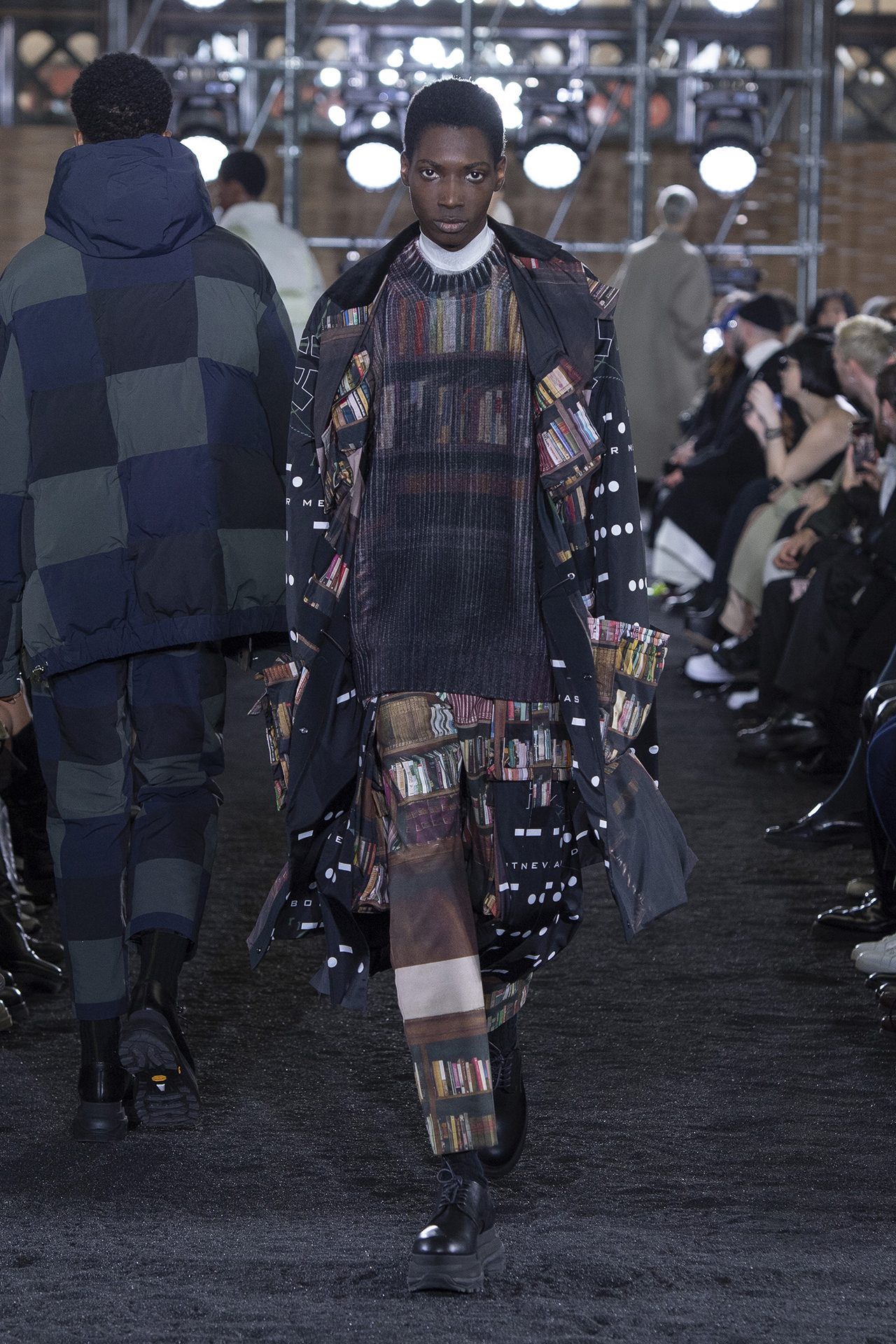 また、本コレクションのインスピレーション源となった、映画『インターステラー』に登場する本棚をドレスやジャケットにプリントし、過去から学ぶことの重要性と、過去から得た情報に基づく未来を象徴。映画の中でのセリフ「かつて人々は星空を見上げて思った。『あの向こうに何が』と」と共鳴している。
