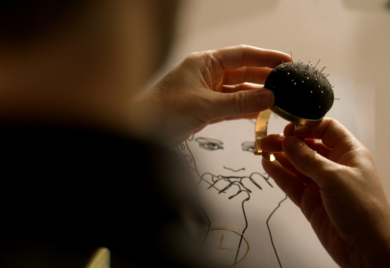 「お針子さんの手首を飾る機能的なジュエリーともいえるこのウォッチのイメージが気に入っています。私は、実用的なニーズに応えた構造美を持つツールに惹かれます。スタイルにおいてピンクッションというものは、存在感とインパクトがあり手元に威厳をもたらしますが、その大きさによって快適さを損なうことなく、手首にフィットします。 クッション面に刺された針のランダムな雰囲気も好きな点です。ドーム型のファブリックに刺さったピンの頭は、あえて整理されていなくても、お針子の仕事が進むにつれて変化するという装飾効果を生み出します。私は、このツールが持つスピリットを腕時計に取り入れました。その構造は大胆なまでにシンプルである一方、オーバーサイズの文字盤は、メゾンの創造力を発揮する最高の舞台です。私はこのウォッチをメティエダールの技術的挑戦を表現するキャンバスにしたいと考え、5つのデザインを提案しました。レースで表現されたカメリアの花、アイコニックなバッグ、宝石がちりばめられたブラックツイード、ダイヤモンドの刺繍、そして、制作過程のジャケットのパターンです。」