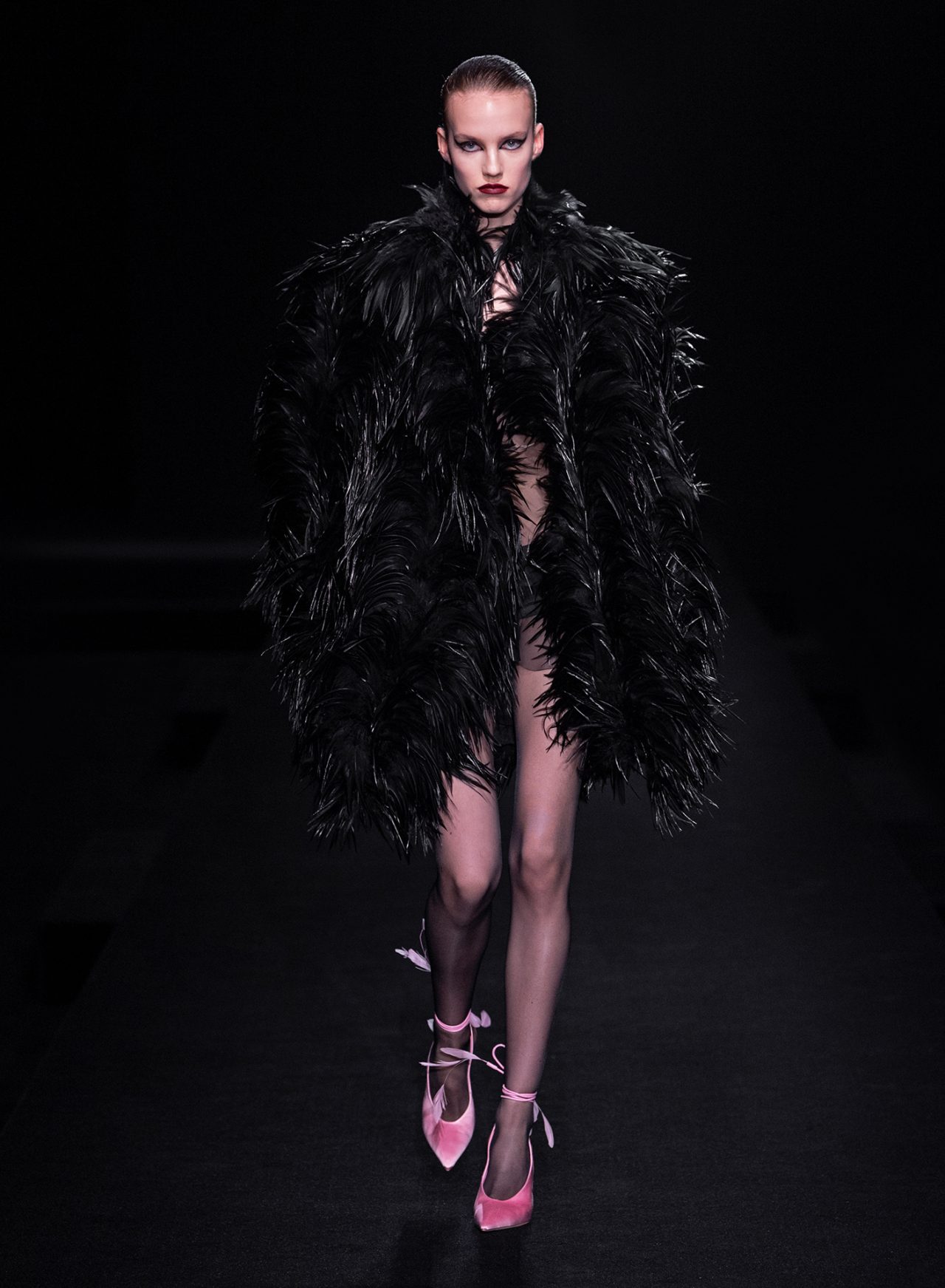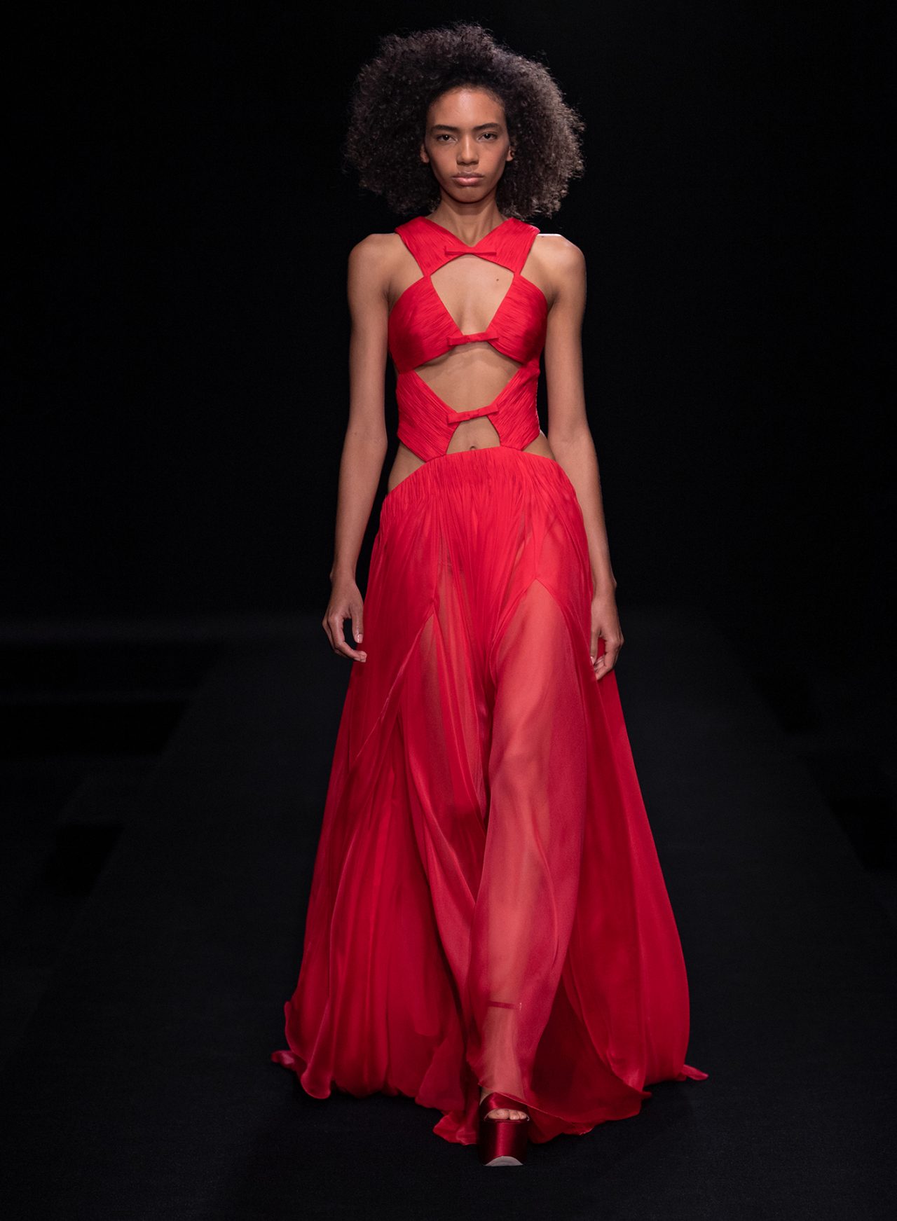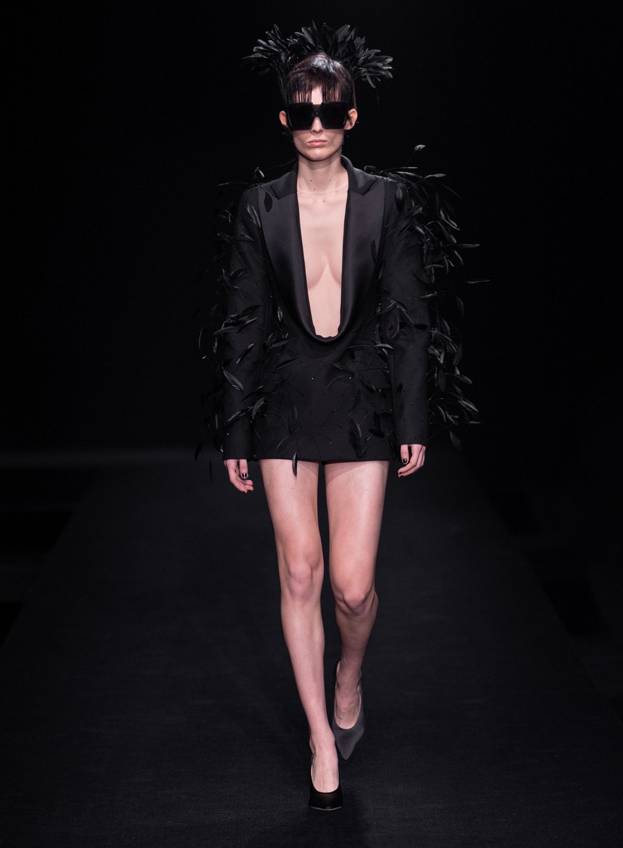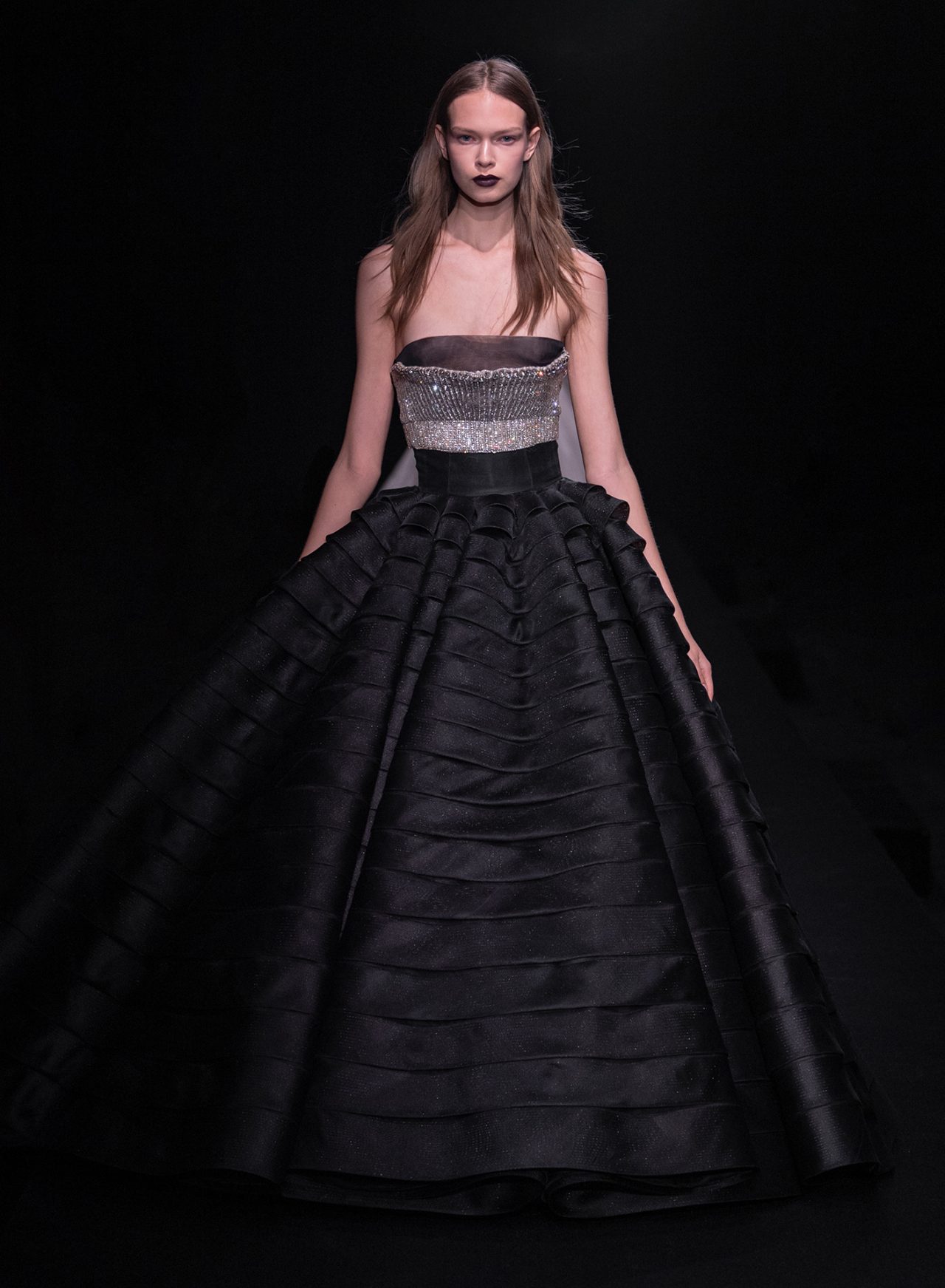 Hercules and Love Affair (ヘラクレス・アンド・ラブ・アフェア) の Andy Butler (アンディ・バトラー) によるサウンドトラックに乗せ、ナイトクラブの暗闇の中から現れたのは、ボディ上でコントラストを描くファブリックや繊細な手仕事が反映されたルックの数々。再解釈されたポルカドットとストライプのカッティング、華やかなエンブロイダリー、ハンドドレープ、ブラックサテンのリボン、柔らかなフェザーガウン、美しく大胆なチュールドレスなど、エレガンスの中に、美の多様性、個性としての美、内なる真実を追及した VALENTINO ならではのディテールが光るコレクションとなった。