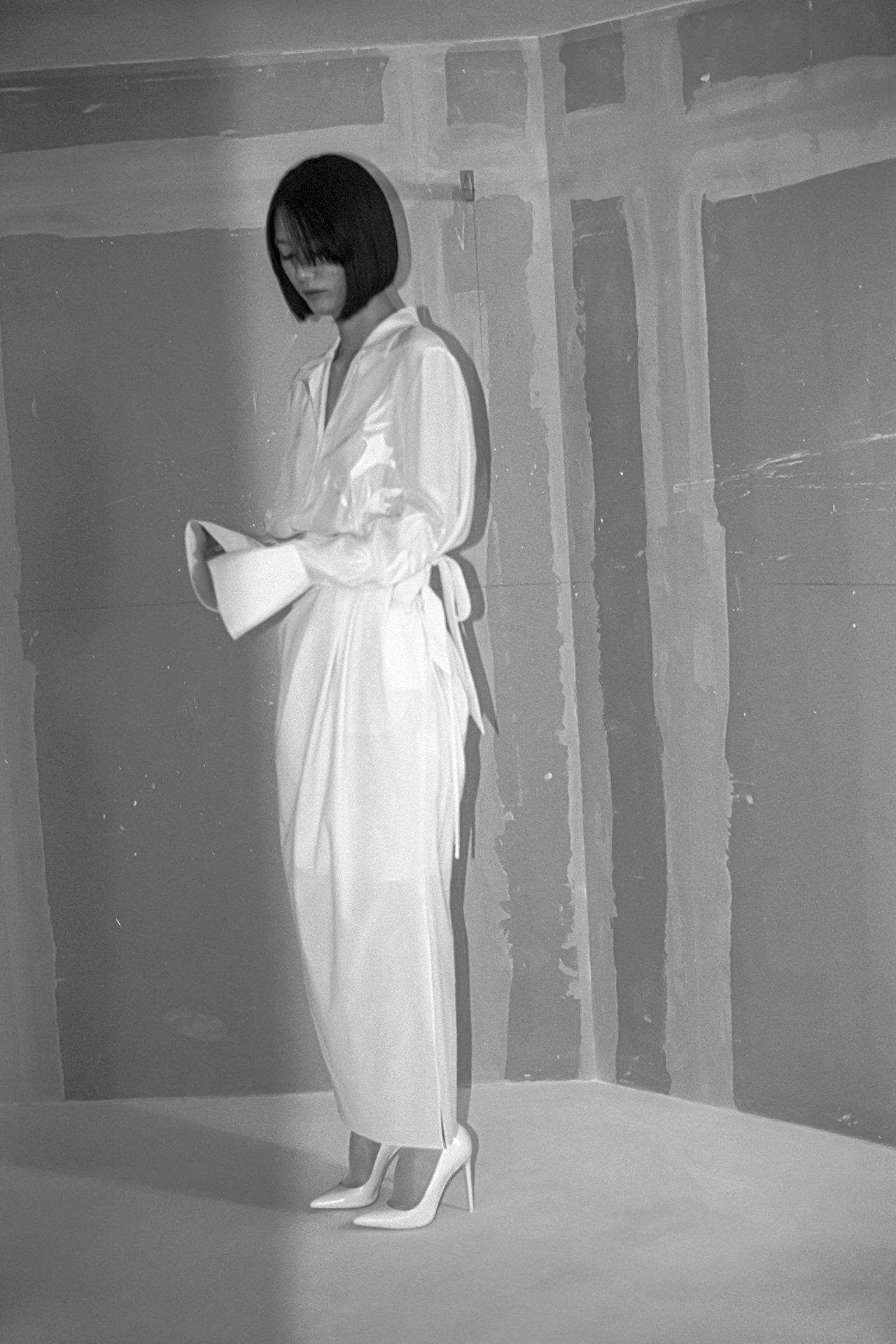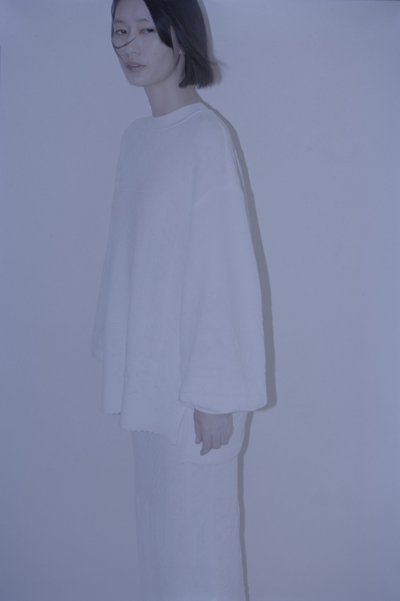 アルルを象徴するロマネスク建築や古代ローマ遺跡に共通する、砂質石灰岩による白い建造物、そのすぐ脇に剥き出しになった石灰岩地層があらわにする太古の記憶、そして多くの芸術家を虜にした豊かな自然。デザイナーの黒河内真衣子がかつて訪れた、美しい都市の景色を彼女の記憶の中からデザインへと反映させている。まばゆい輝きに溢れた初夏のアルルでの日々は、生成りから灰白色、乳白色から純白へと移りゆく石灰岩にインスパイアされながら、これから始まる無数の新たな旅路を示唆する、ブランクのキャンバスのような可能性に満ちたワードローブへと生まれ変わった。