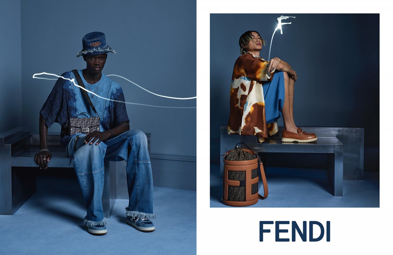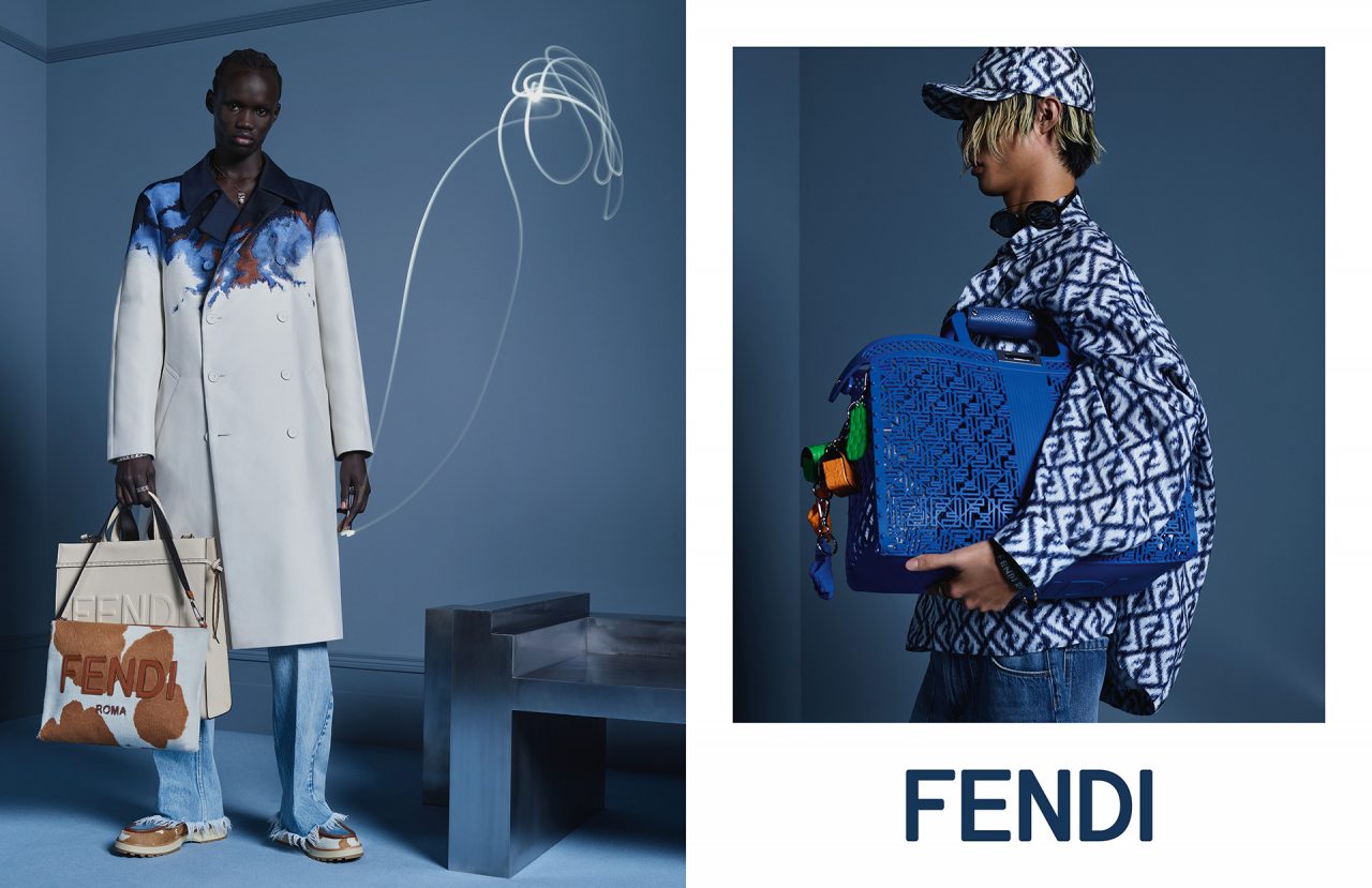 新しい「FENDI Roma (フェンディ ローマ)」バケットバッグとダッフルスタイルは、ラップアラウンドロゴを特徴とし、 2つのハンドルを備えたオーバーサイズのウォッシュバッグシェイプ、再生 PVC (ピーブイシー) を用いた夏らしい鮮やかな「Peekaboo ISeeU Forty8 (ピーカブー アイシーユー フォーティー8)」、ボトルホルダーを備えたインディゴカラーのデニムスタイル「Peekaboo (ピーカブー)」が加わる。