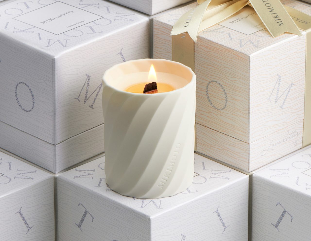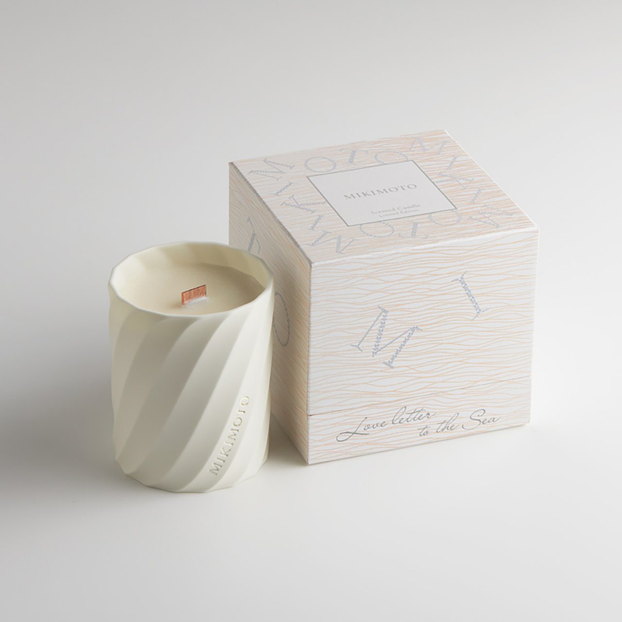 同時に500個限定発売のキャンドルも MIKIMOTO 直営店、オンラインショップにて発売。地球環境保護活動を支援するため、売り上げの全額を国連環境計画日本協会へ寄付する。容器デザインは真珠を育む海と貝の模様をモチーフとし、キャンドルの磁器の原料の一部には、ミキモト製薬(株)と鳴海製陶(株)によって共同開発した真珠採取後の貝殻の粉末を利用。香りは「ミキモト オードパルファム」のトップノート (ベルガモット&バイオレットリーフ) で、大豆が原料の植物由来のソイワックスは、有害物質を含まず人と環境に優しく安全性に優れるほか、低温でゆっくり燃焼するため長時間楽しむことができる。