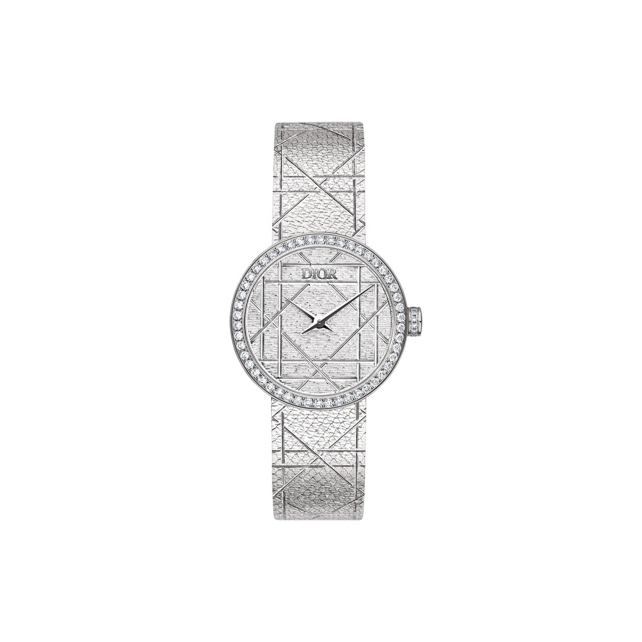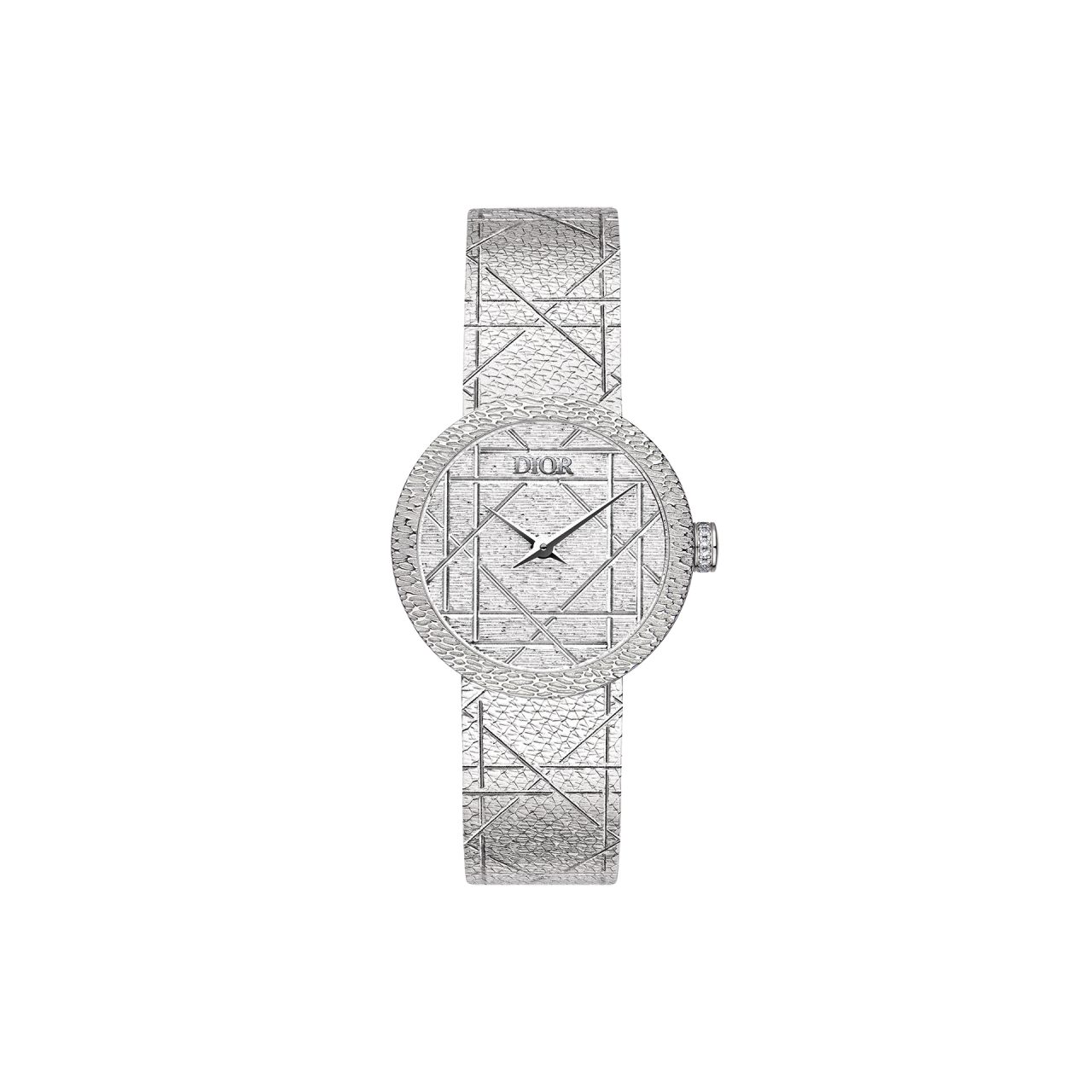 ディオール ファイン ジュエリーのクリエイティブ ディレクター、 Victoire de Castellane (ヴィクトワール・ドゥ・カステラーヌ) の創造性豊かなアイディアが反映された美しいタイムピースは、ゴールド、または シルバー仕上げのスティール製から選べる。サイズ径19mm と25mm で取りそろえ、ミニマルなデザインは手首にエレガンスを添える。