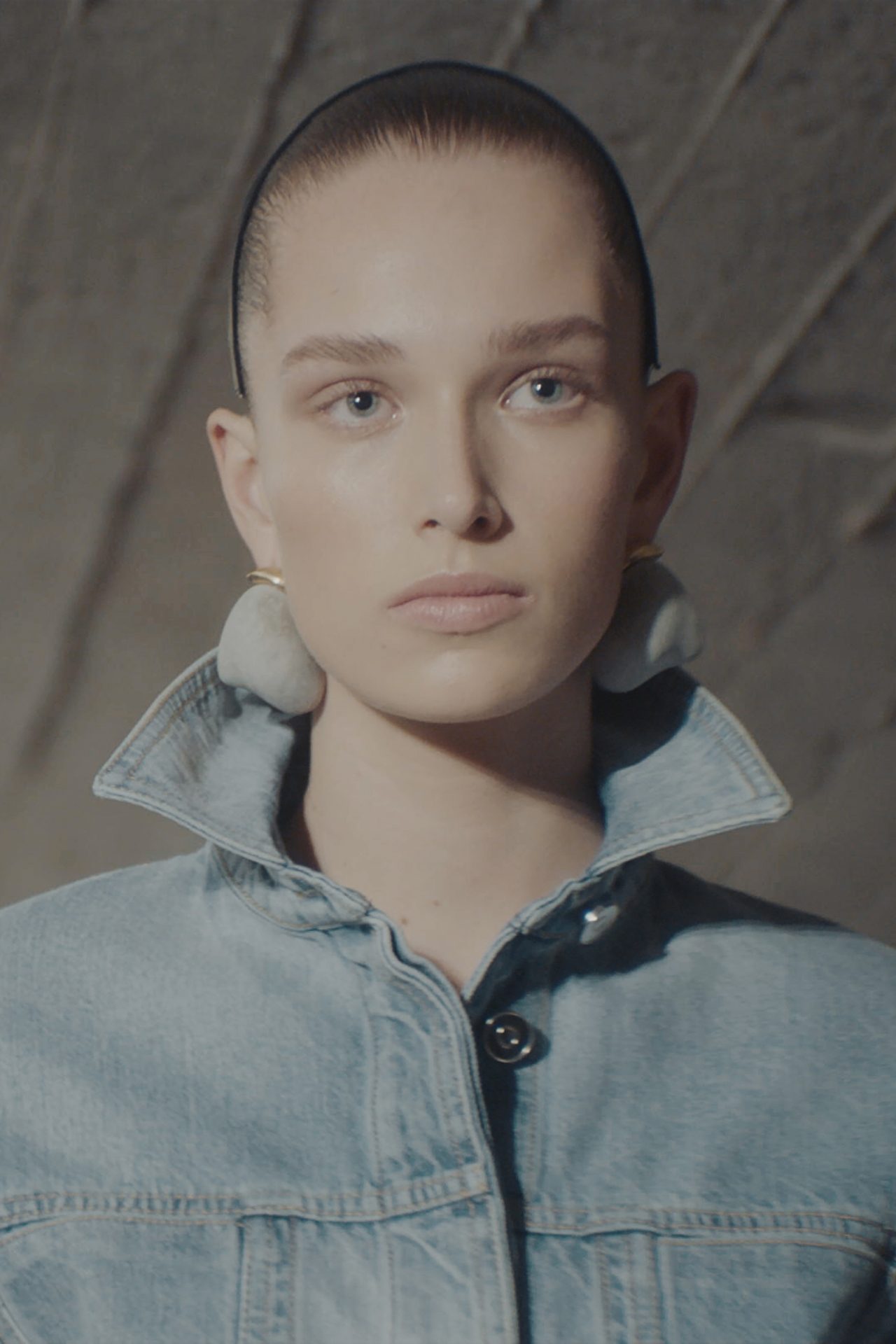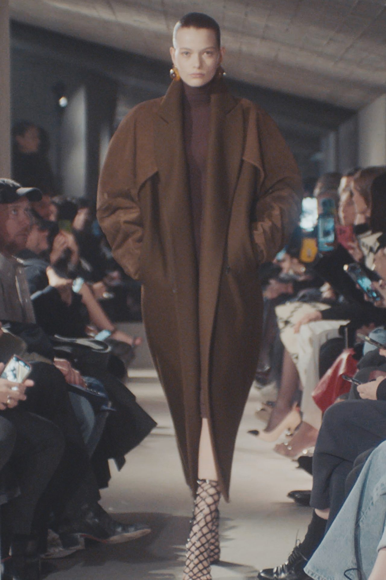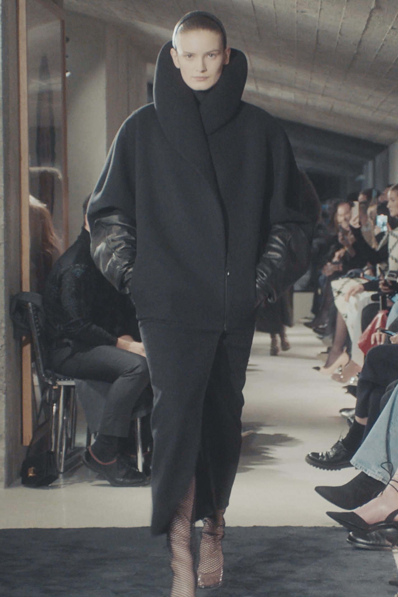 トーンオントーンのルックは、コクーンシルエットのパンツを採用し、緩急をつけた。ウールコート、ファーコートなどのオーバーサイズのアウターは、襟を立てて Y ラインを強調し、トップにボリュームを持たせている。また、Pieter Mulier の定番となりつつあるデニムのセットアップも登場。昨シーズンよりもカジュアルなライトインディゴデニムを採用し、夏らしいアイテムに仕上げている。