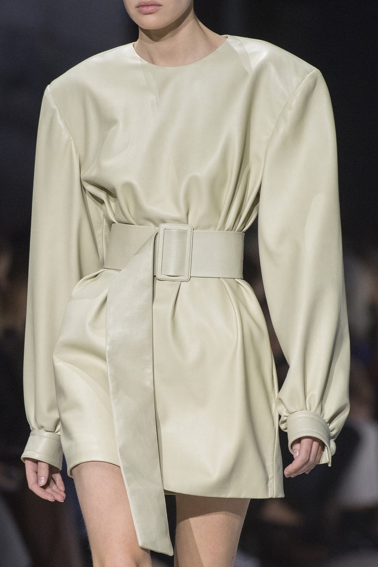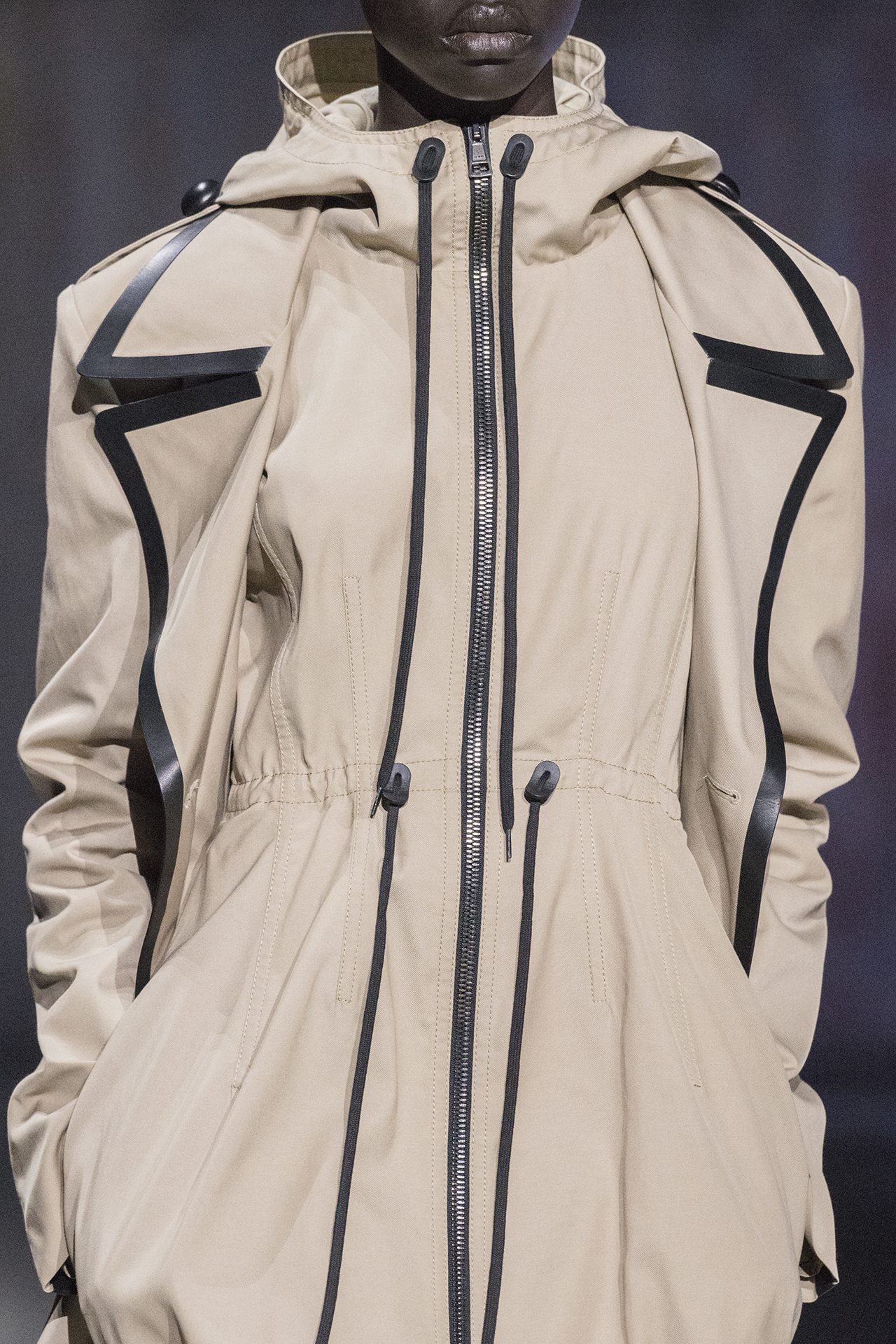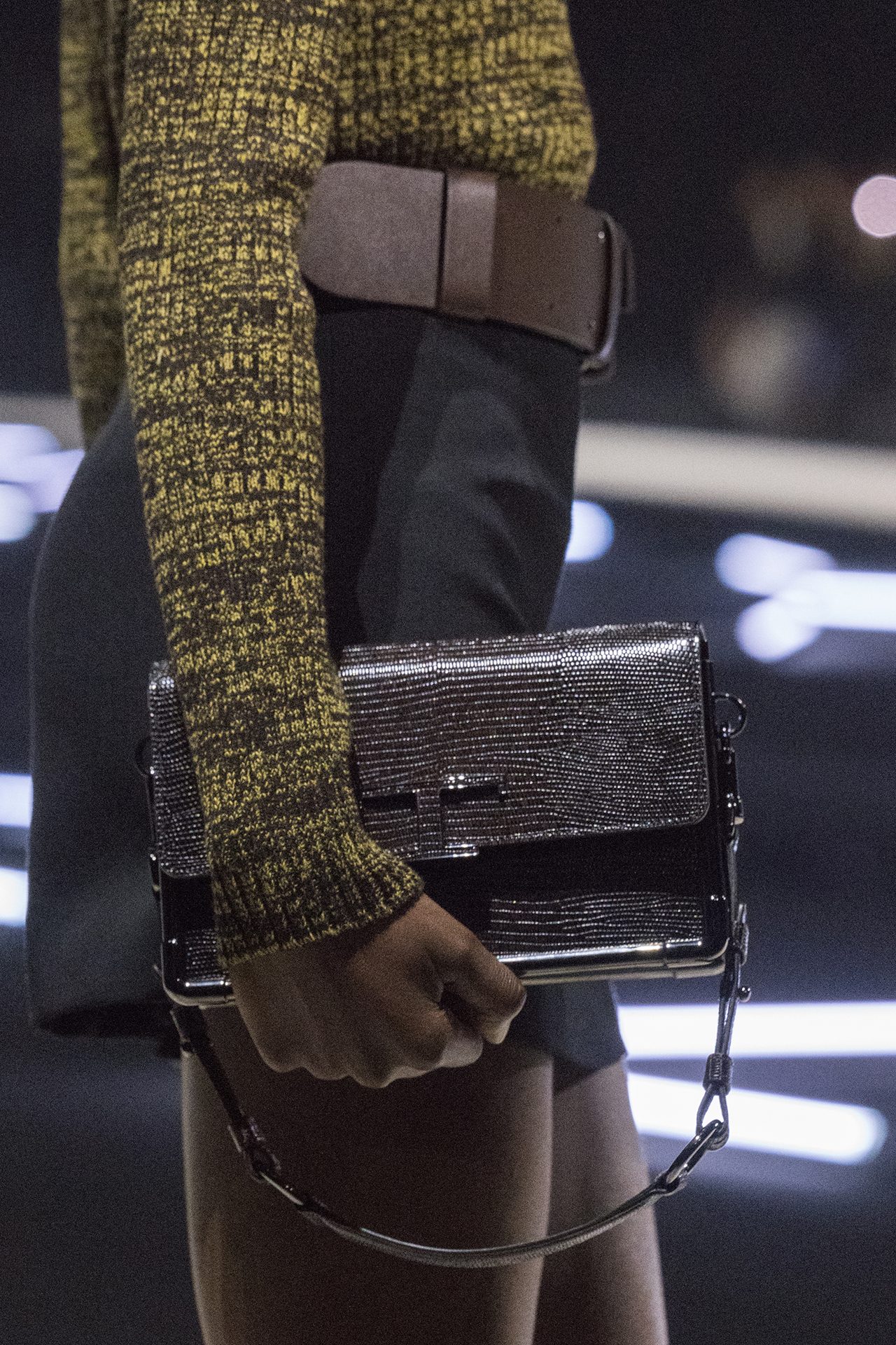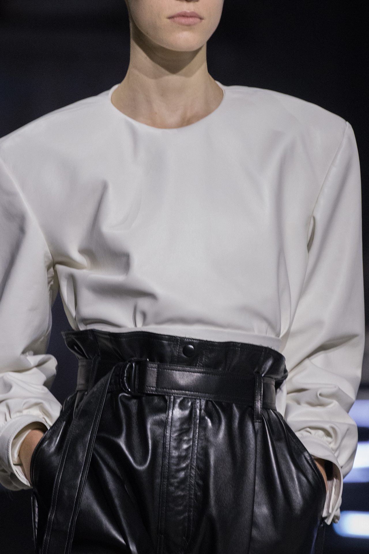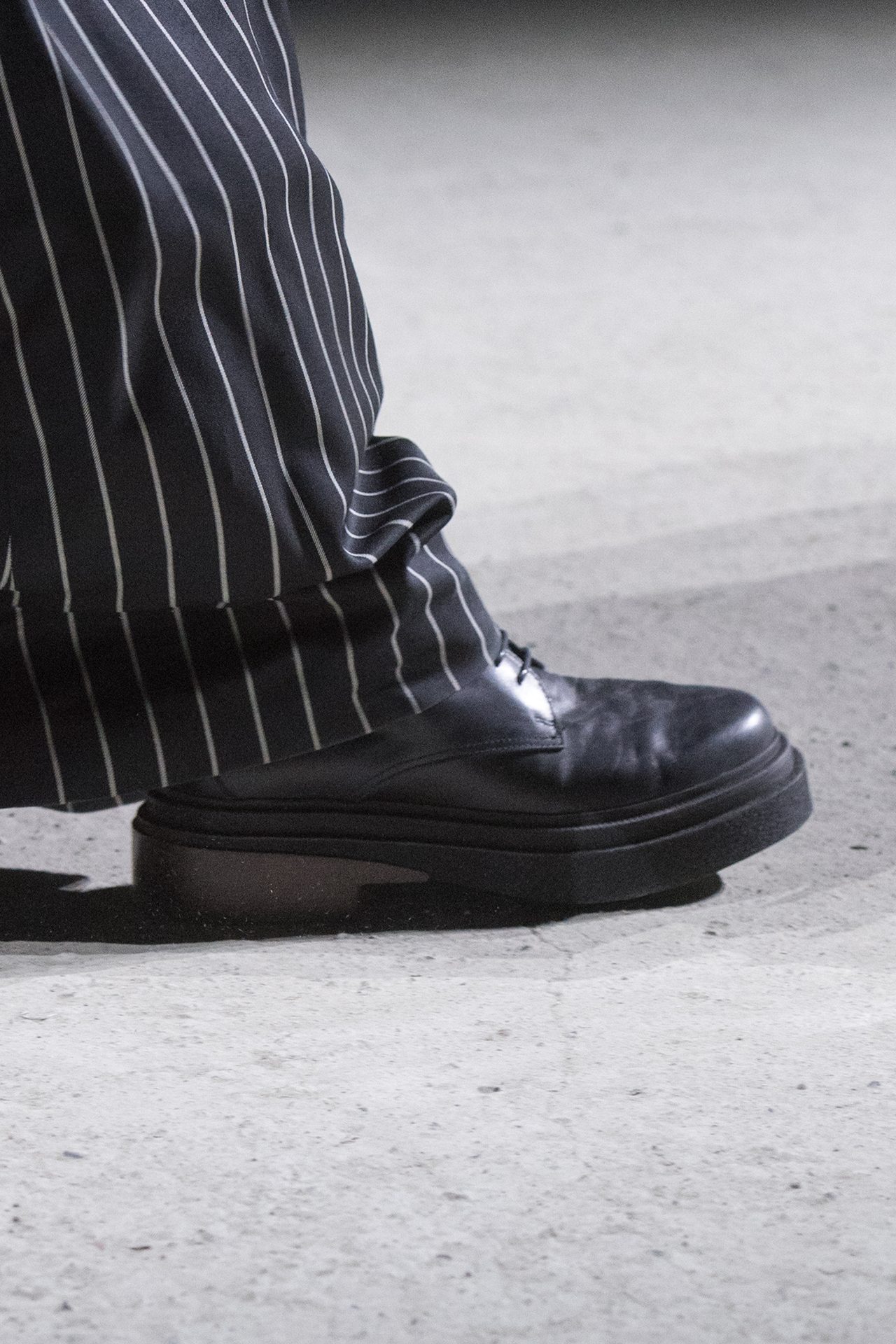 天然素材のファブリックのみが使用され、キャメル、ブラウン、クリームといった暖色系から、ブラックとホワイトのモノトーンまでのカラーパレットで統一された本コレクション。TOD’S のアイコニックなペブルモチーフを想わせる、革のくるみボタンが付いたピーコート、シアリングのディテールが加えられたショート丈のボンバージャケットや、エレガントなパデッドジャケットなど、希少な素材が用いられたアウターが登場。フェミニンなニットウェアとは反対に、マスキュリンなスーツは、構築的なシャツと合わせてお披露目された。