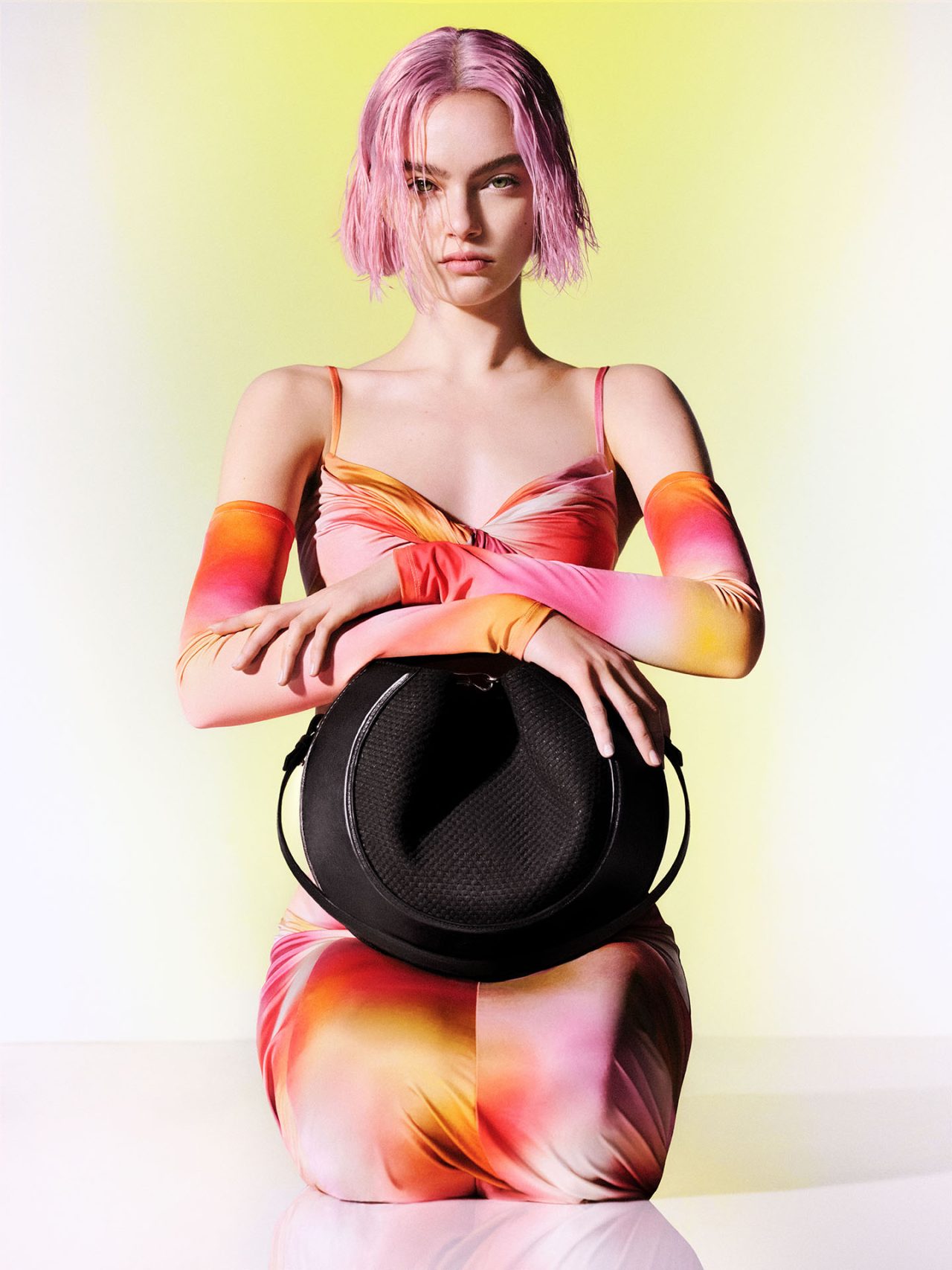 レザーアクセサリーにも目が離せない。前回のコレクションでデビューを飾ったアイコニックな 「Mantis (かまきり)」バッグのミニサイズやバケツ型バッグ、貝殻にインスパイアされた、コットン×レザーのバッグも登場。また、モカシンとスニーカーを融合させたオリジナルのハイブリッドシューズは、鮮やかなピンク一色で作り上げ、インパクトのある一足に仕上げている。