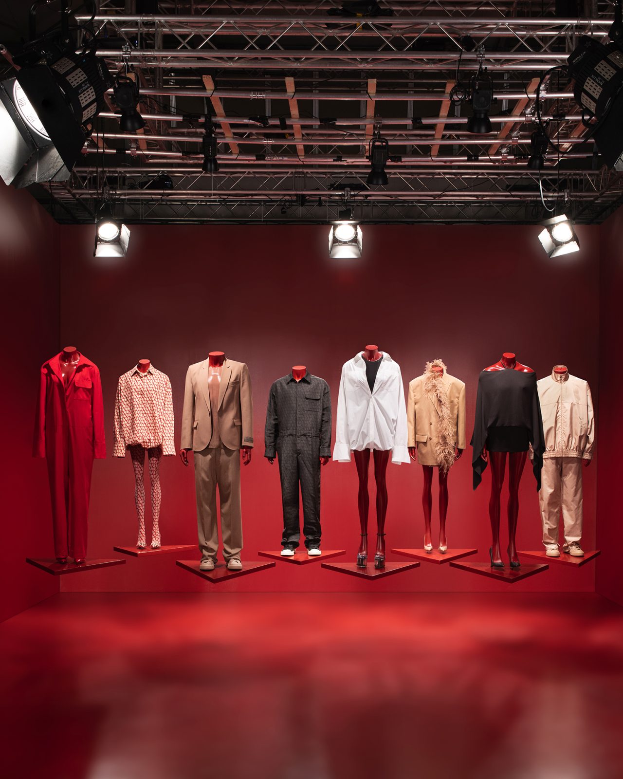 さらに、9つ目のディスプレイは、世界中の誰もが楽しめるようにオンライン上で公開された。Alexandra Grandquist (アレキサンドラ・グランクヴィスト) と Mackenzie Rae Grandquist (マッケンジー・レイ・グランクヴィスト) は情熱的なレッドを背景に、三角形のプラットフォームにマネキンを吊るし、VALENTINO のエッセンスを表現した。