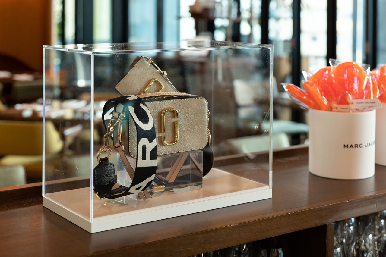 ファッションとカルチャーの発信地 THE AOYAMA GRAND HOTEL (青山グランドホテル) の4階に位置するカフェの店内には、MARC JACOBS のバッグやロゴが至る所に配され、ブランドの世界観を感じることのできるスペシャルな仕様となっている。