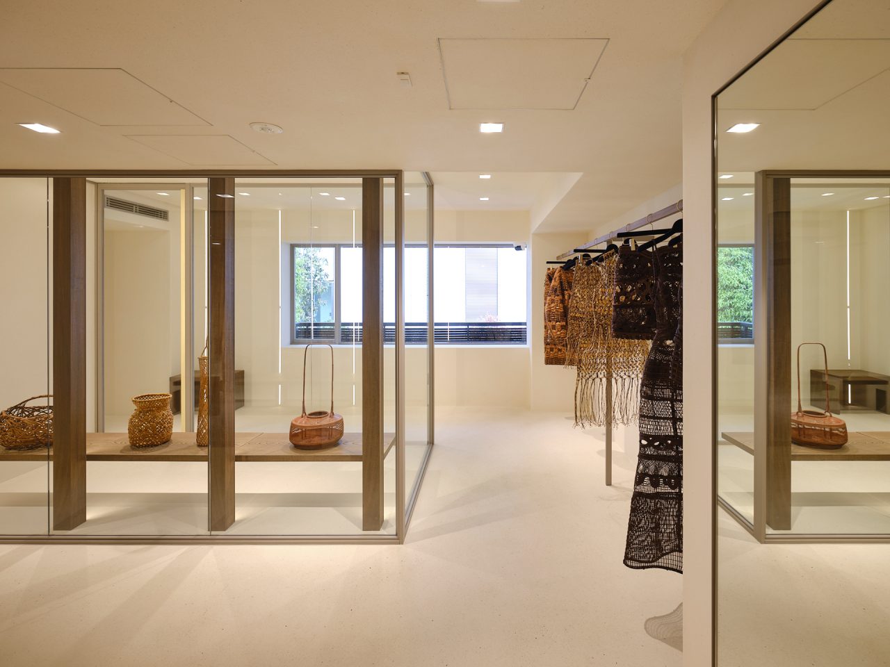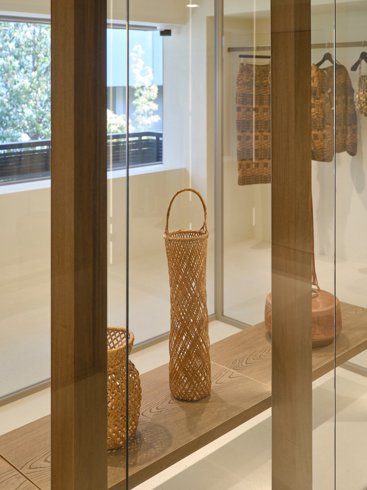 また同店では、花籠が持つ緻密な編みと大胆な透かしをダイナミックに再解釈したコレクションアイテムもラインナップ。裂き織りモチーフのジャケットやスカート、竹ビーズを編みこんだドレスやバッグなどランウェイを彩ったキーピースが並ぶ。今年1月にオープンしたばかりのブランド初の旗艦店で、最新コレクションの”グルーブ”を楽しんでみてはいかがだろうか。