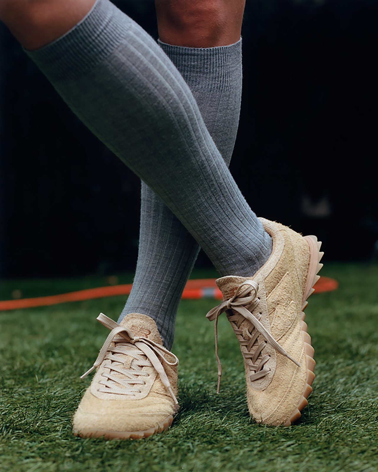 今回登場するカラーは、グリーンとベージュの2色。両ブランド協業の代名詞とも言えるワントーンの色合いが、高品質なヘアリースエード素材のアッパーを彩り、モダンで軽やかな印象に。さらに、オプションとして、グリーンには1種類、ベージュには3種類のシューレースが付属する。