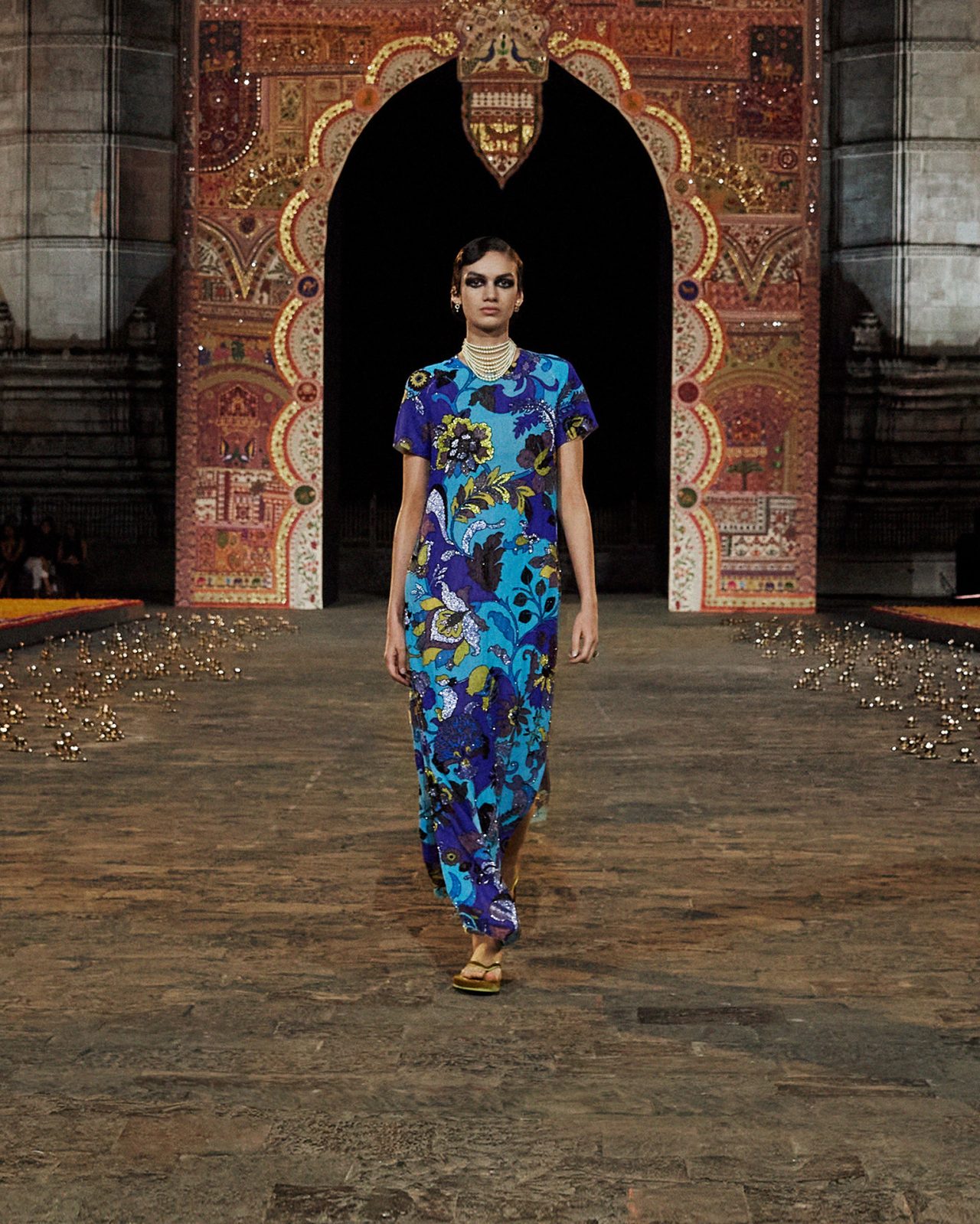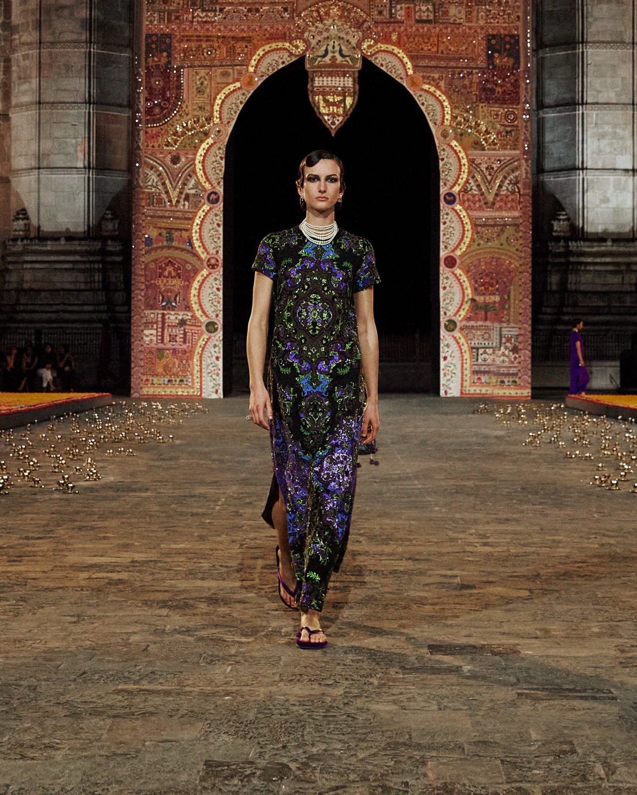 クリエイティブ ディレクター Maria Grazia Chiuri (マリア・グラツィア・キウリ) が今回のコレクションで選んだ舞台はインド。インド各地に広がるクラフトの多様性を反映した針仕事を讃え、ロングスカートにはビーズやスパンコールをあしらった。また現代風に刺繍をアレンジし、アトリエの革新的な精神を体現したほか、サリー風に長い布を巻きドレープを寄せたルック、クルタ風のセットアップなどインドの伝統的なスタイルを散りばめている。