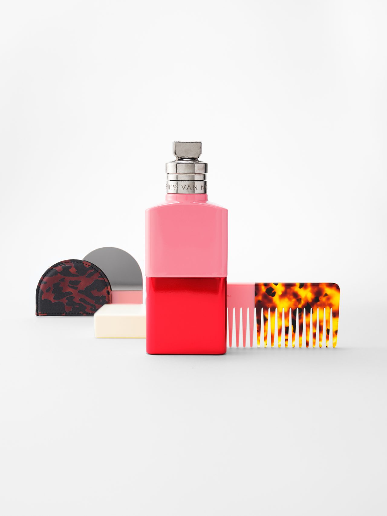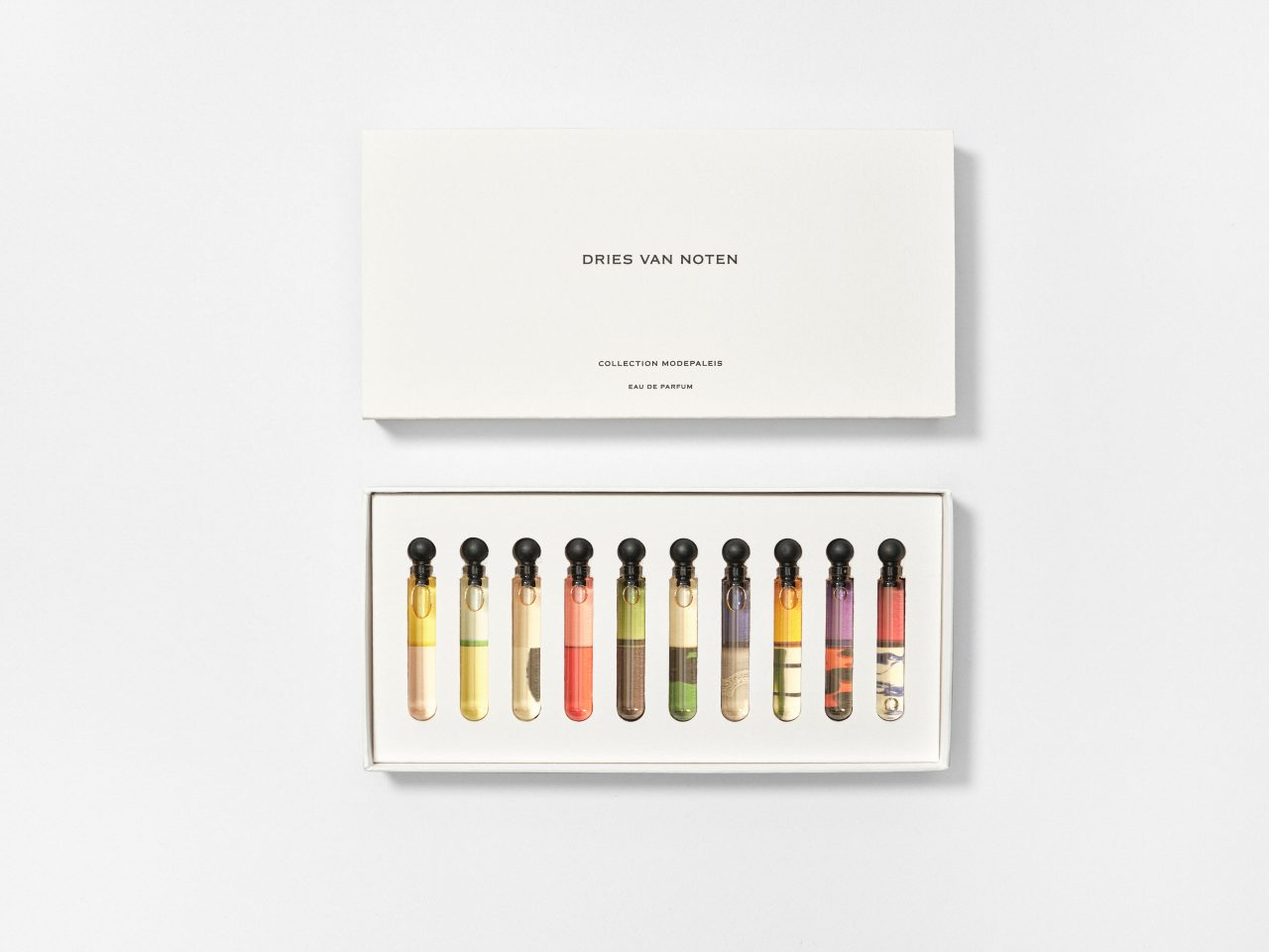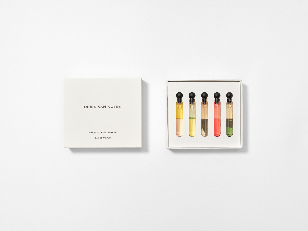 このコレクションは、Dries Ven Noten のファッションにおけるクチュールとストリートウェア、パターンやテクスチャーなどの対比やコントラストを、ビューティーにも落とし込んだデザインとなっている。フレグランスボトルやリップスティックケースにも、鮮やかな色や異なる素材を組み合わせ、プレイフルで印象的なビジュアルに仕上げられた。また、リサイクル可能な原材料の調達や、再生可能の天然繊維を使用したパッケージ、これまでのファッションコレクションで使用した生地をアップサイクルしたポーチなど、サスティナブルな製造方法やデザインにもこだわっている。