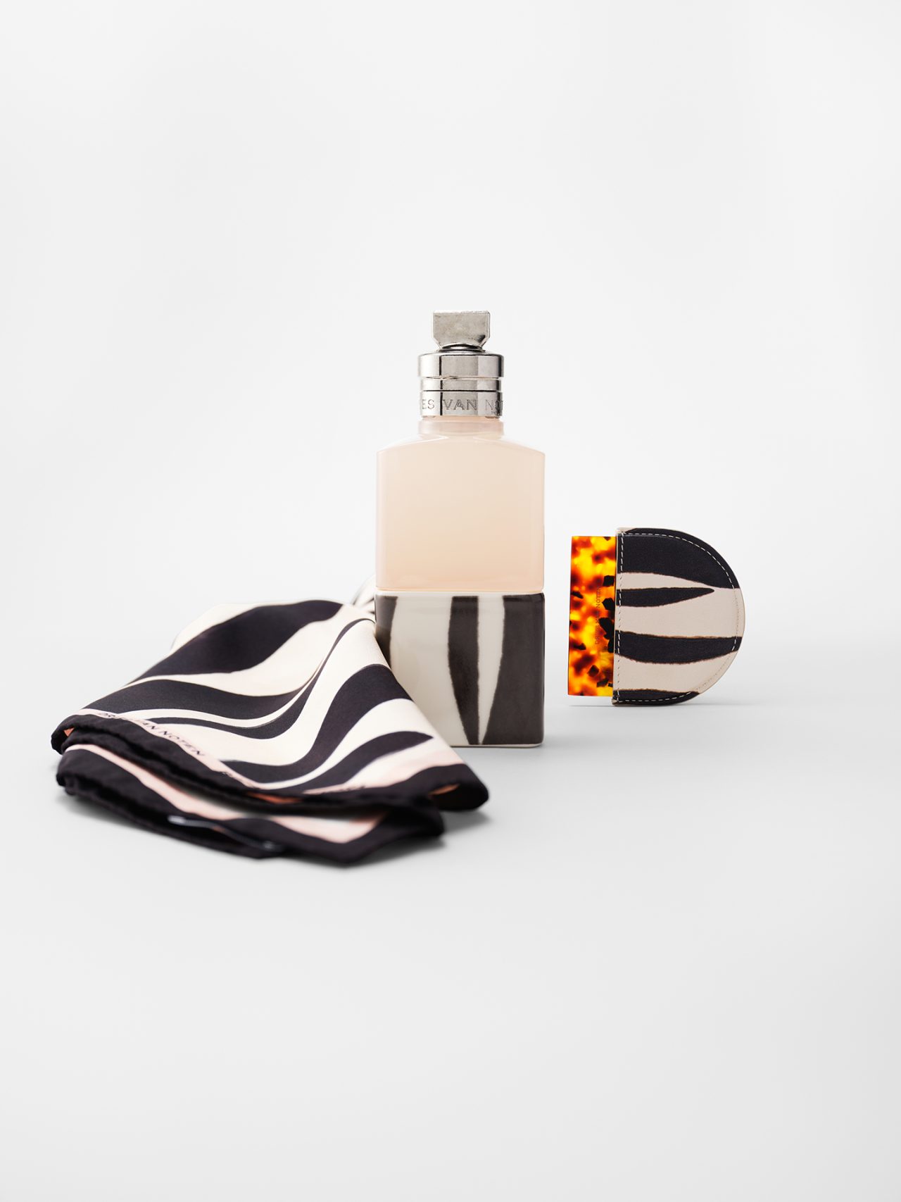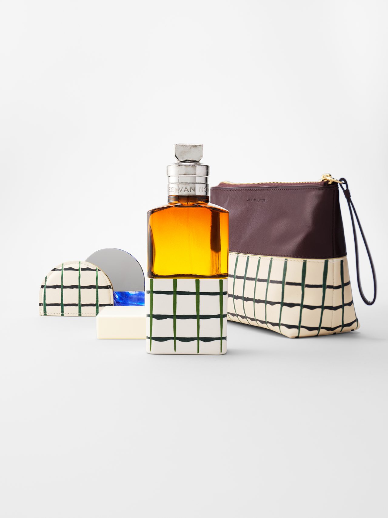 さらに、肌を保湿し、やさしくケアしてくれるハンドクリームやソープといったボディケアアイテム、ブランドのアーカイブ・ファブリックから着想を得たオーダーメイドのトラベルポーチやカーフレザーとプリントを合わせたポーチ、イタリア製レジンのミラーやコームといったアクセサリーなど、充実したラインナップが揃う。
