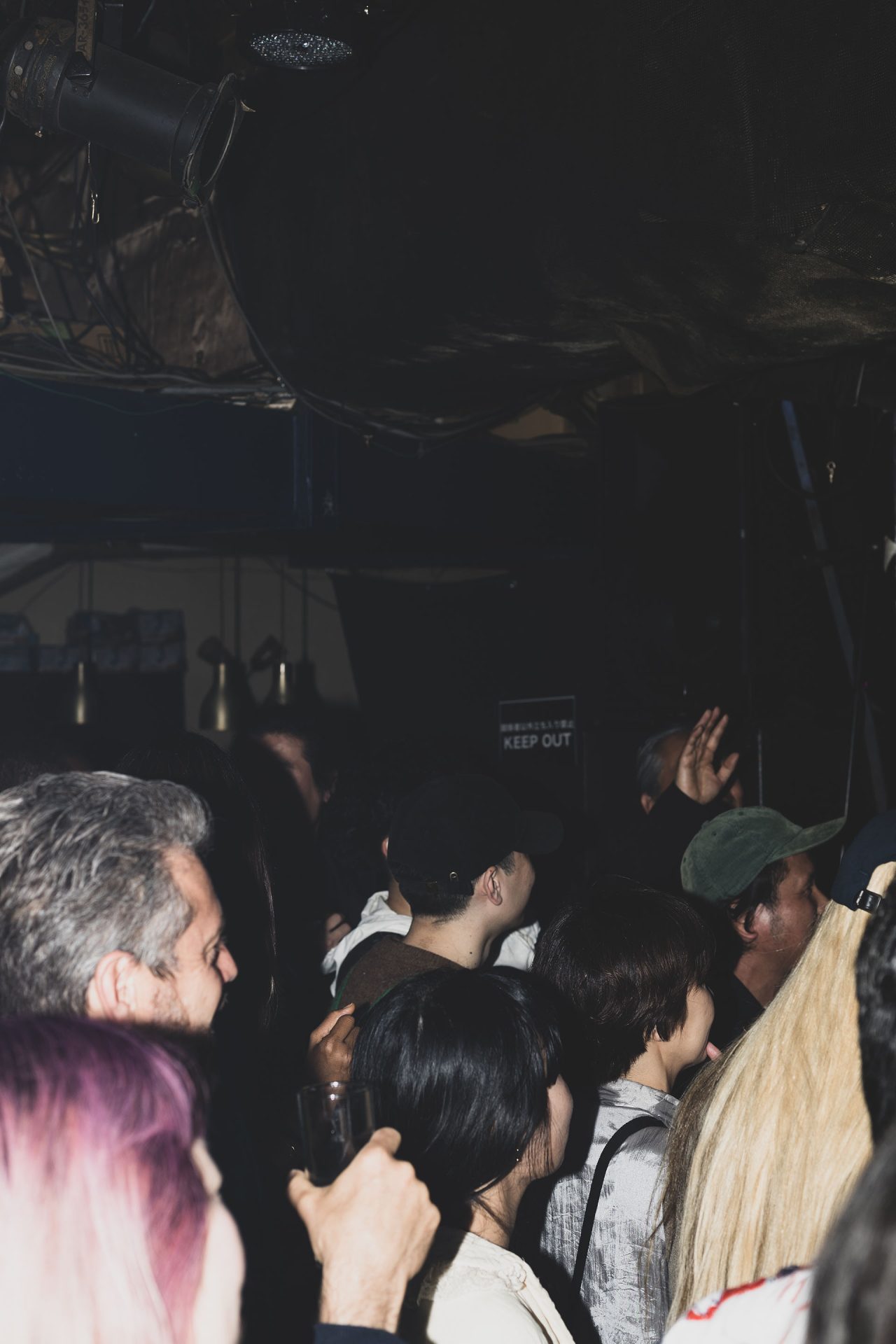 今回のイベントは完全招待制。国内外のプレスやアーティスト、ギャラリストなどのアート関係者の他、モデルや、クリエイターなどが集まった。メインスポンサーである BOTTEGA VENETA (ボッテガ・ヴェネタ) のアイテムを纏って来場するゲストも多く、音楽を楽しむことはもちろん、来場者同士のコミュニケーションの場としても大いに盛り上がった。