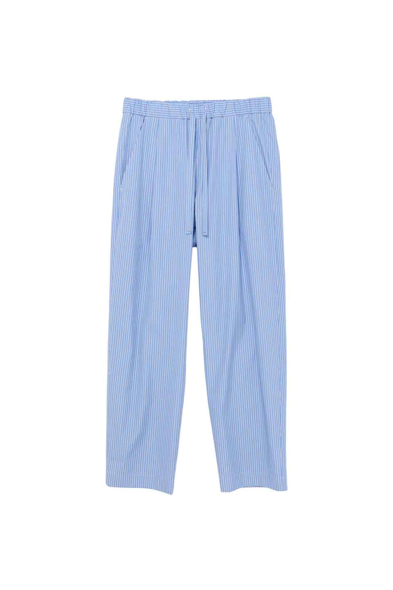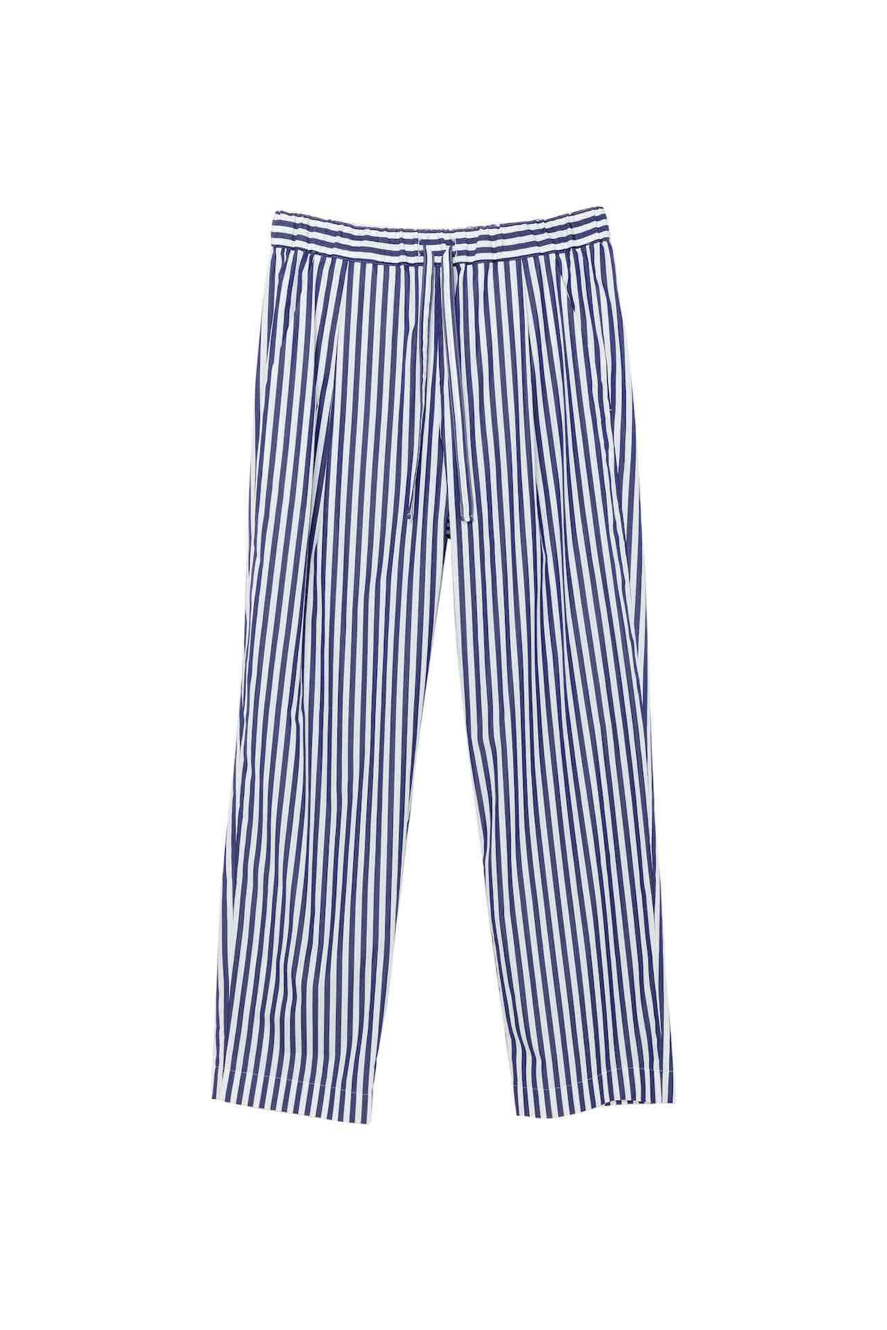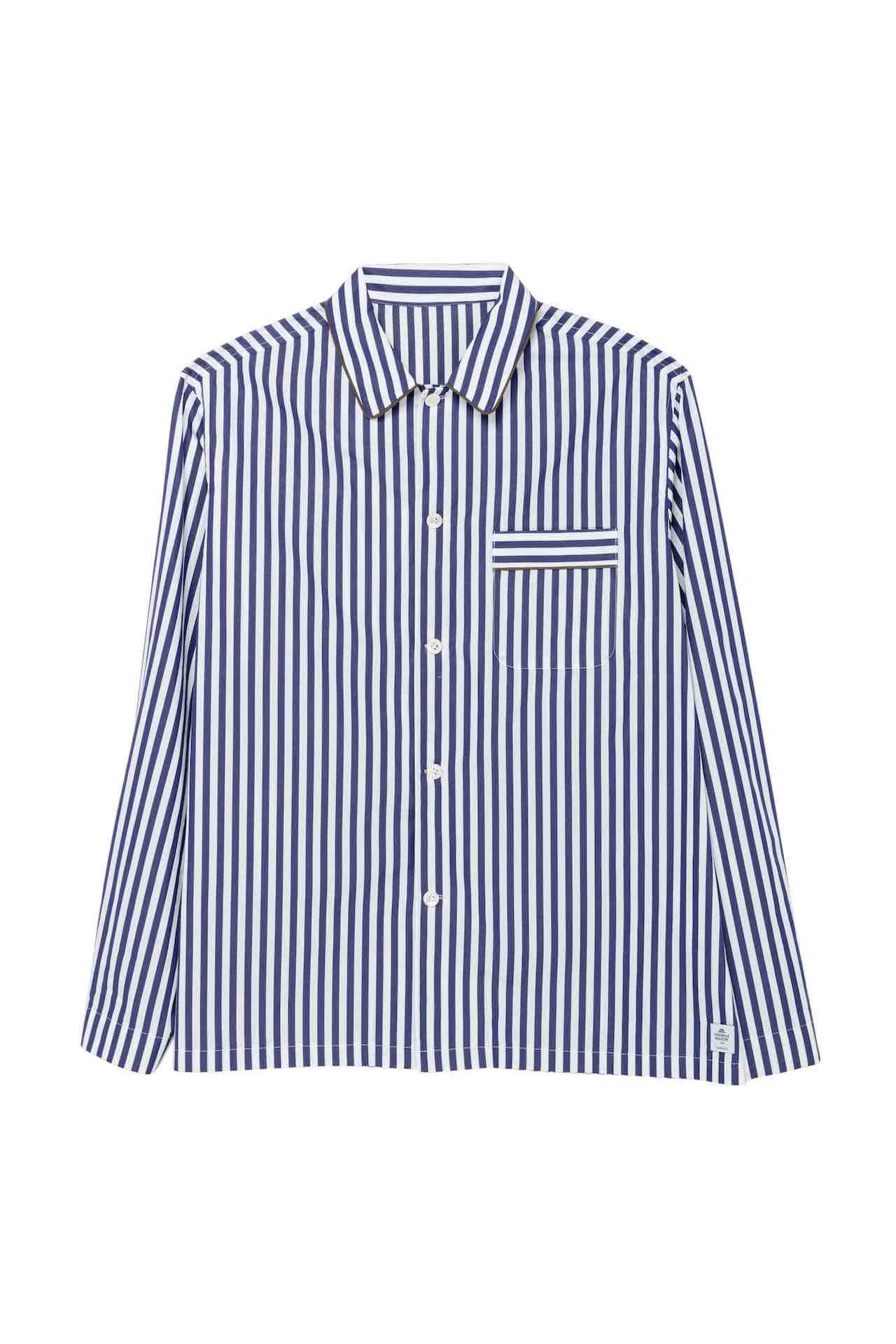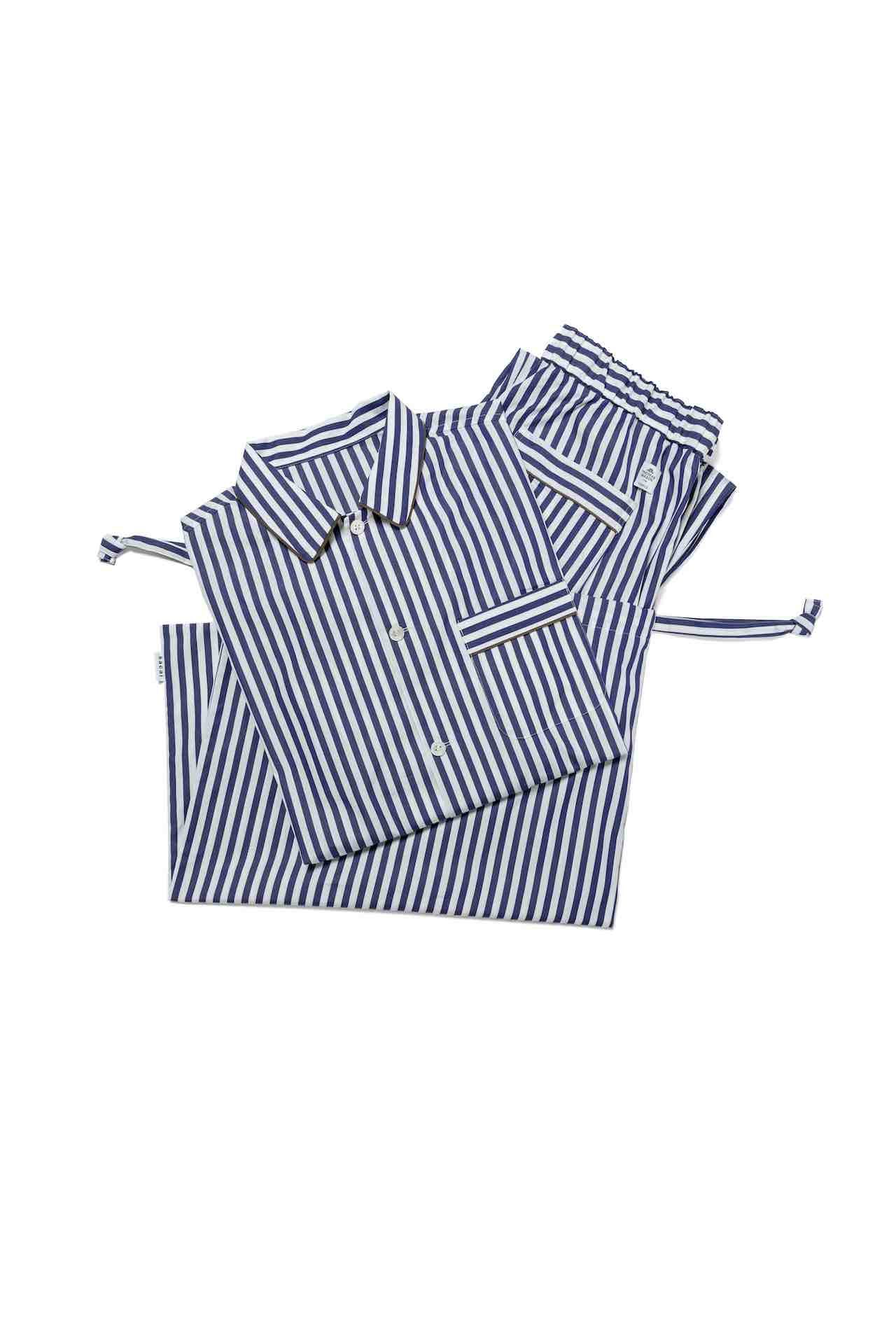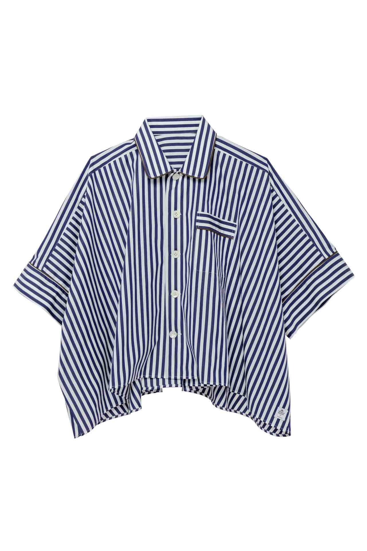 ウィメンズ、メンズのフルラインナップのコレクションが展開されるだけでなく、 「sacai Aoyama」限定アイテムも登場。2023年春夏コレクションで用いられた、英国生まれの老舗シャツ生地メーカーである Thomas Mason (トーマス・メイソン) のシャツファブリックとシグネチャーのシャツパターンをベースに、より着心地よくしたシルエットのパジャマセットとして、ウィメンズ、メンズそれぞれ2色のストライプでお目見え。さらに、フロントとバックスタイル両方に sacai ロゴがアイコニックにデザインされ、ロゴ部分のアルファベットが刺繍にアップデートされた限定Tシャツは、4色で展開される。