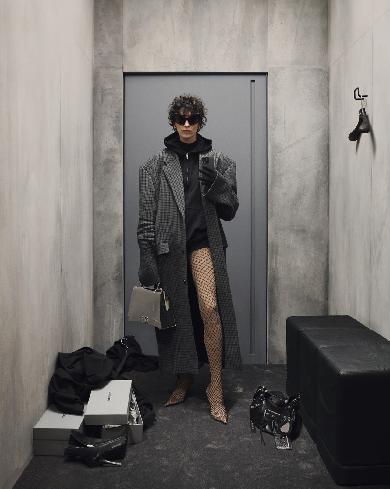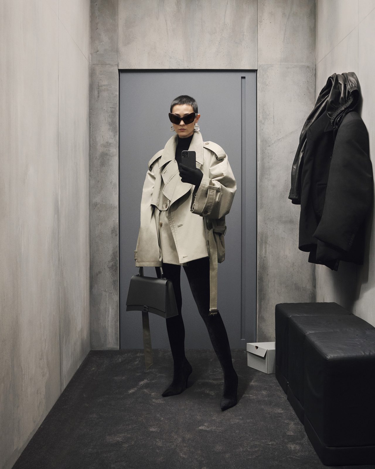 BALENCIAGA (バレンシアガ) から、FALL 23コレクションが発表。今回は、バレンシアガストアの試着室でセルフィーを撮るモデルたちが写真に収められた。アップデートされたシグネチャーアイテムや革新的なアクセサリーのほか、テーラリングとサステナビリティの分野における研究をテーマに、アイテムが構成されている。