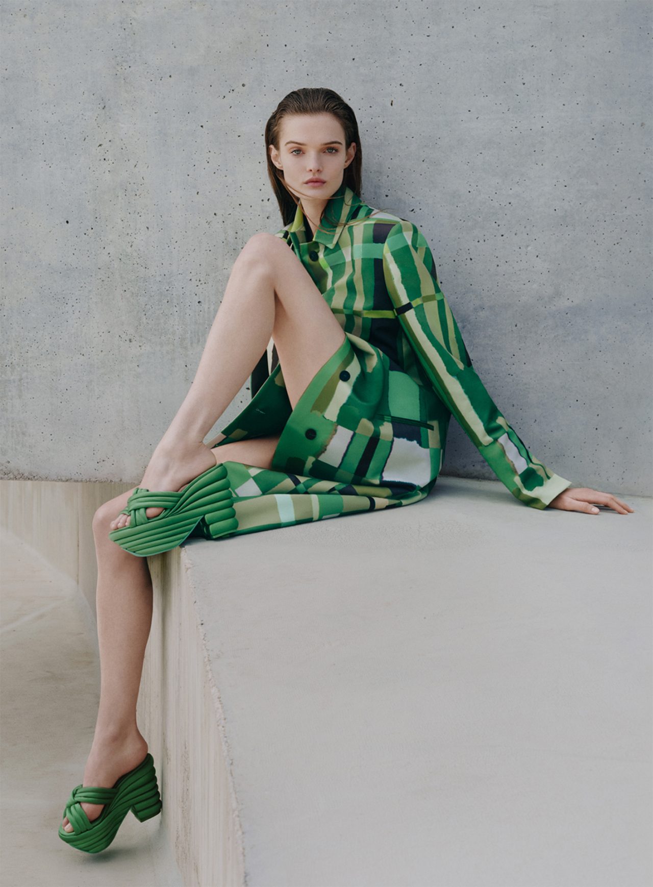 ほかにもミニマルなシルエットのビスチェドレスは、ゴールドの箔押しのイールスキンで表現され、レインボーサンダルも新たなデザインとなり生まれ変わった。インナーバッグはレザーを採用したカットアウトディテールのバッグや、シーズナルカラーで彩られた「Wanda (ワンダ)」 バッグが FERRAGAMO 新時代を象徴するタイムレスなアイテムとして登場する。