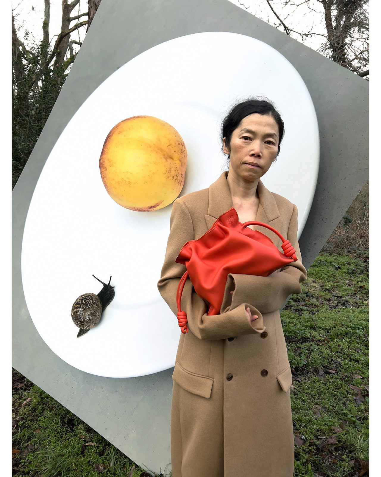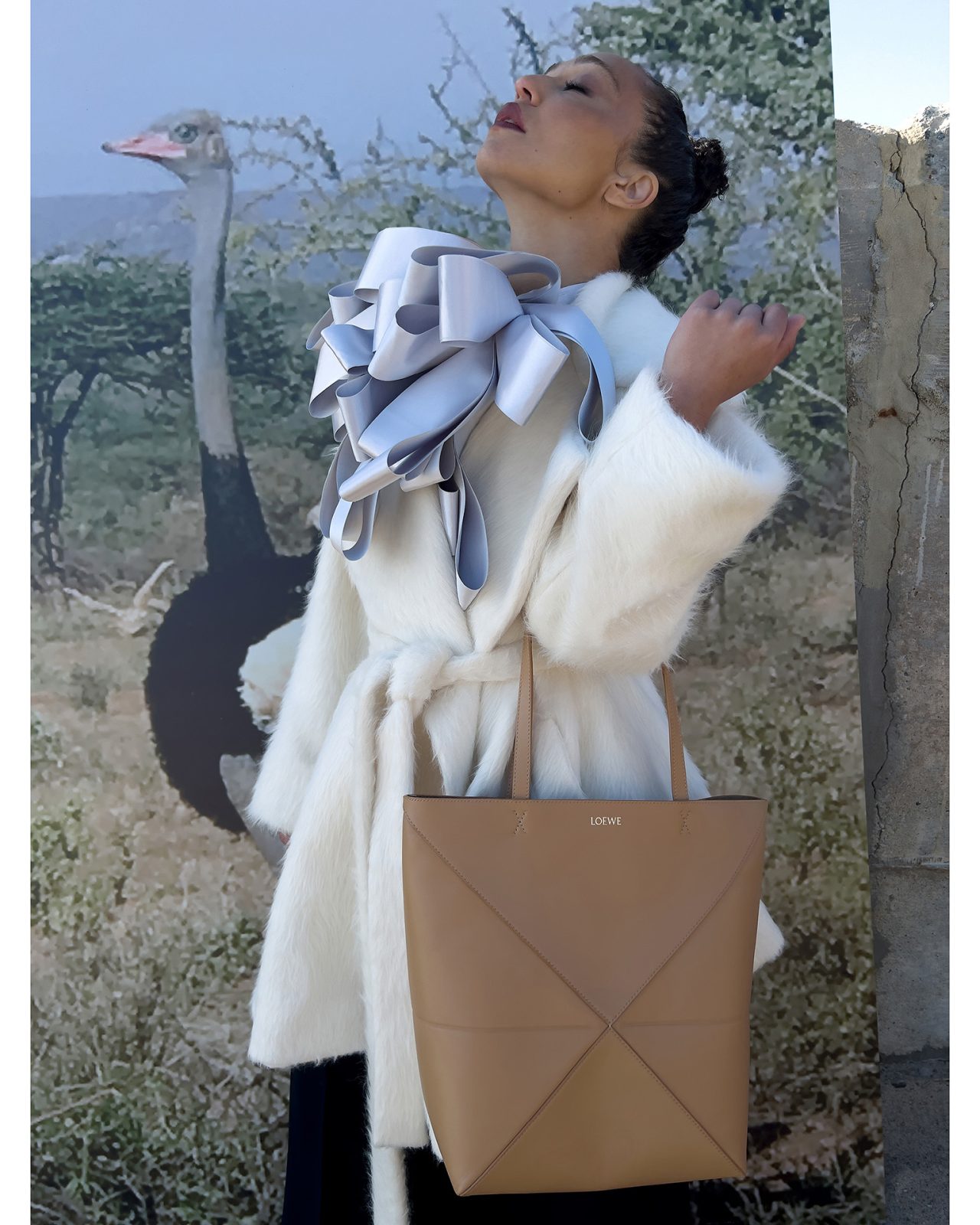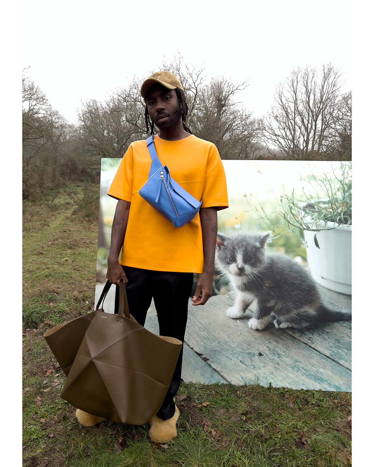 また、パズルやパセオ、フォントトートなど、LOEWE のアイコンバッグは、新たなバリエーションやカラー、サイズで登場。LOEWE を象徴するキーディテールでもある、Sonoya Mizuno (ソノヤ・ミズノ) が履く「オブジェ・トゥルーヴェ」のヒールと花びらのようなペタルトゥ、Murray Bartlett (マレー・バートレット) が履くブラッシュ・スエードのチェルシーブーツも新ビジュアルで披露された。