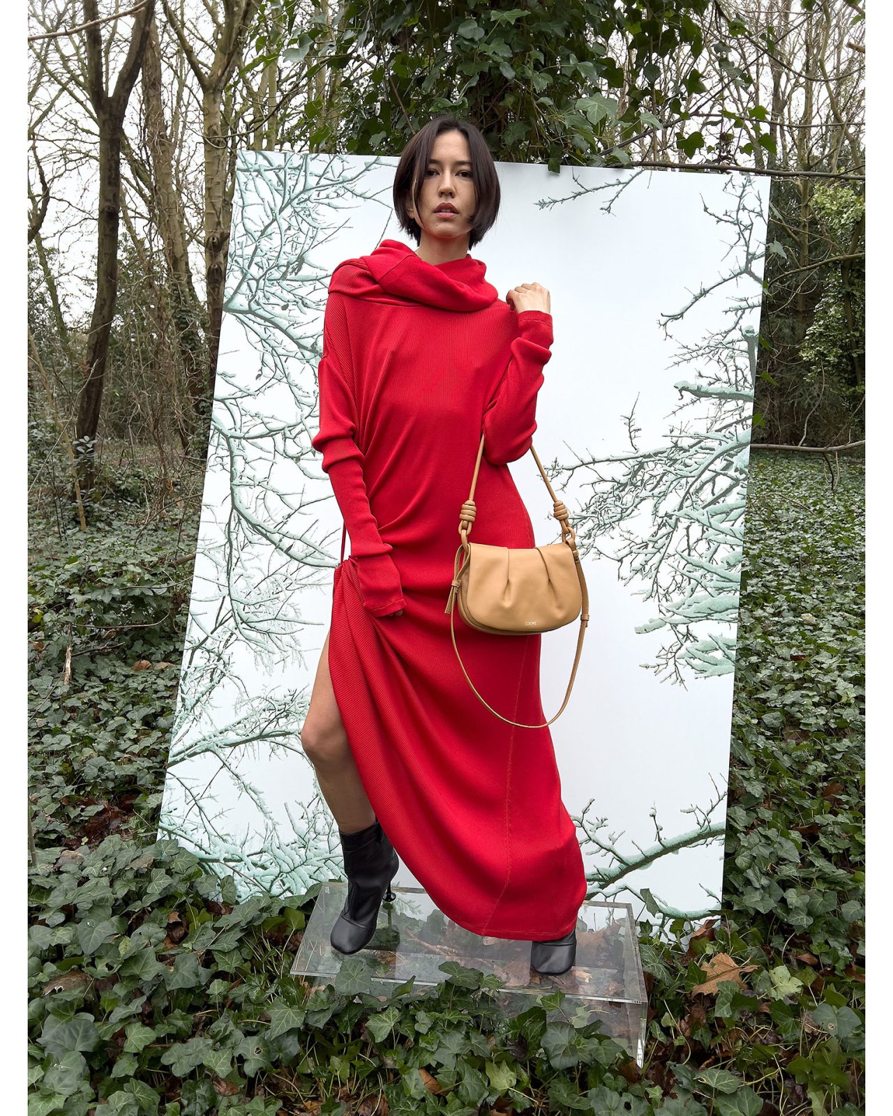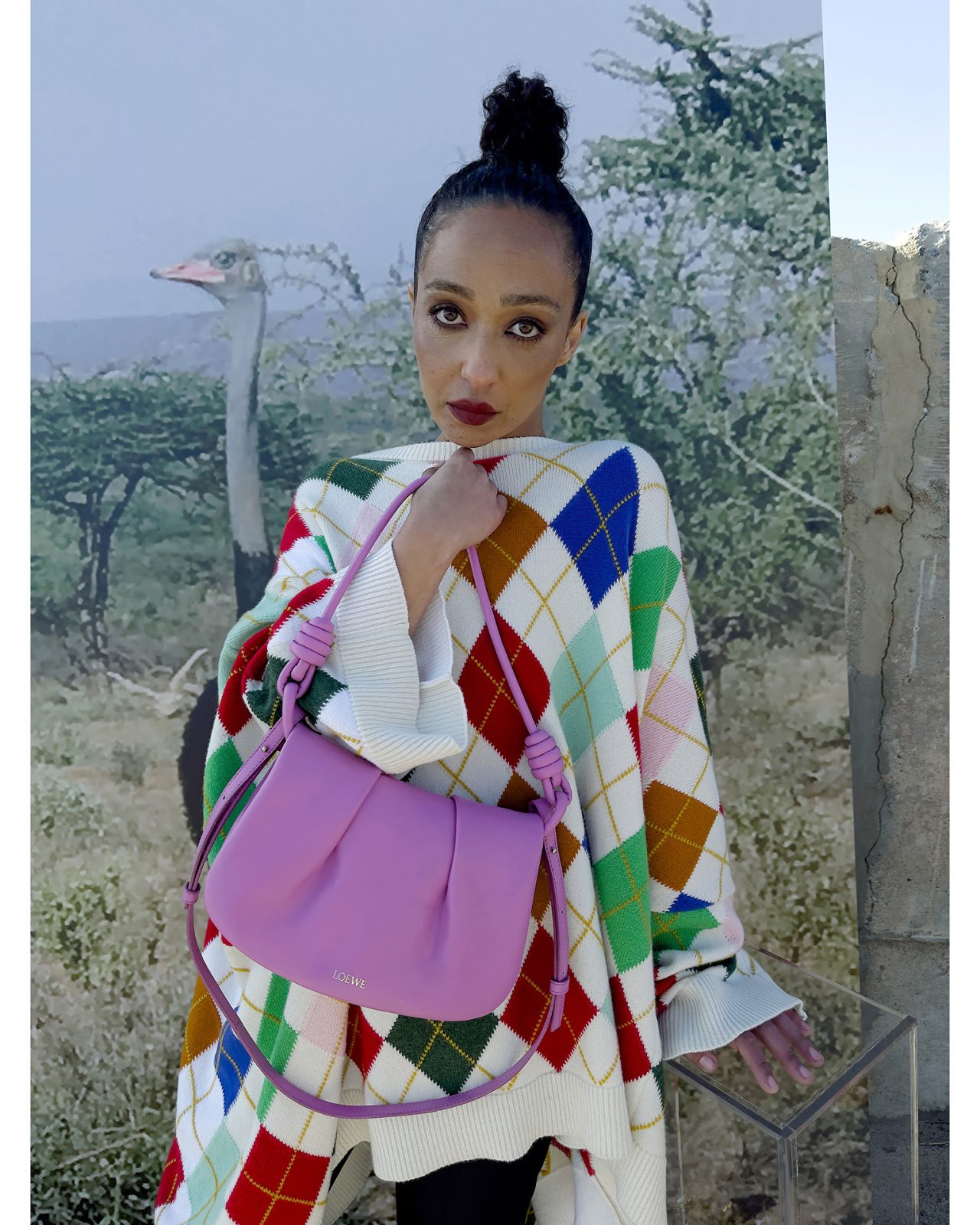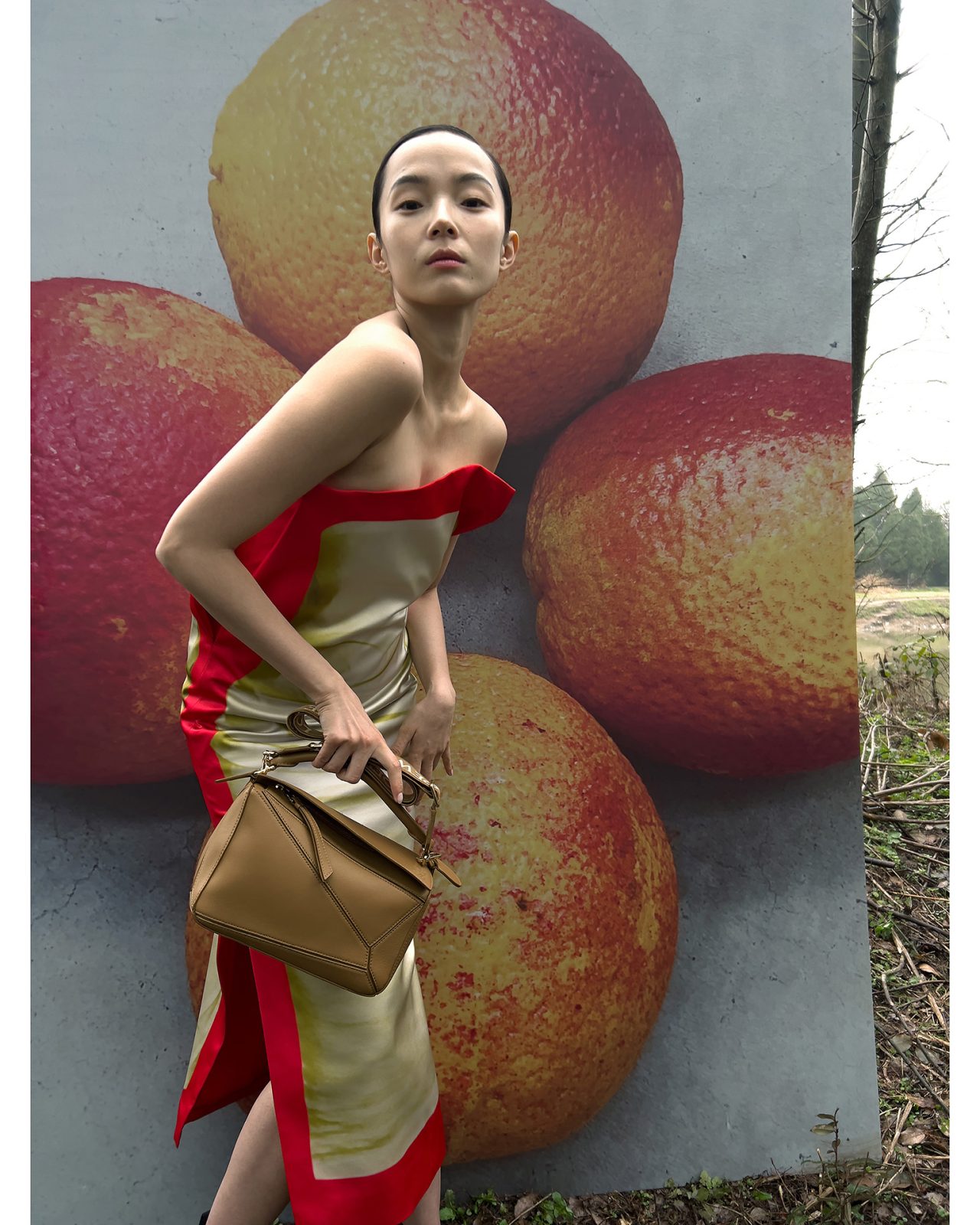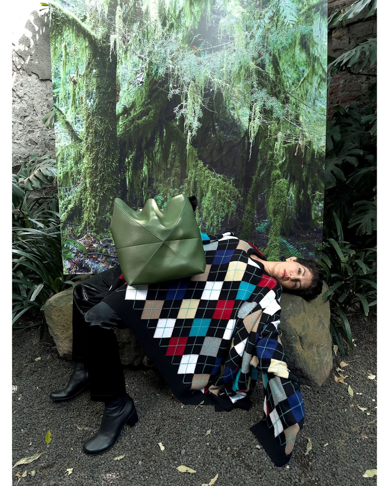 また、パズルやパセオ、フォントトートなど、LOEWE のアイコンバッグは、新たなバリエーションやカラー、サイズで登場。LOEWE を象徴するキーディテールでもある、Sonoya Mizuno (ソノヤ・ミズノ) が履く「オブジェ・トゥルーヴェ」のヒールと花びらのようなペタルトゥ、Murray Bartlett (マレー・バートレット) が履くブラッシュ・スエードのチェルシーブーツも新ビジュアルで披露された。
