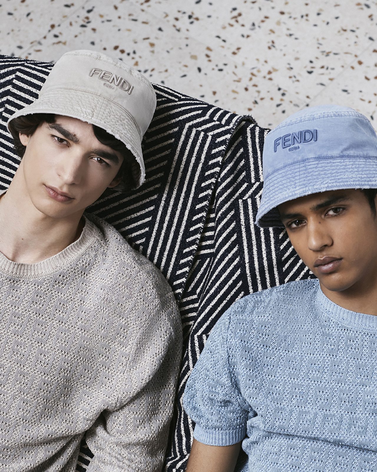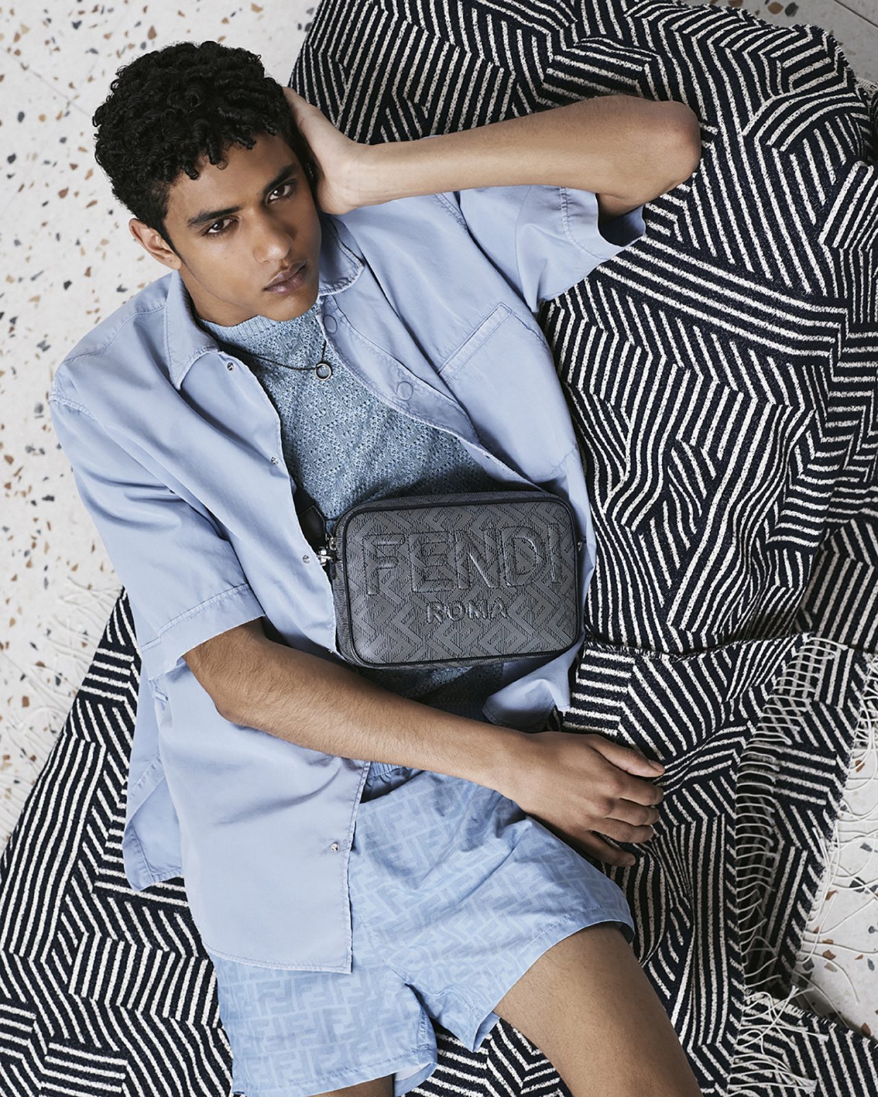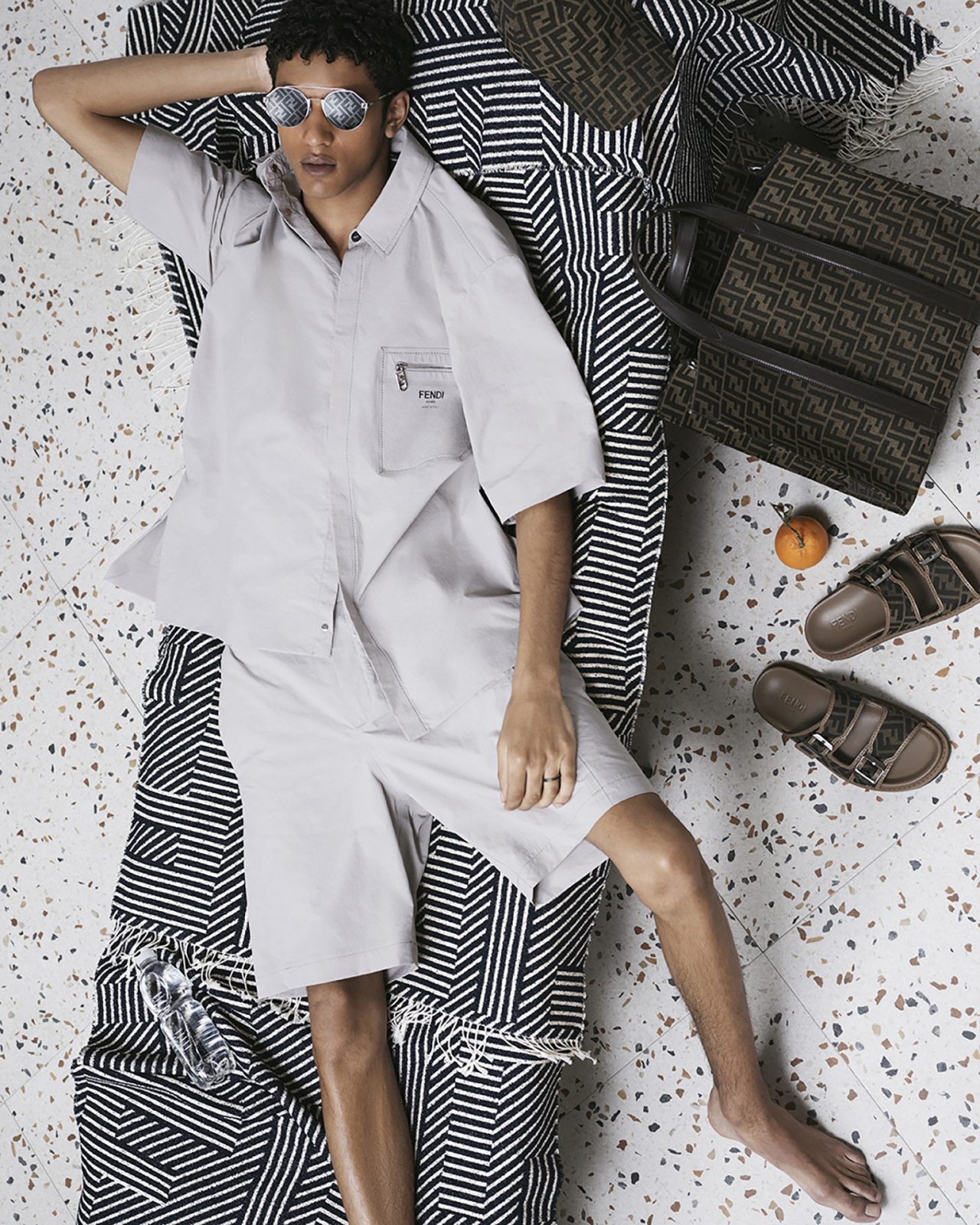 そして、アーティスティック ディレクター Silvia Venturini Fendi (シルヴィア・フェンディ) による、メンズウェアコレクションはシルクシャツやナイロンブロードショーツ、ジャージーTシャツが登場。ハンドスプレーやブラッシュ加工が施された「FENDI Flow (フェンディ フロー)」スニーカー、「FENDI O’ Lock (フェンディ オーロック)」のシグネチャーバッグとフットウェアスタイルはブルーとベージュのレザーというコレクションに合わせたカラーパレットで展開する。