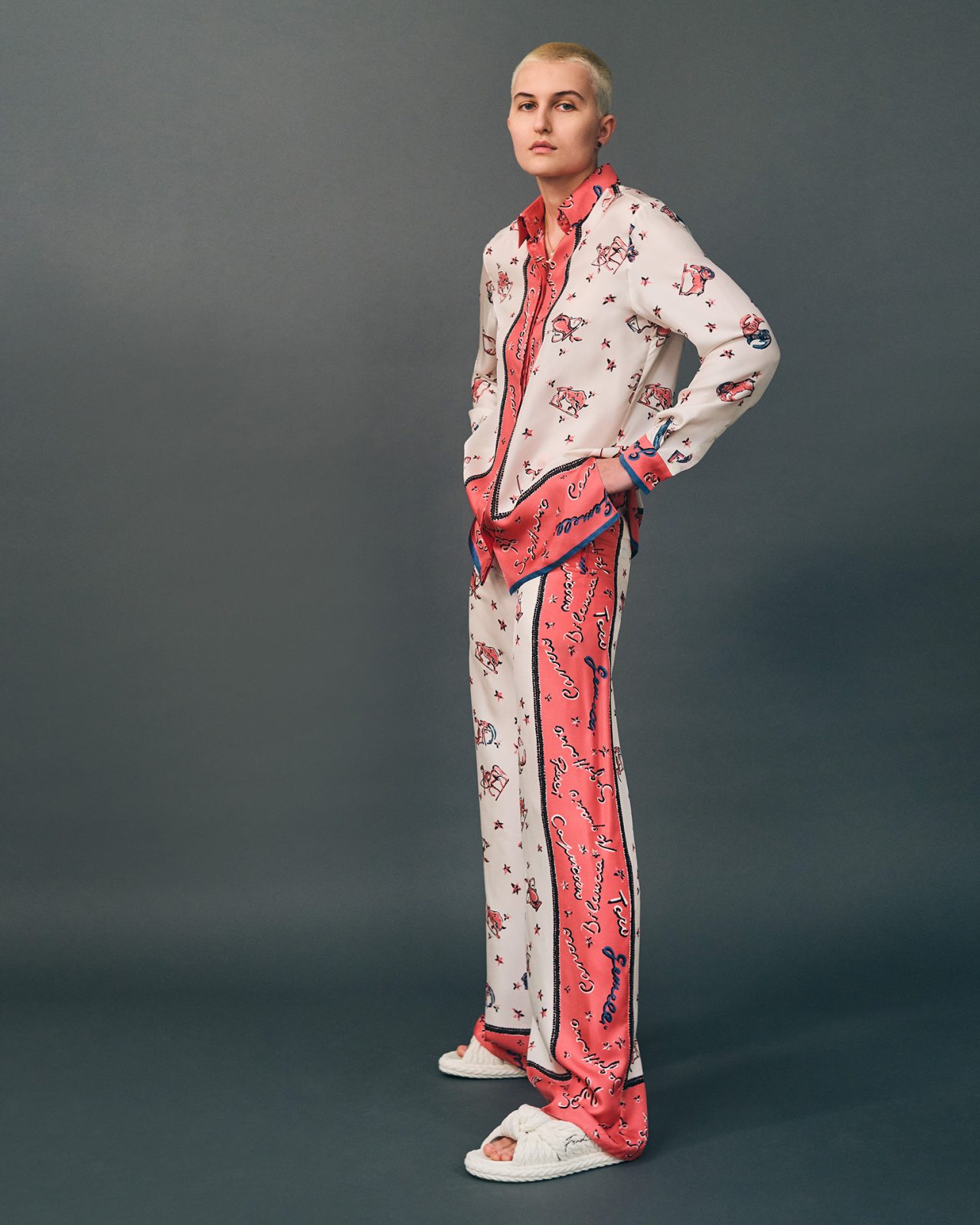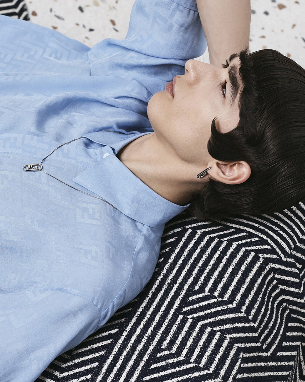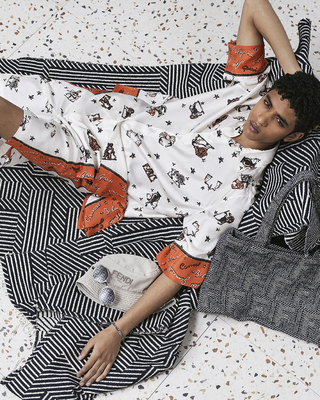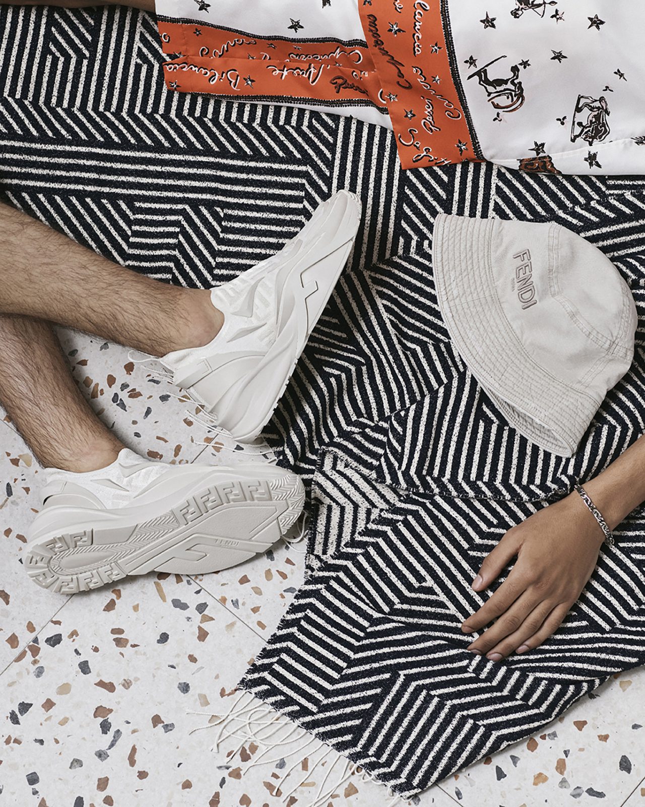 そして、アーティスティック ディレクター Silvia Venturini Fendi (シルヴィア・フェンディ) による、メンズウェアコレクションはシルクシャツやナイロンブロードショーツ、ジャージーTシャツが登場。ハンドスプレーやブラッシュ加工が施された「FENDI Flow (フェンディ フロー)」スニーカー、「FENDI O’ Lock (フェンディ オーロック)」のシグネチャーバッグとフットウェアスタイルはブルーとベージュのレザーというコレクションに合わせたカラーパレットで展開する。