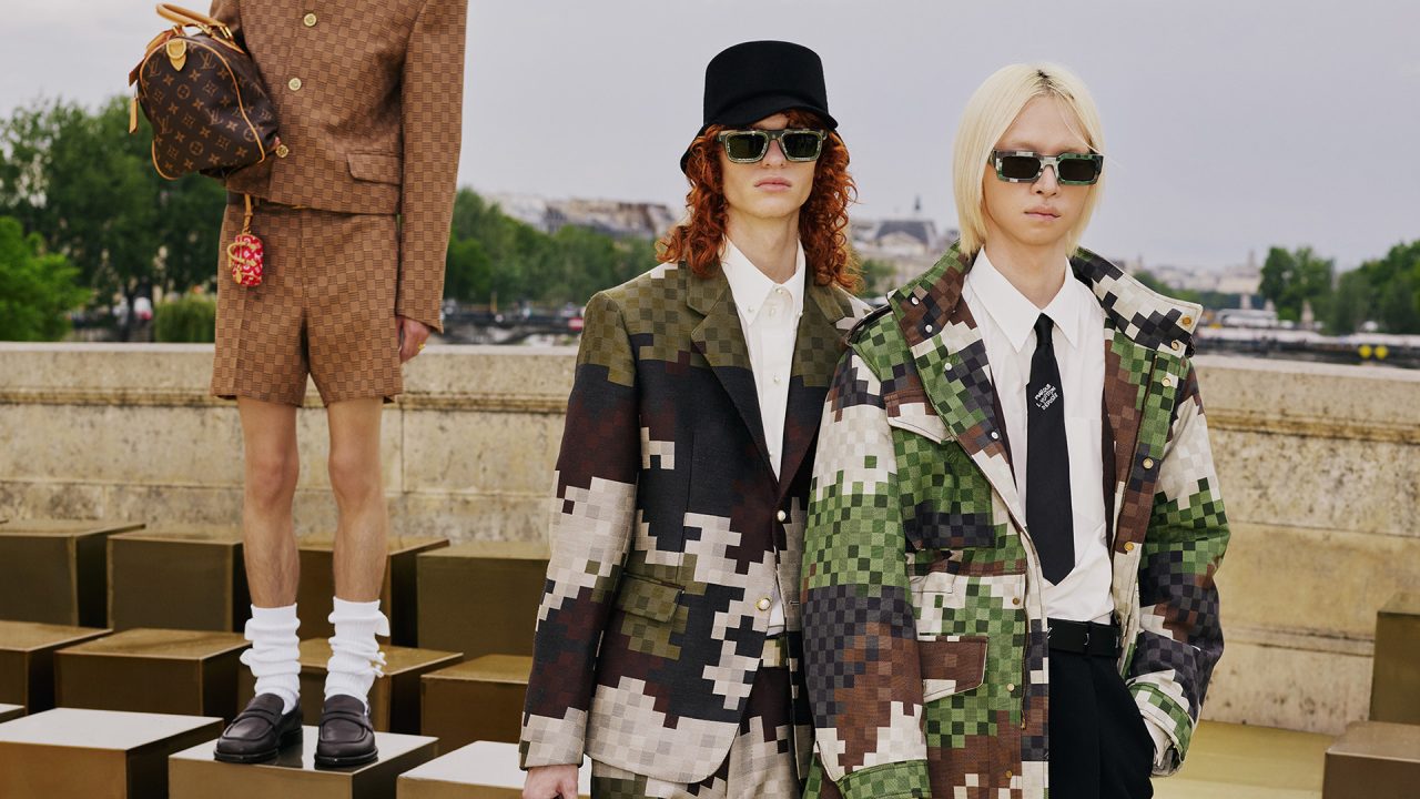 ショー直後から話題となった、ダミエ・パターンとカモフラージュが融合した“ダモフラージュ”のほか、イエローのカラーパレットやダンディズムなテーラード、アメリカのアーティスト ヘンリー・テイラーによる作品の刺繍など様々なキーワードでコレクションが構成。Todd Tourso (トッド・トウルソ)が監督したフィルムによる前奏曲“PUPIL KING”で幕をあけ、“JOY (Unspeakable)”と題した音楽に合わせて、Pharrell Williams とメンズ・スタジオが登場し、フィナーレを飾った。