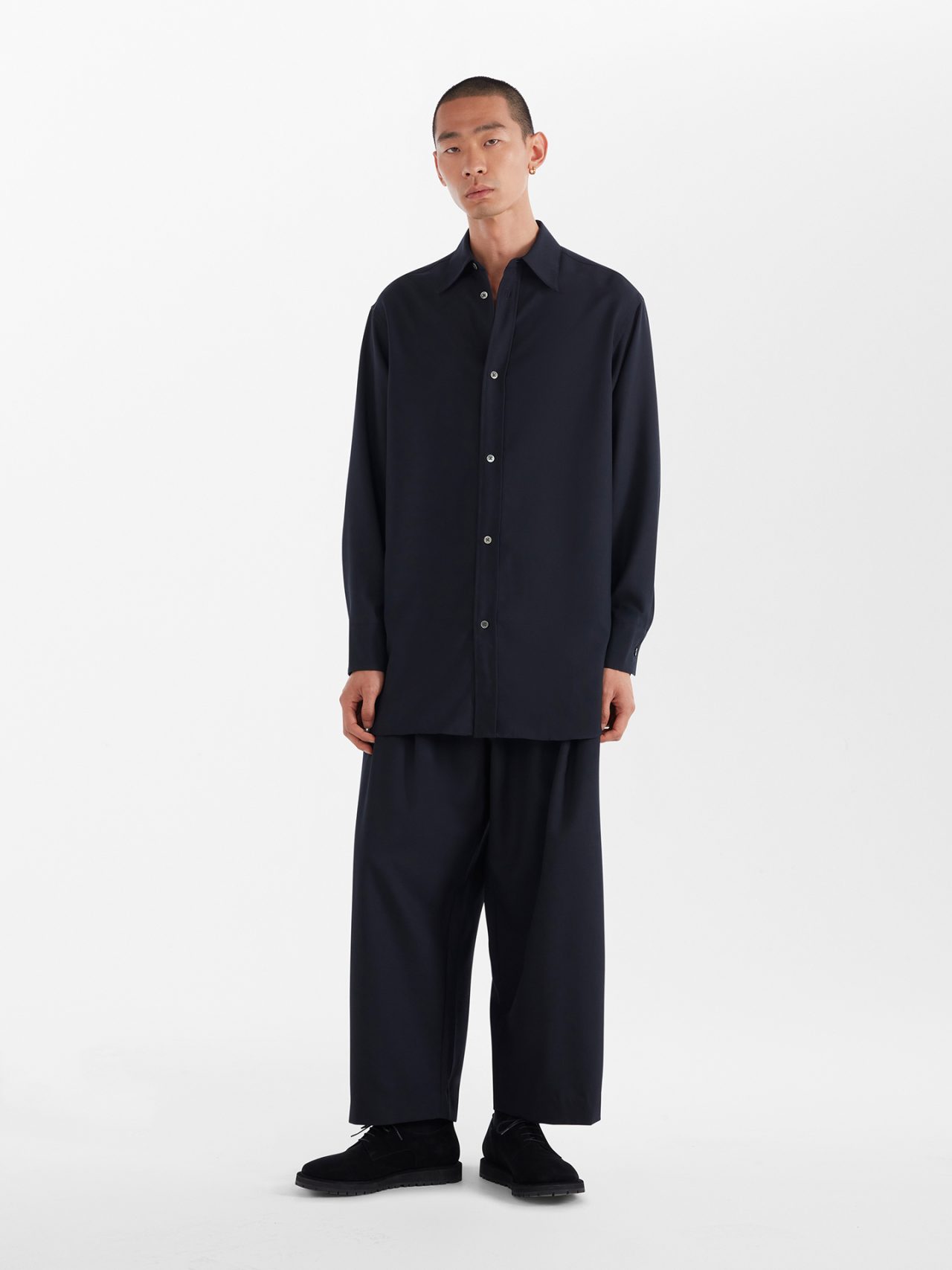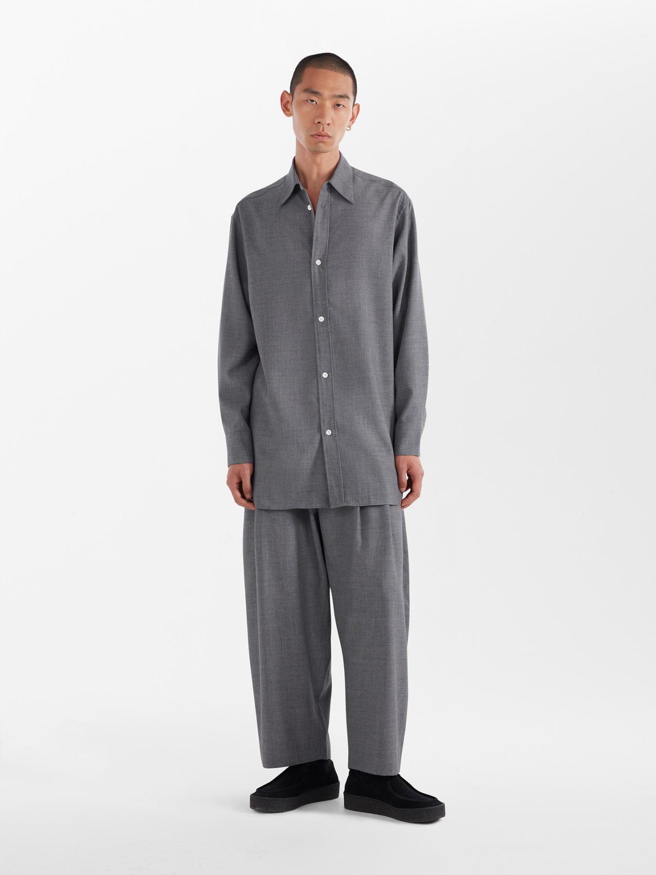 ストアでは、ウィメンズとメンズのフルコレクションのほか、アクセサリーやレザーグッズ、フットウェアなどを取り扱う。さらに、オープンを記念して、ソフトで肌触りの良い尾州産のウォッシャブルウールを採用した、オーバーシャツとツータックボリュームパンツを限定発売。単体で着用するのはもちろん、セットアップとしても着用できる。