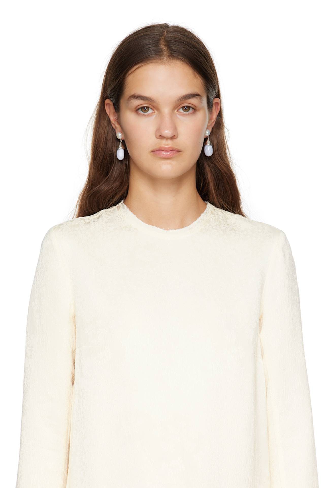 SSENSE のウィメンズウェアに新たに加わったブライダル カプセル コレクションには、他と差をつけられること間違いなしの一味違った特別なドレスやアクセサリーが勢揃い。ロンドンを拠点に、飛ぶ鳥落とす勢いでファンを拡大中の Chopova Lowena は、冒険精神が旺盛で大胆な花嫁に向けて、ベストセラードレスのシルエットを再解釈。レースやシルバーのティンセルを使ったフラワー タフタが散りばめられた。Simone Rocha は、デザイナー本人もお気に入りだという2023年春夏コレクションのブライダル スタイルを復活させ、特別に刺繍の縁取りやパールの装飾でアップデート。遊び心あふれるデザインが魅力的なニューヨーク発の Sandy Liang は、リボンを主役にしたミニドレスに、人気のスクエアトゥのメリージェーン バレエフラットの組み合わせを提案。洗練されたデザインのアクセサリーが揃う Sophie Buhai からは、パールを使ったジュエリーやアクセサリーのほか、カルセドニーを使用した「ちょっとブルー」なジュエリーがお目見えした。