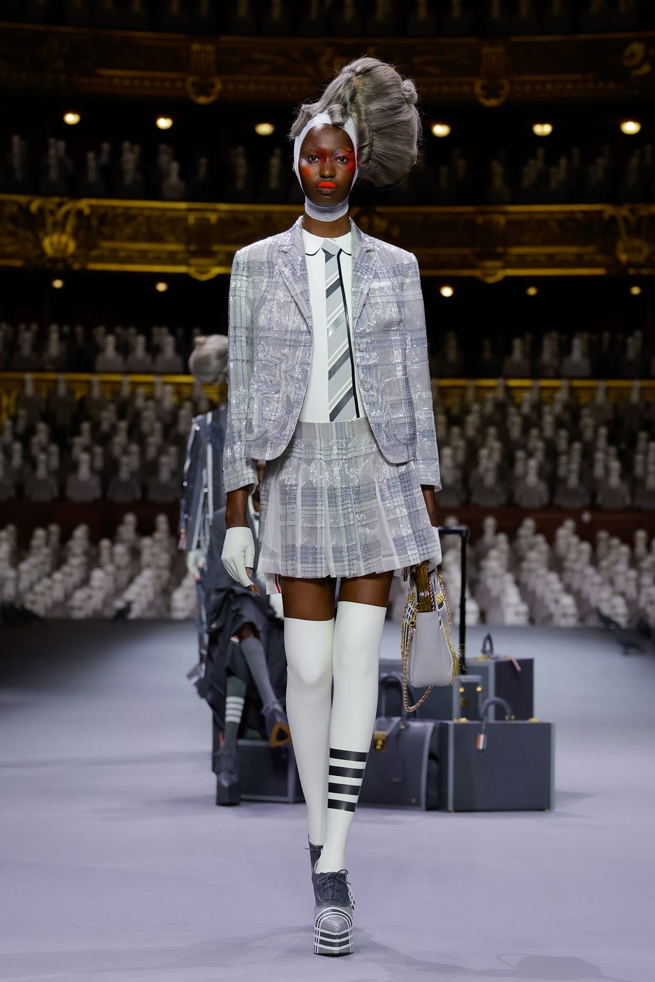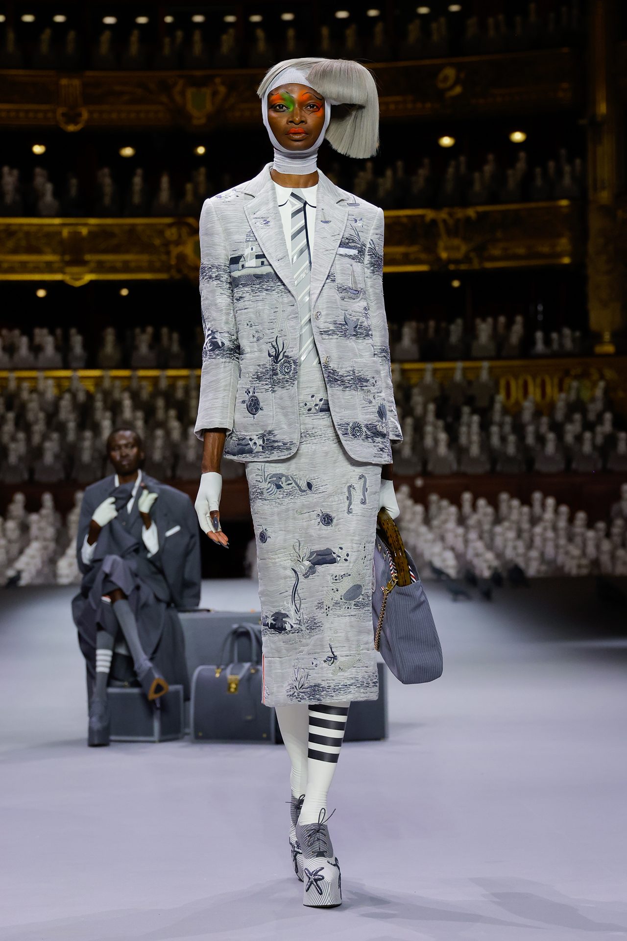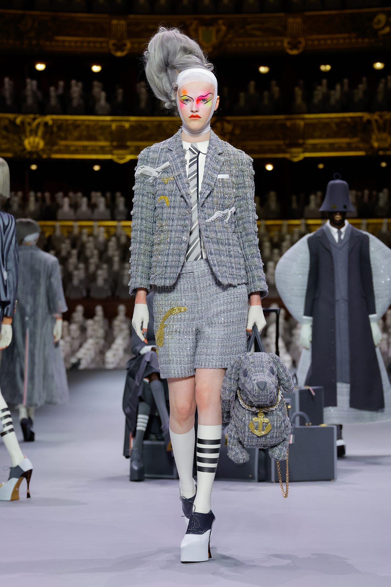 THOM BROWNE (トム ブラウン) の初となるオートクチュールコレクションがパリのオペラ座にてデビュー。本ブランドの制服を着た2000人の人形がパリ・オペラ座のオーディトリアムを埋め尽くした。コレクションでは1人の旅行客を演じるモデルの Alek Wek (アレック・ウェック) を中心に様々な乗客が現れ、クラシックなアメリカンスポーツウェアの要素をクチュールのレンズを通して表現。