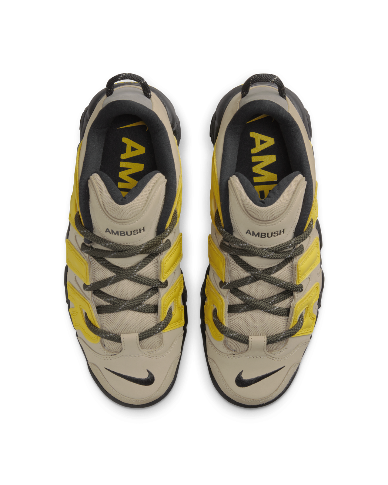 今回のコラボレーションでは、ナイトスタイルにインスピレーションを受け、フットサルをイメージした3種のアイテムが登場。ブラックベースのクラシックなフットボールジャージを再考したユニセックスの「ジャージトップス」や、スポーツにはもちろん、普段使いが可能な 「エアモア アップテンポ ロー」、そして両ブランドのロゴがあしらわれたメタリックシルバーの「フットボール」などがラインナップされている。