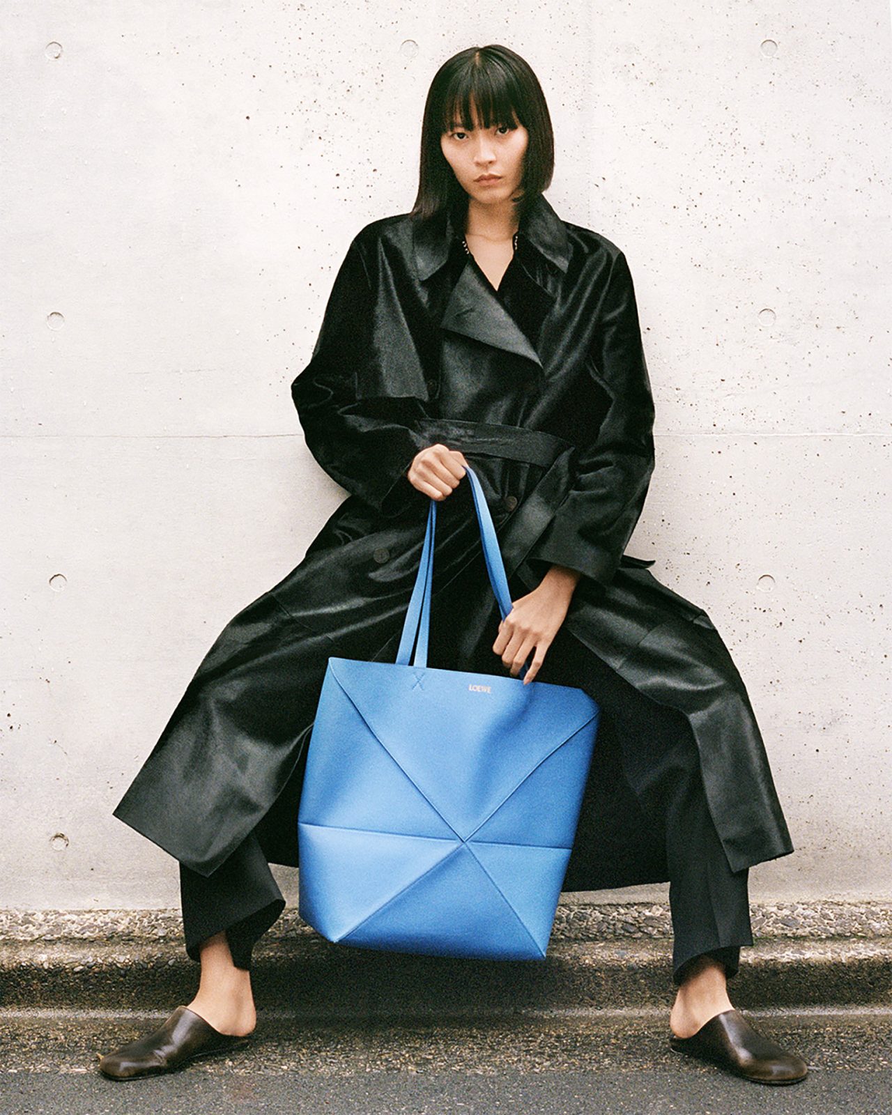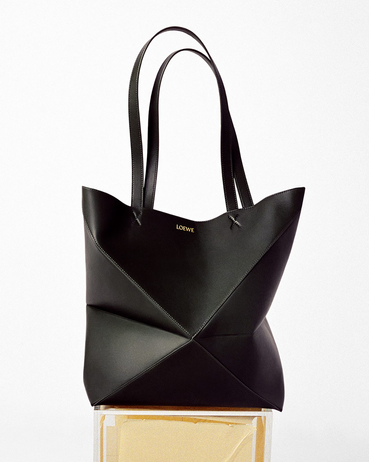 今回新たに発表されたパズルトートの特徴は、フラットな状態から一度のシンプルな動作で立ち上がるようにひらくようにカッティングされた、画期的な構造。コンパクトに折りたためるなど、日本の伝統工芸である折り紙からインスパイアされたアーカイブバッグ「オリガミ」を着想源に、LOEWE のアイコンバッグ「パズル」に落とし込んだデザインとなっている。