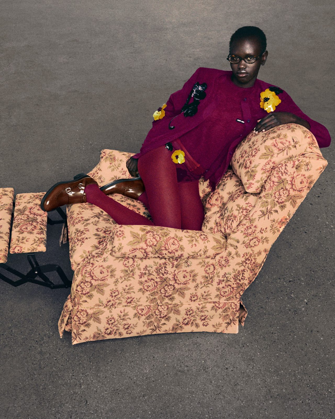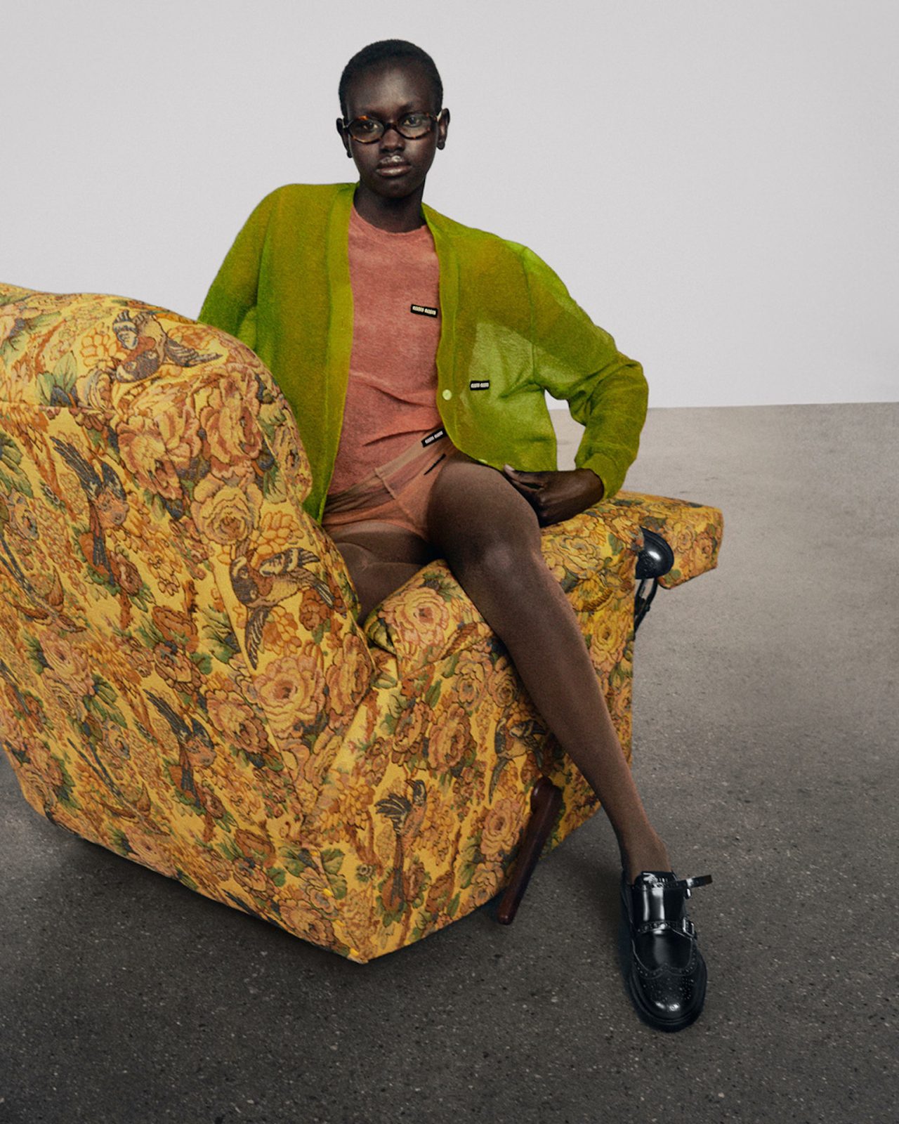 キャンペーンビジュアルでは、ミュウミュウのアーカイブにあるファブリックを贅沢に使用した、タイムレスで美しいヴィンテージチェアが登場。MIU MIU 2023年秋冬コレクションを纏った2名の人気モデル Rejoice Chuol (リジョイス・チュオル)、Annabelle Weatherly (アナベル・ウェザリー) がコラボレーションモデルの魅力を伝えている。フォトグラファーを務めたのは、1994年生まれの新星 Lengua。カナリア諸島で生まれ、現在ベルリンを拠点に活動している。
