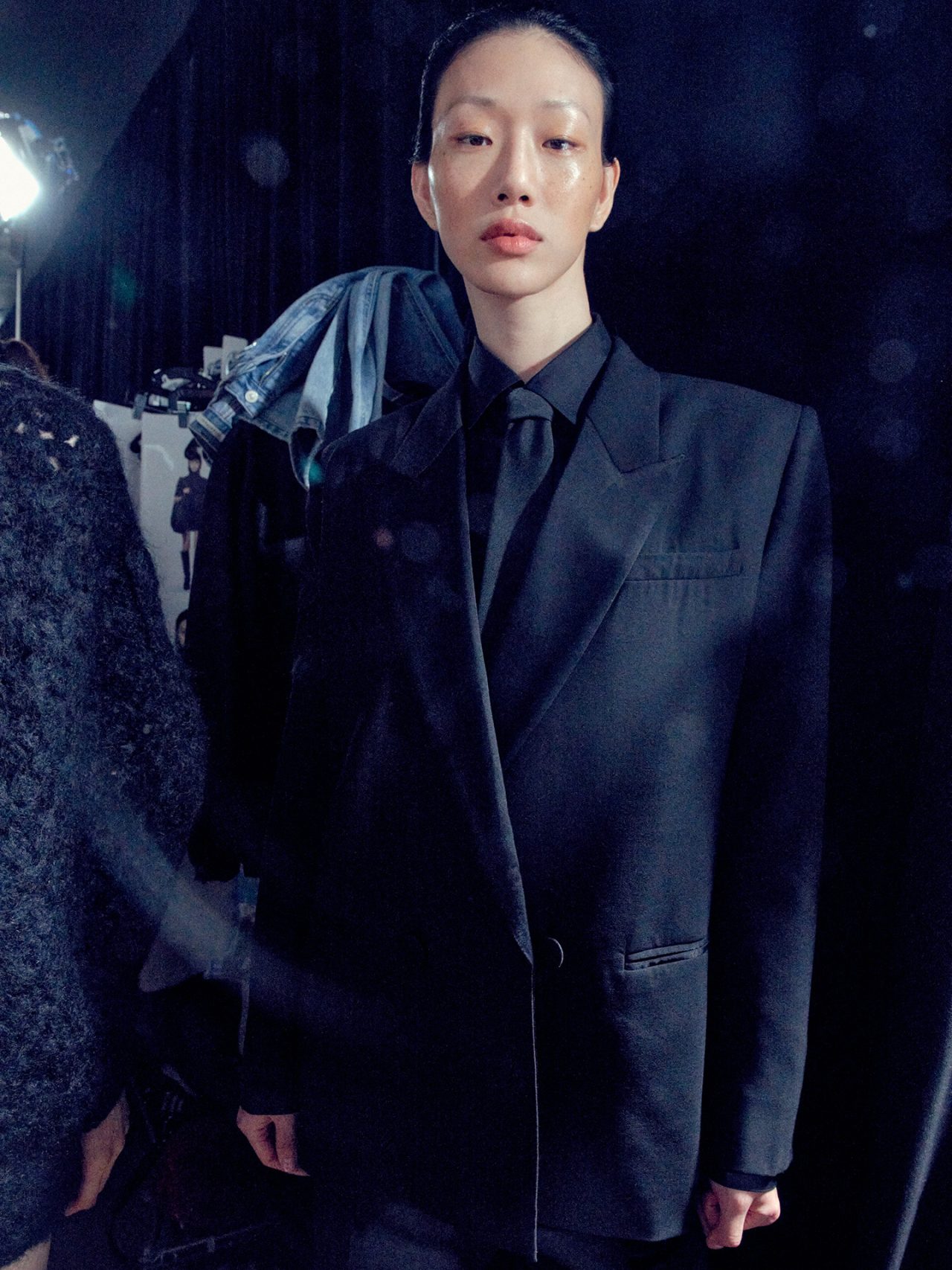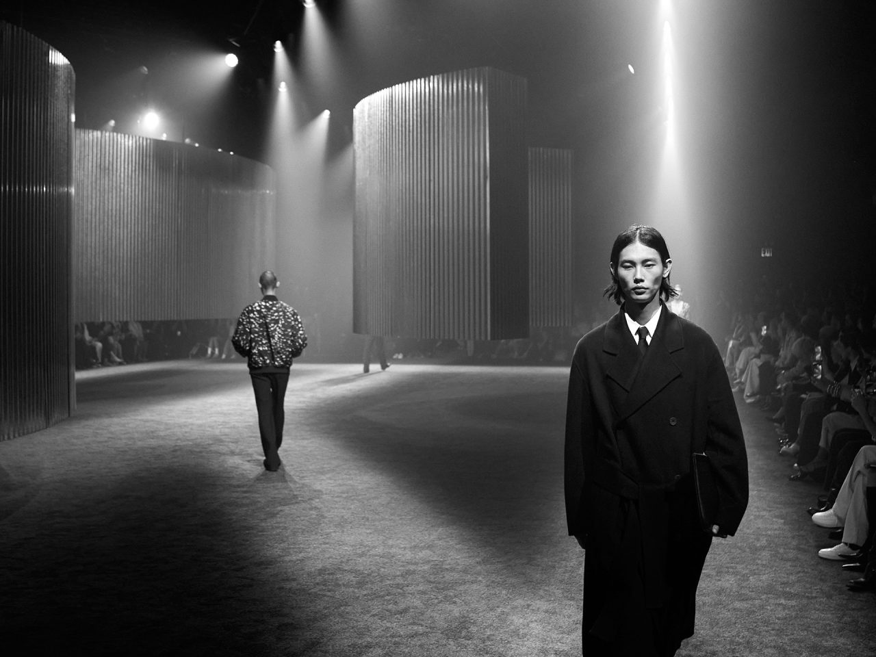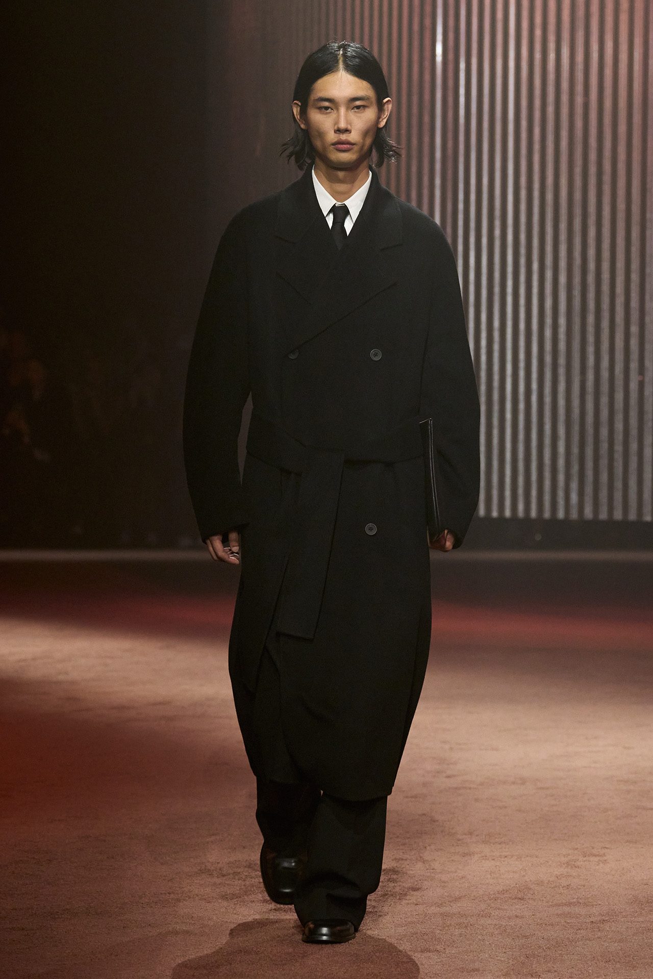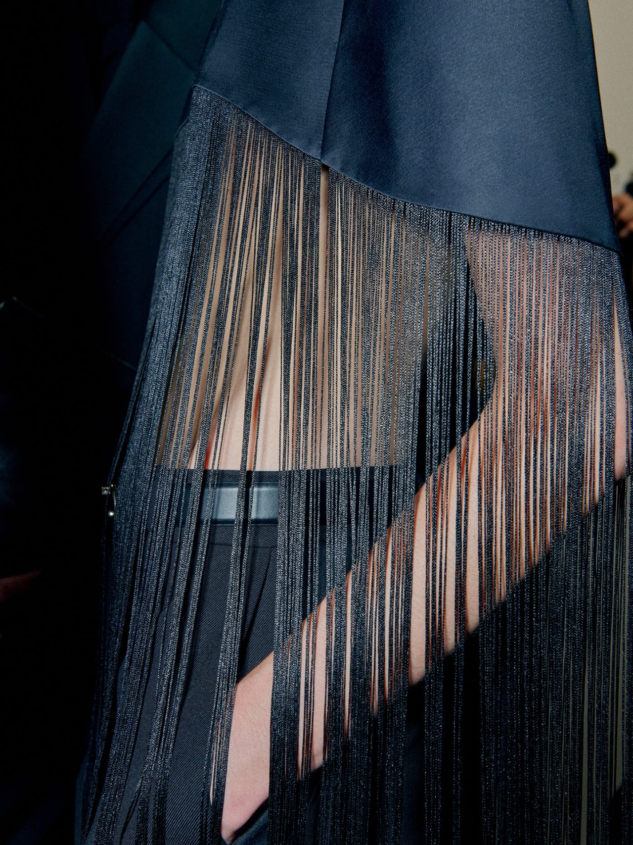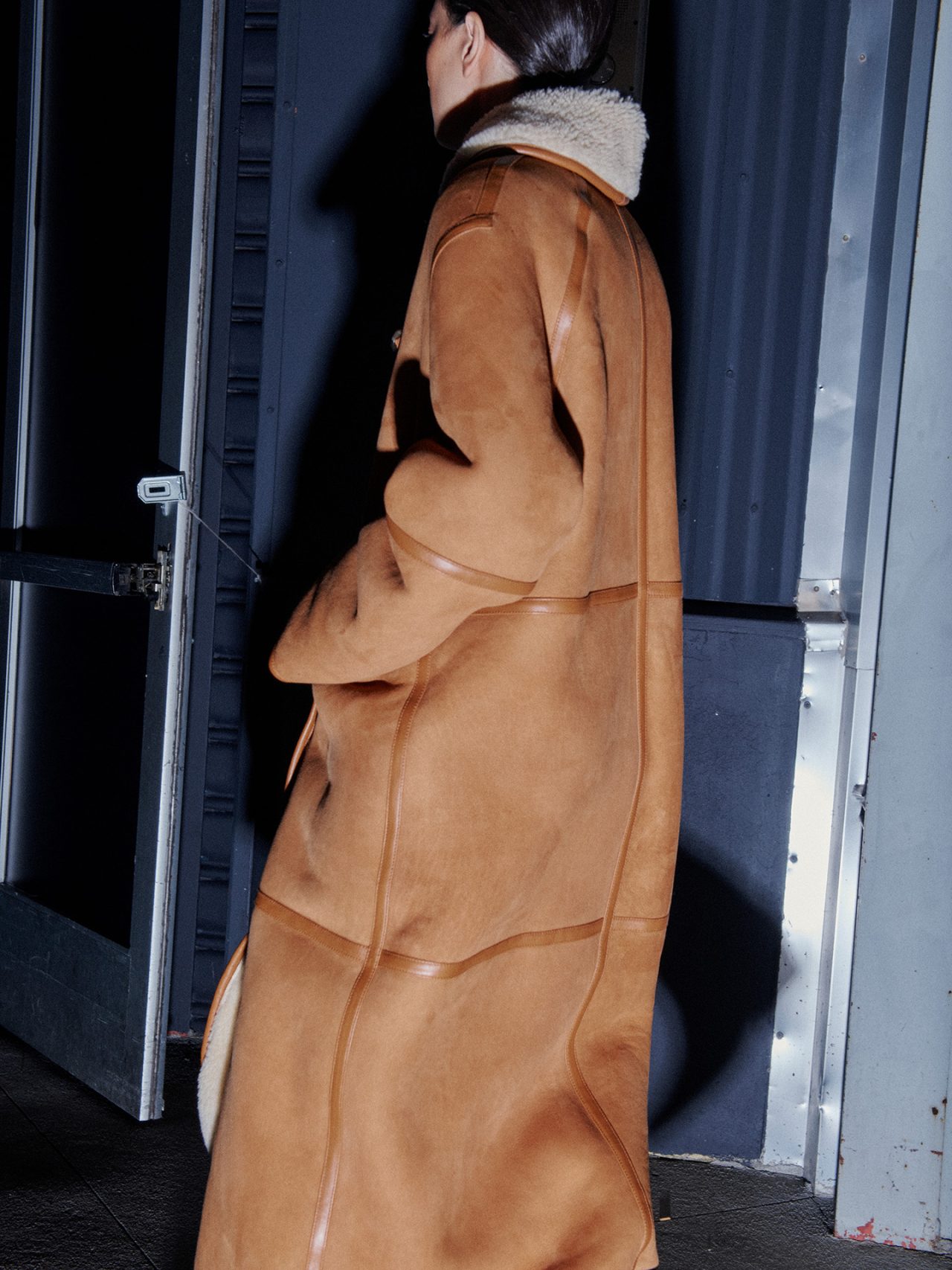 今シーズンもカラーパレットは自然がインスピレーション源。心地よいニュートラルなトーンが豊かなアースブラウンを際立たせ、マットな質感がメタリックな輝きと重なり合う。ゆったりとしたマキシ丈に大胆なショルダーで仕立てられたコート、フードやオーバーサイズのフリンジ付きスカーフを備え付けたニットウェアなど、実用性と美しさを兼ね備えたアイテムが披露された。