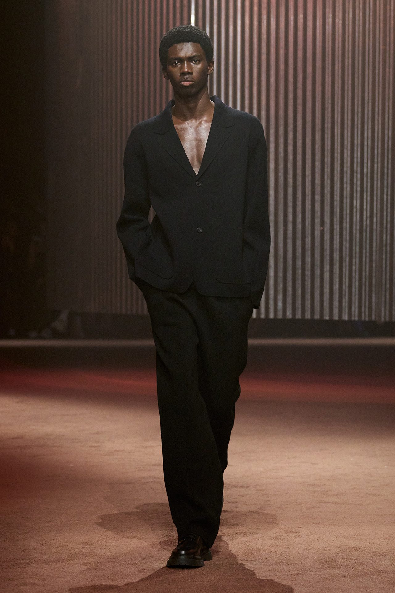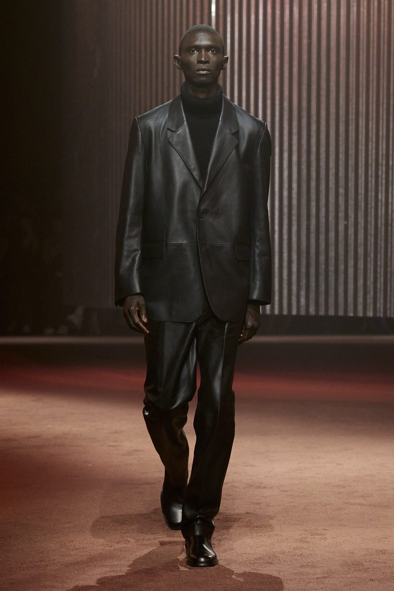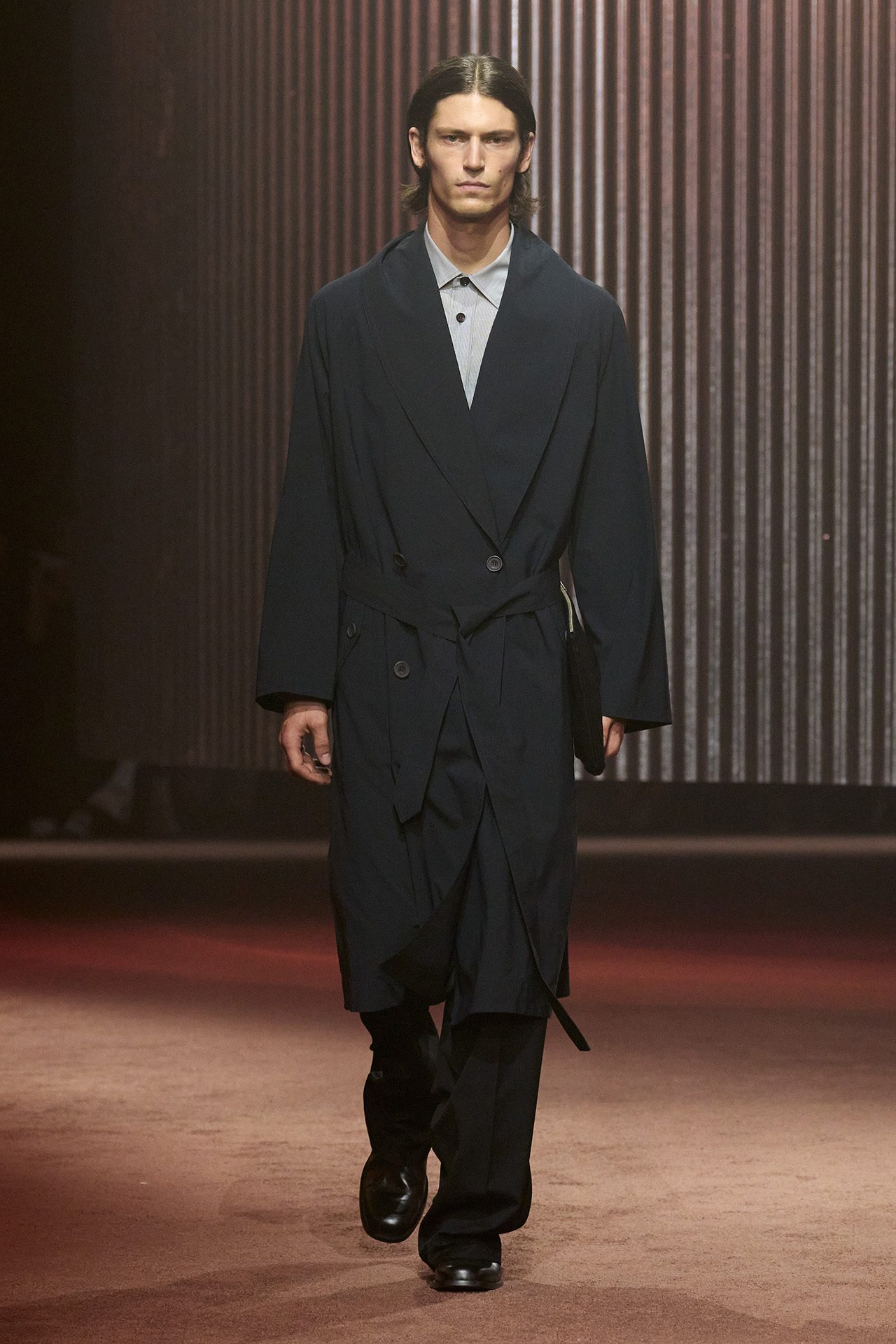 またブランドの「高い品質」と「長期間、愛用して貰える服作り」という理念のもと、完璧なフィット感を与えるアジャスタブルなパーツ付きのスーツや、シーンに応じて使い分けられる汎用性の高いリバーシブルのアイテムもお目見え。ソフトレザー、ヘリンボーン、チャンキーニットなどの素材感を追求しながらも、GCS カシミアなどを使用しコレクションの92%以上が持続可能なマテリアルから作られている。