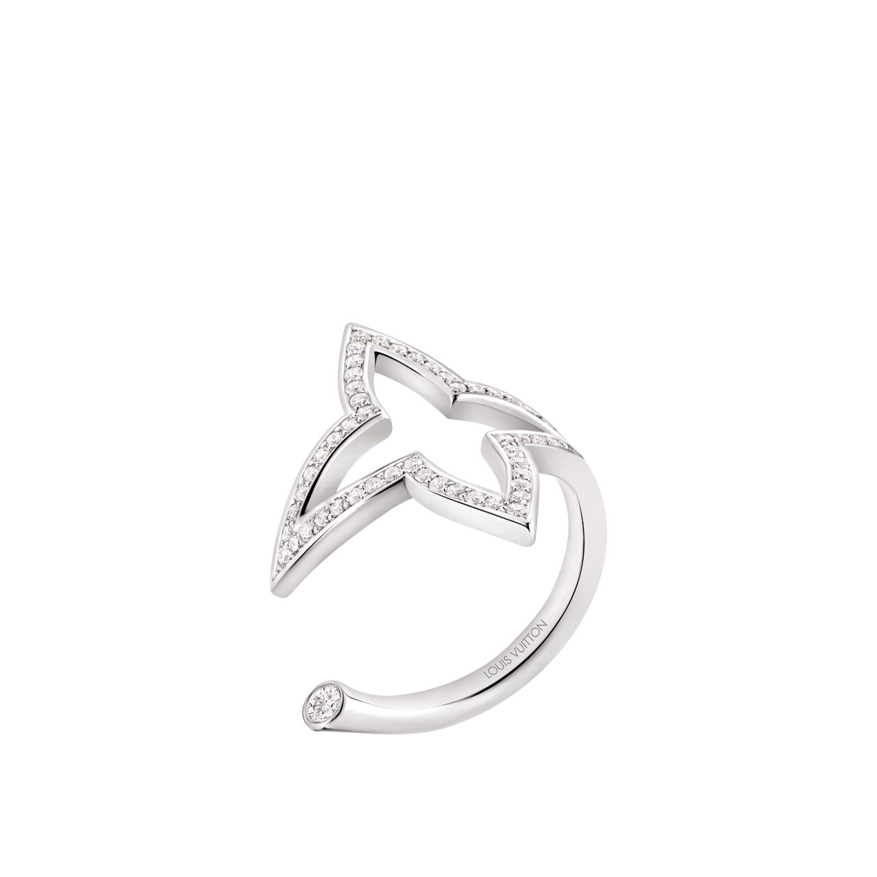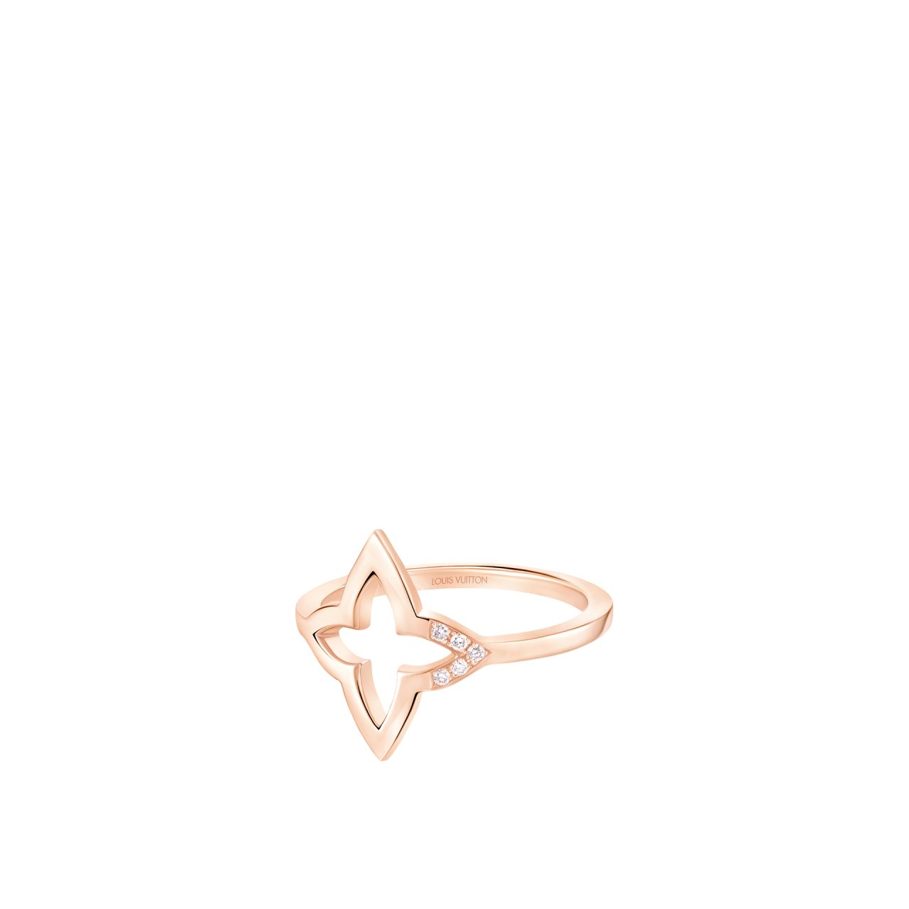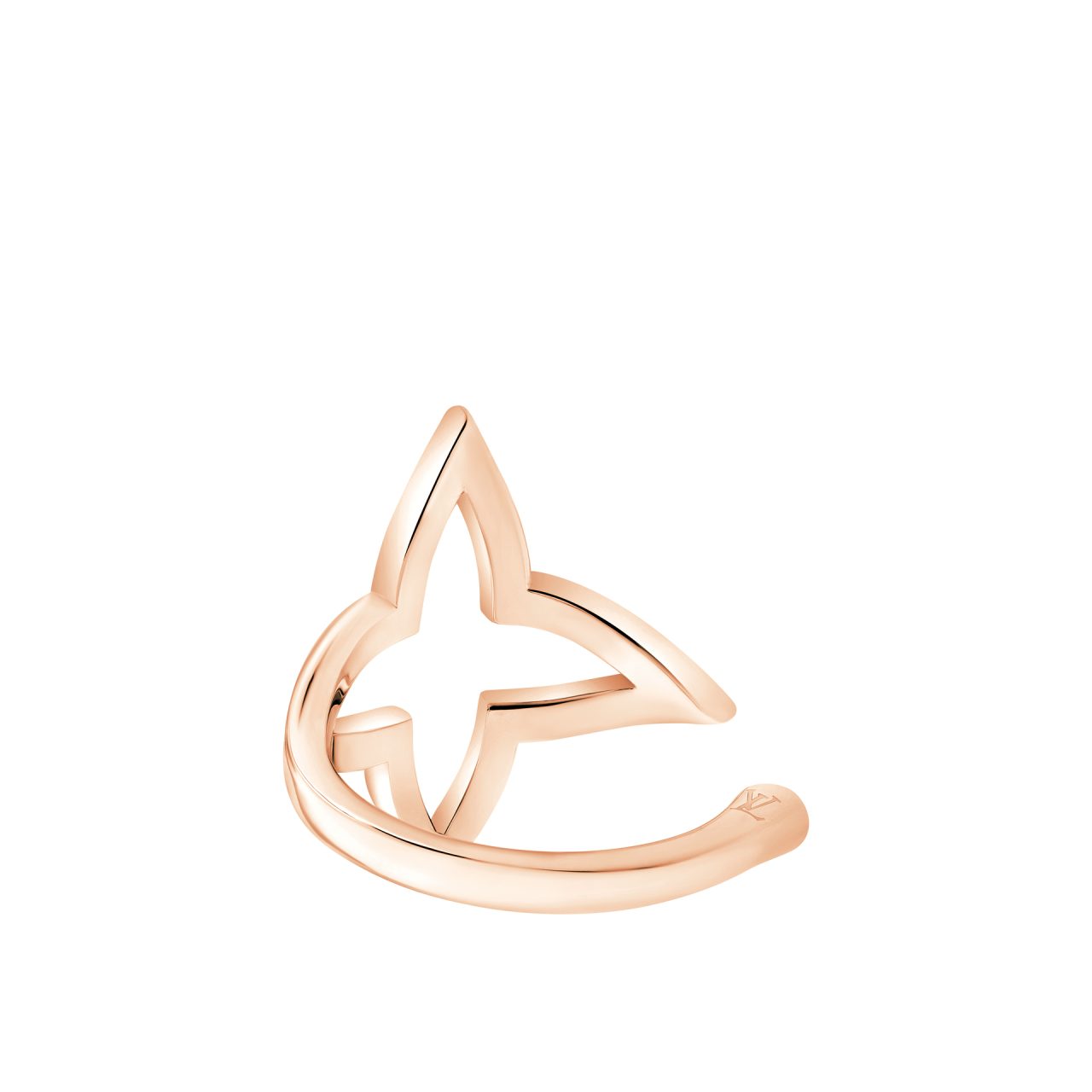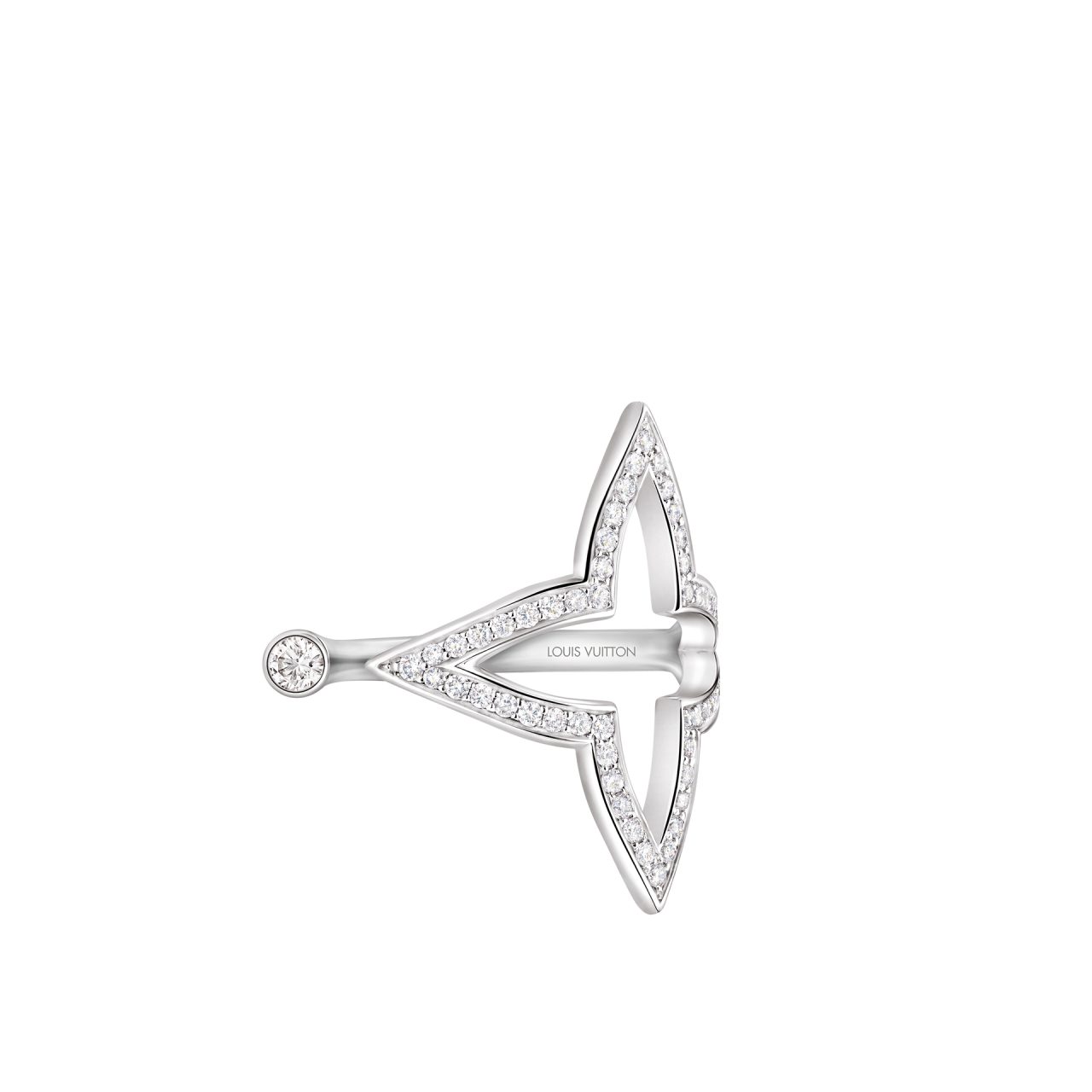新作「ルイ・ヴィトン ブロッサム」は、メゾンのスターシェイプのモノグラム・フラワーのアウトラインに新たな解釈を加えたシルエットが特徴。「イディール ブロッサム」や「カラー ブロッサム」と同様に、ダイヤモンドやフルパヴェのダイヤモンドをあしらった「ルイ・ヴィトン ブロッサム」 が提案するのは、プレシャスでありながらデイリーに愛用できるマストハブなピース。ピンクゴールドとホワイトゴールドをベースとした今回の新作ラインでは、重ね着けできる繊細なリングやペンダントから、大胆でエッジの効いたオーバーラップフープ、ダイヤモンドをあしらったオーバーサイズのイヤリングまで、11個のアイテムがラインナップ。