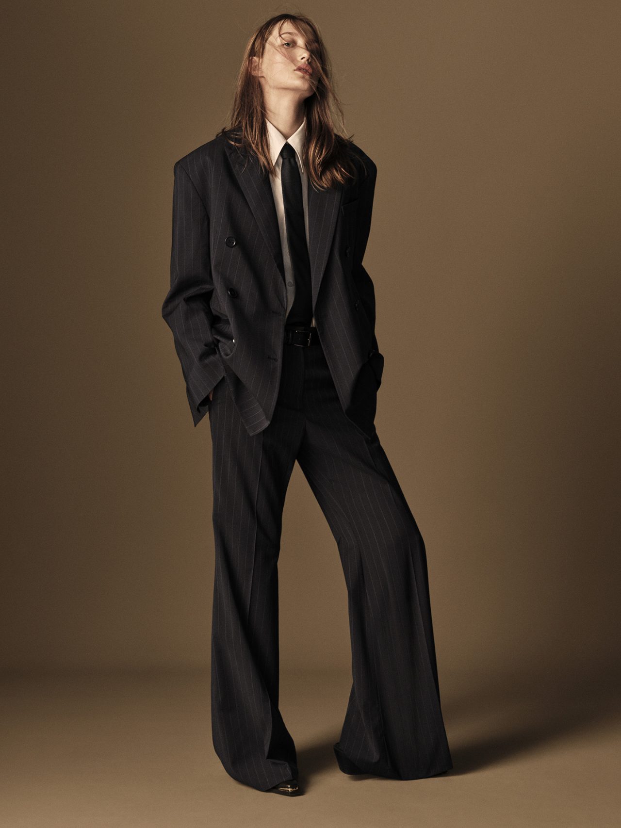 今回のコレクションはオーバーサイズやレザーアイテムが特徴で、伝統的なテーラリングに斬新なシルエットを加え、モダンに再構築している。また、上質な素材を使い、落ち着いたカラートーンで統一することで、時代に左右されないタイムレスなスタイルに仕上げた。キャンペーンビジュアルでは多種多様なアーティストの自然な表情をとらえ、時代やジャンルを超越した強さと自信が表現されている。