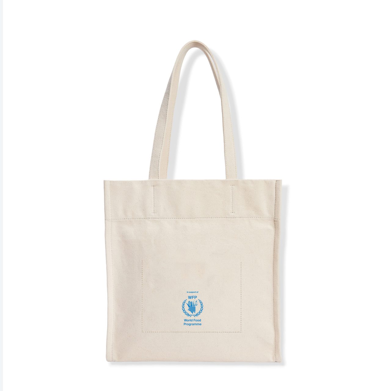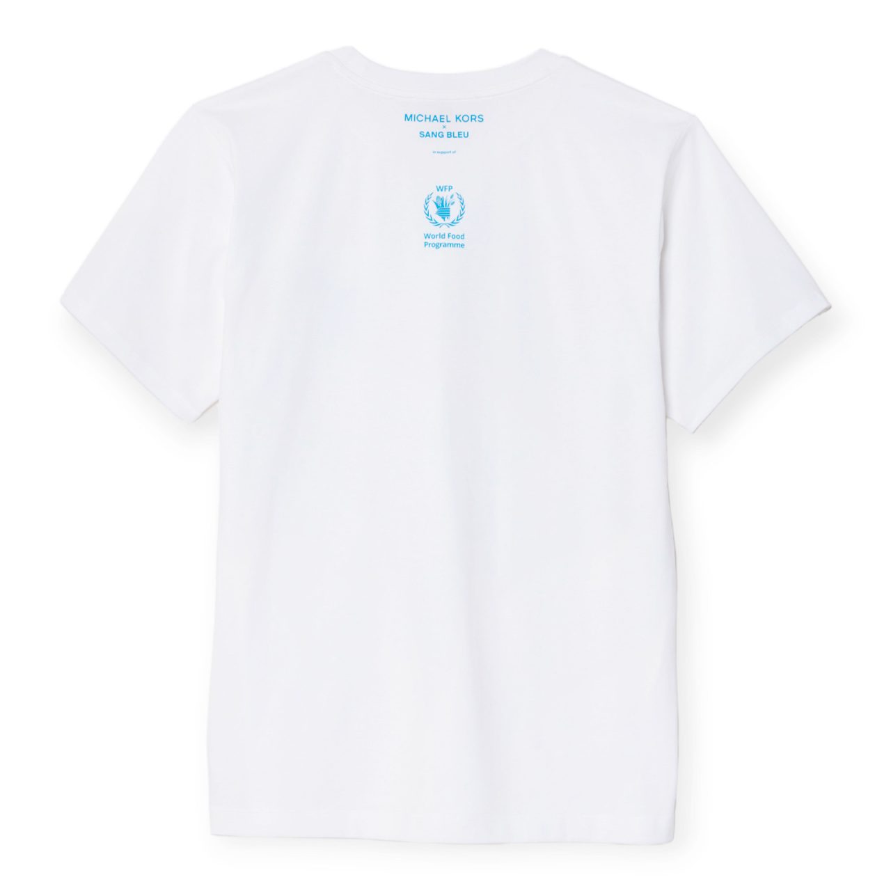 今回新たに発表されたTシャツとトートバッグは、クリエイティブ・ディレクターでありタトゥーアーティストでもある Maxime Plescia-Buchi (マキシム・プレシア・ビューチ) 率いるクリエイティブ・エージェンシー Sang Blue (サン・ブルー) とコラボレーションして作られた。ハートモチーフのロゴは、ブランドの信念である「food is love」というメッセージが込められたハートマークに WFP のシンボルカラーであるブルーをあしらい「ウォッチ・ハンガー・ストップ」らしさを表現し、さらに Maxime Plescia-Buchi の特徴である幾何学的なデザインが加わっている。