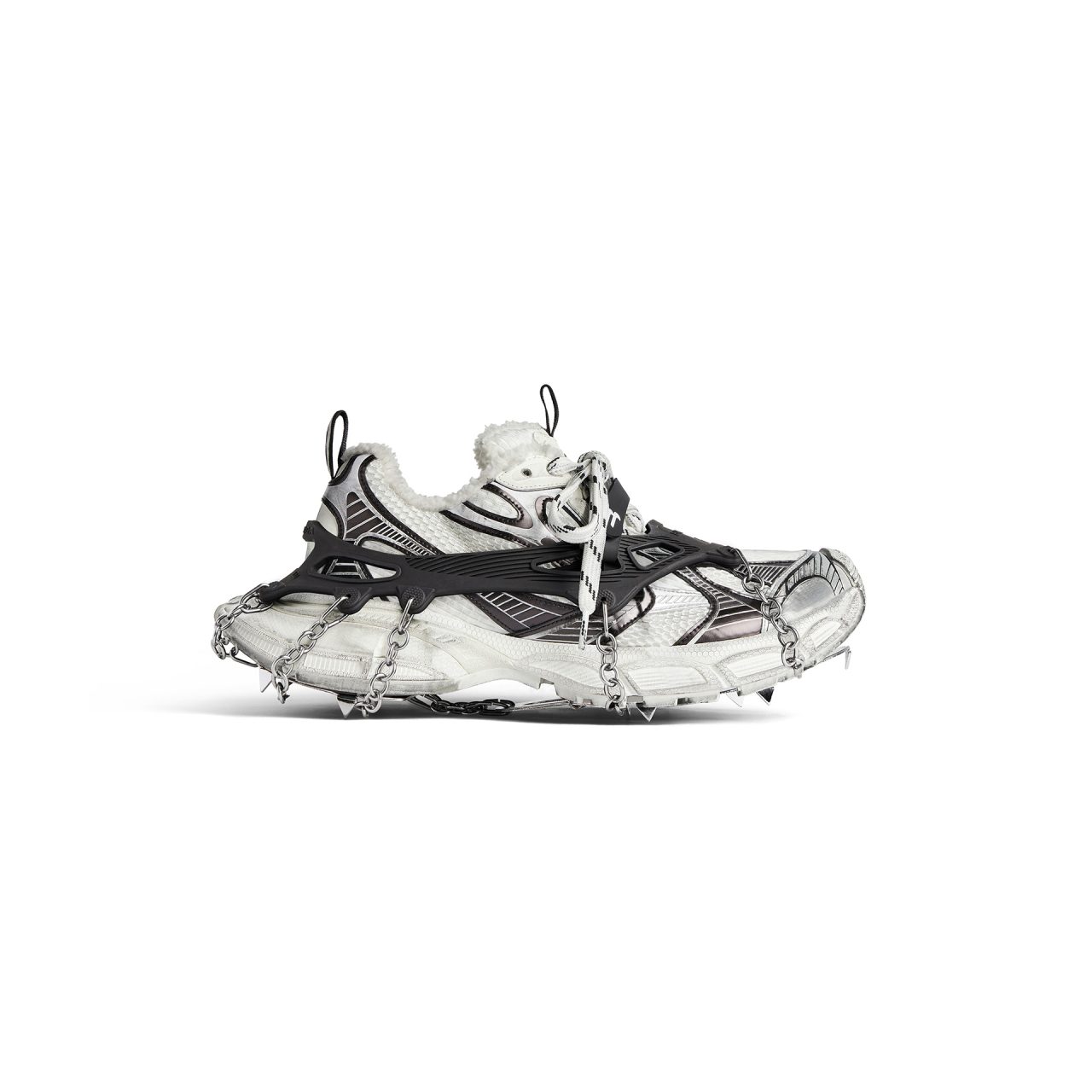 BALENCIAGA のクラフツマンシップと革新的な素材・技術の融合により、雪上での視認性や断熱性、プロテクション等に特化したアイテムが揃った本コレクション。一体型のスノーゲイターや高度な通気システム、バッテリー寿命を節約するポケット、スキーパスホルダーが備えられたパーカとカーゴパンツの他、キルティングマットナイロンのジャケットとベスト、ボンディング加工のストレッチナイロンの5ポケットスキーパンツ、体にフィットするフリースジャケット、耐久性のあるリップストップ素材のパッド入りグローブなどが登場する。また、フットウェアでは柔らかなフォルムが特徴的な「ALASKA ローブーツ」と、スパイクアイゼンの取り付けや雪道に対応可能な「3XL SKI スニーカー」が展開。さらに、スキー板やヘルメット、ダウンヒルやクロススキー、ハイキング用のポールなどの機能的なアスレチックアイテムがラインナップ。