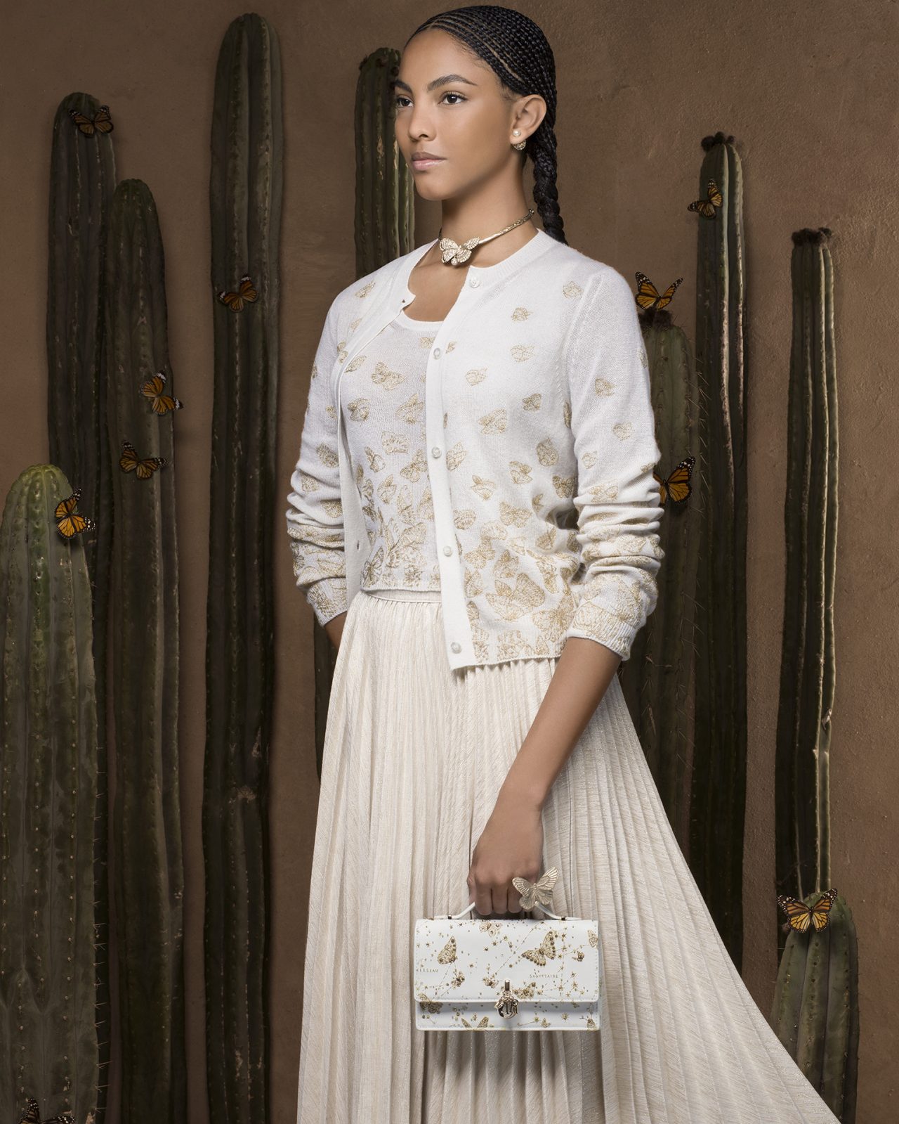 表参道交差点にたたずむイベントスペース OMOTESANDO CROSSING PARK にて、ホリデーシーズンを彩る Dior のポップアップイベントがオープン。イベント会場は、ブランドのクリエイティブディレクター Maria Grazia Chiuri (マリア・グラツィア・キウリ) が2024年クルーズコレクションのためにデザインしたバタフライが散りばめられ、幻想的な世界観を表現。会場内にはゴールドやホワイトカラーがあしらわれたバッグやドレス、新作アイテムが展示されている。
