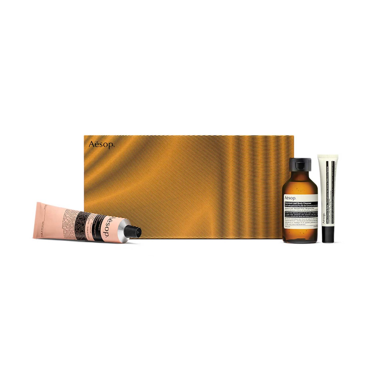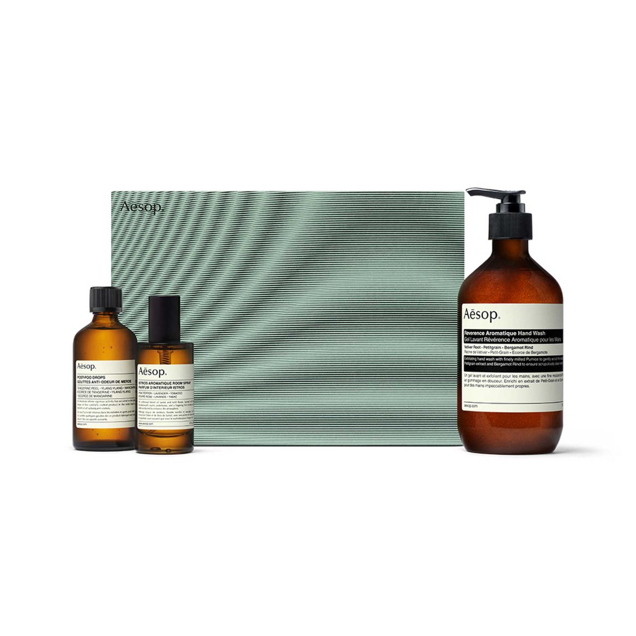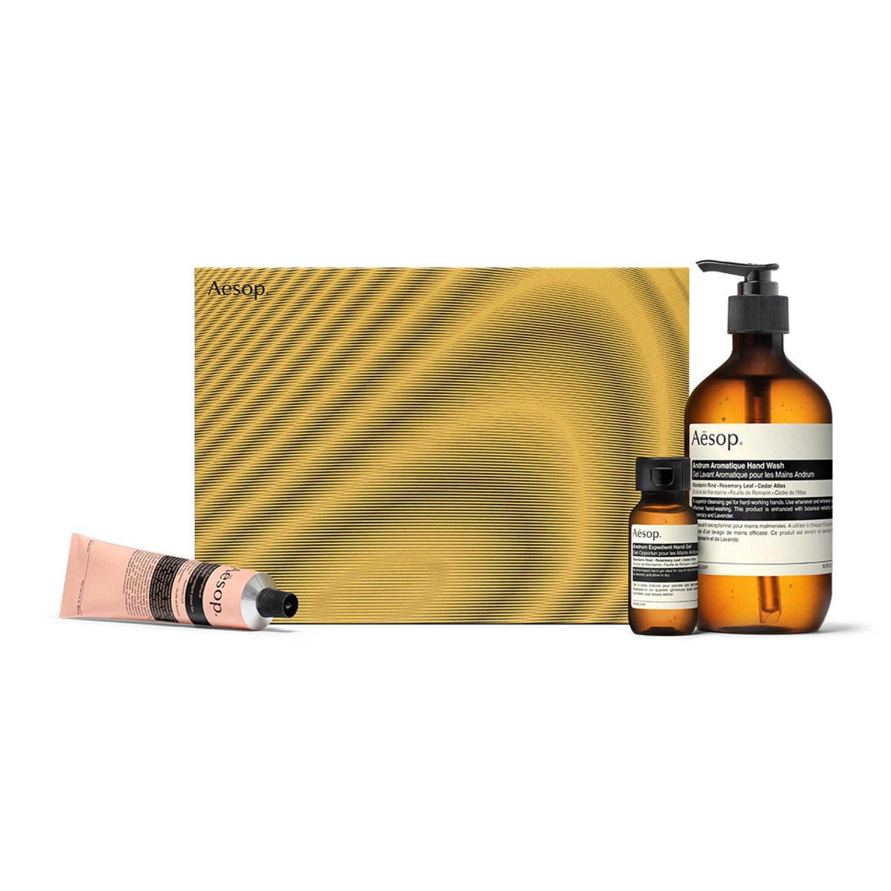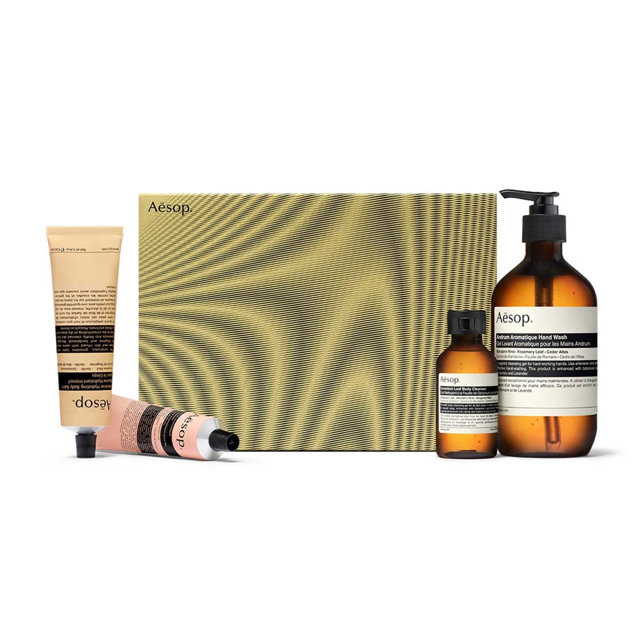 1つ目は全身と手肌をいたわるアイテムが揃った「マジェスティック メロディーズ」。ハンドケアとボディケアの両方がかなうこのキットは、大切な人への贈り物にも最適。ロングセラーのアンドラム アロマティック ハンドウォッシュとハンドバームに加え、インテンシブ ハイドレーティング ボディバームとゼラニウム ボディクレンザーをセットに。