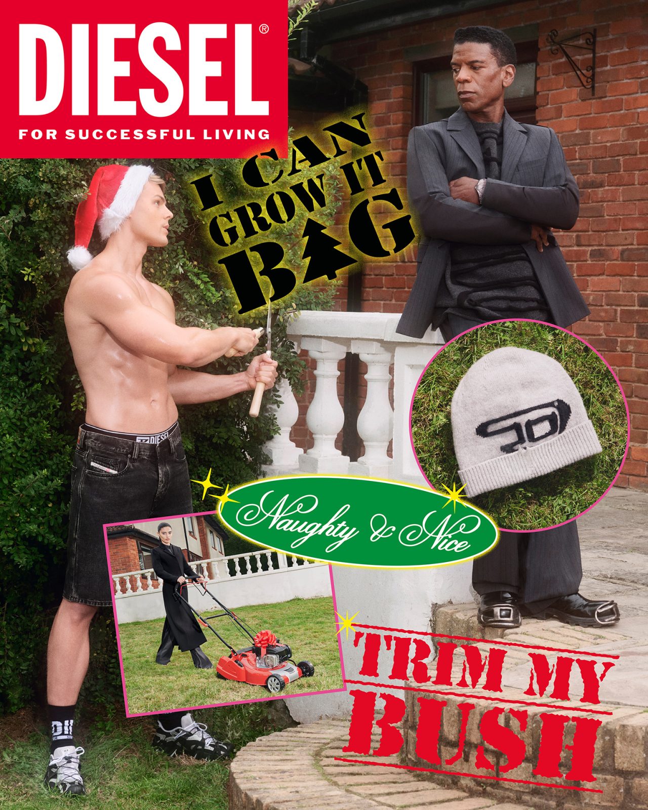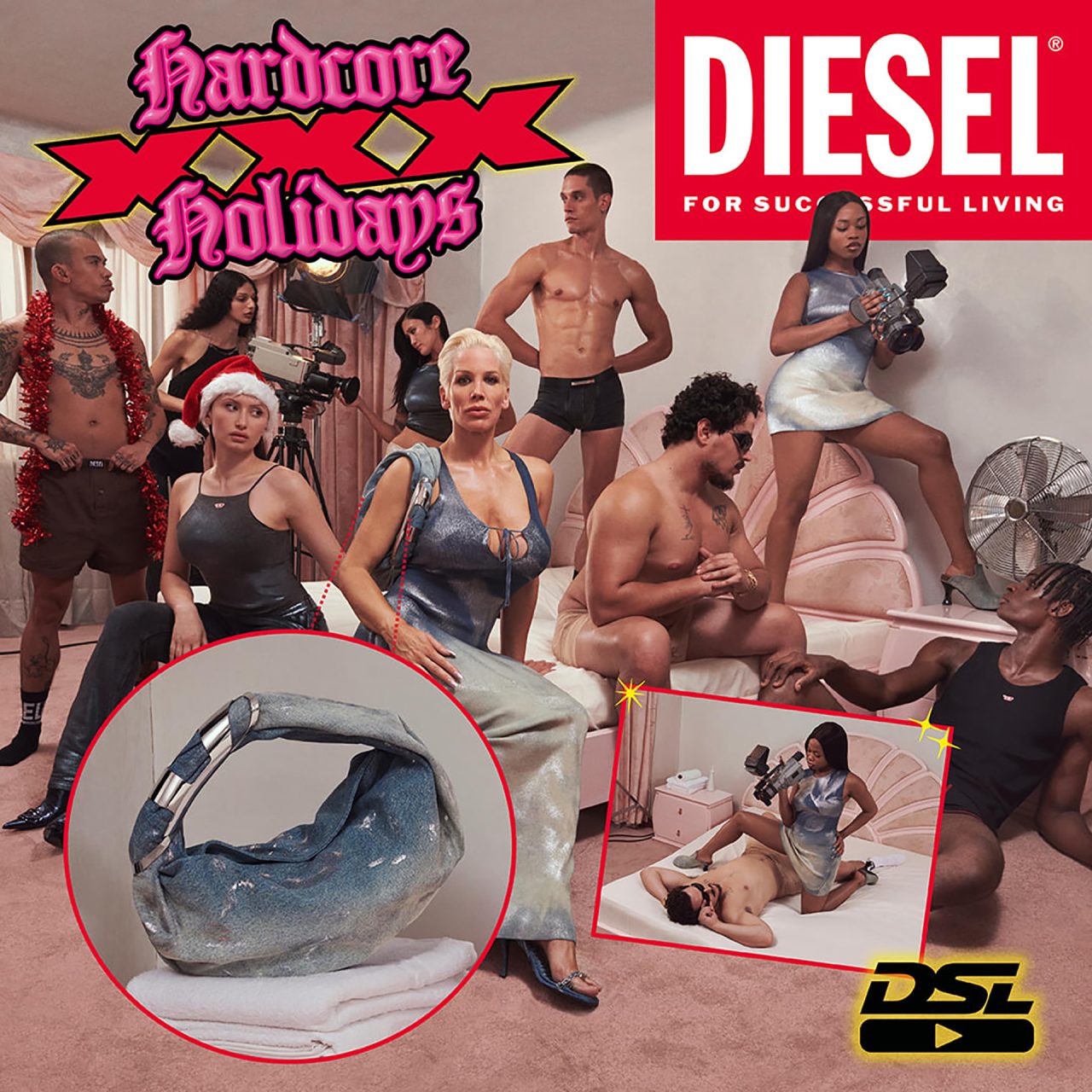 クリエイティブ・ディレクターの Glenn Martens (グレン・マーティンス) のディレクションのもと、アートディレクションは Chris Simmons (クリス・シモンズ)、フォトグラファーは Reto Schmid (レト・シュミット) によって手がけらた DIESEL 2023ホリデーコレクションのキャンペーン。キャストは、有名なポルノスターやソーシャルメディア OnlyFans のクリエイターなど年齢、性別、人種、民族の多様性を象徴する顔ぶれが集結した。