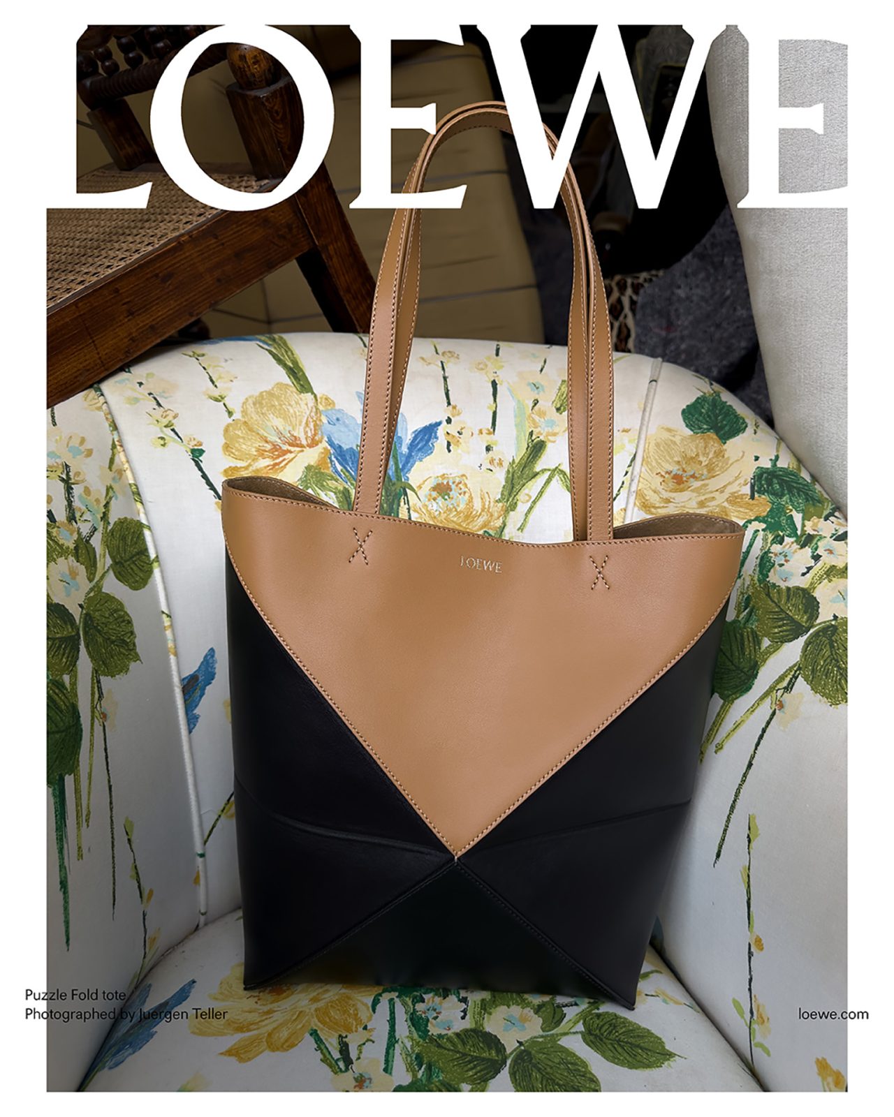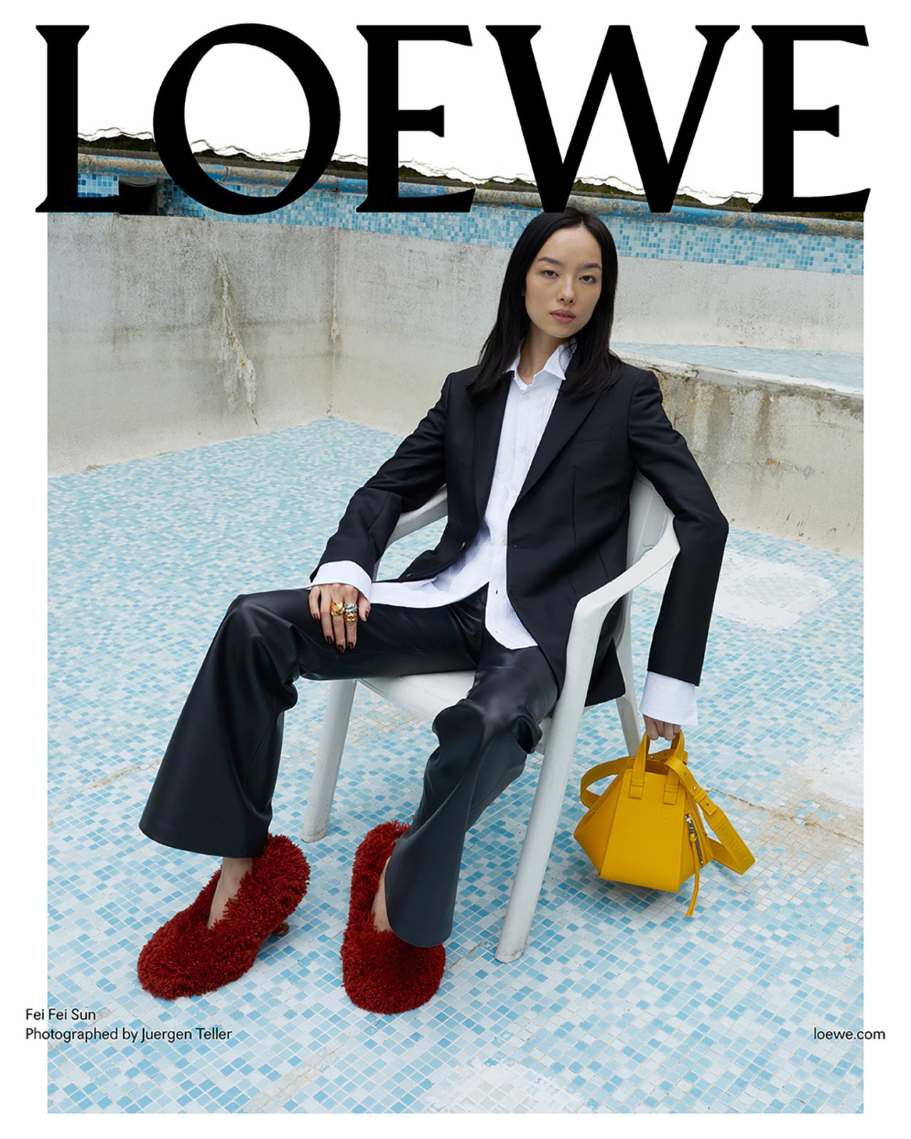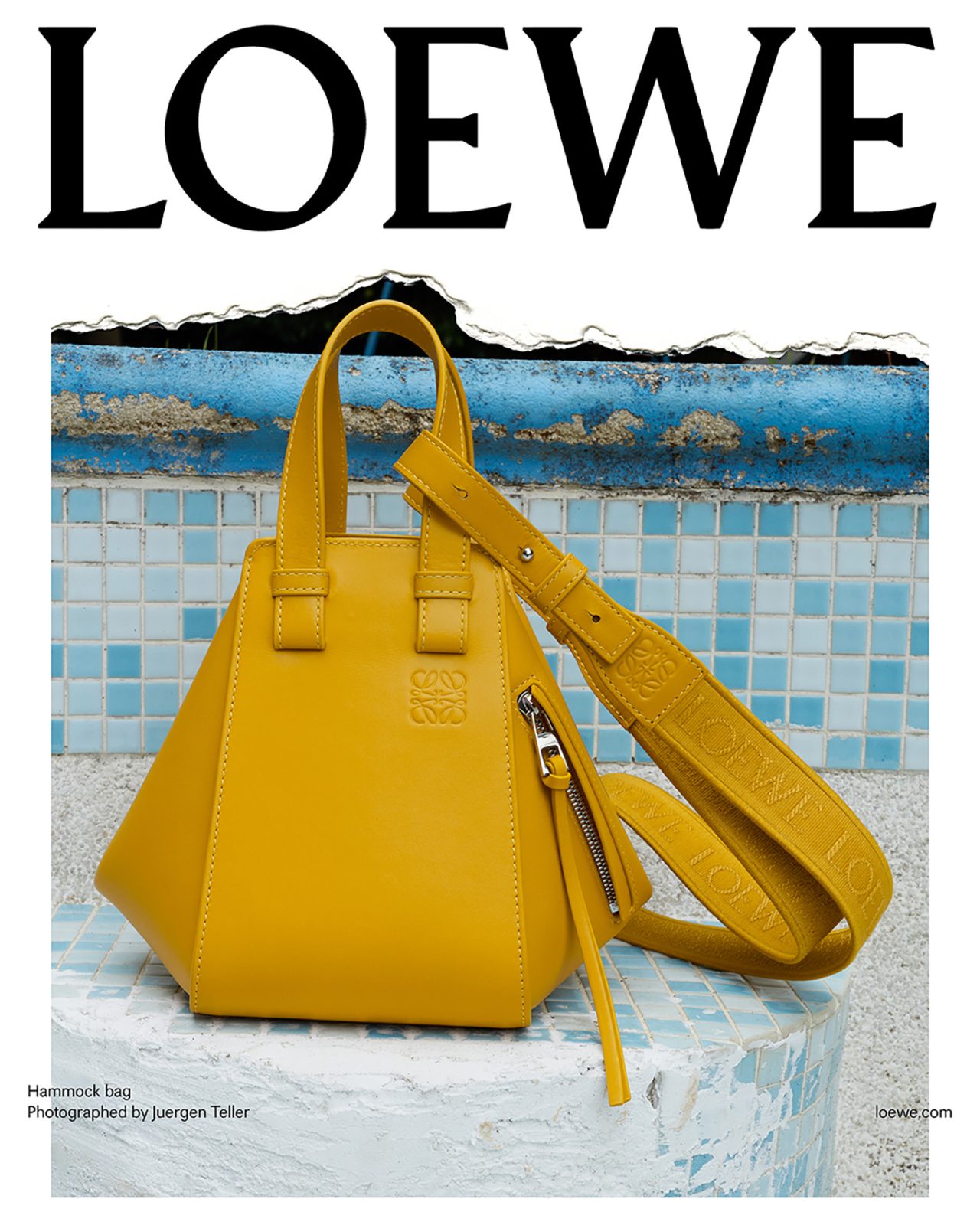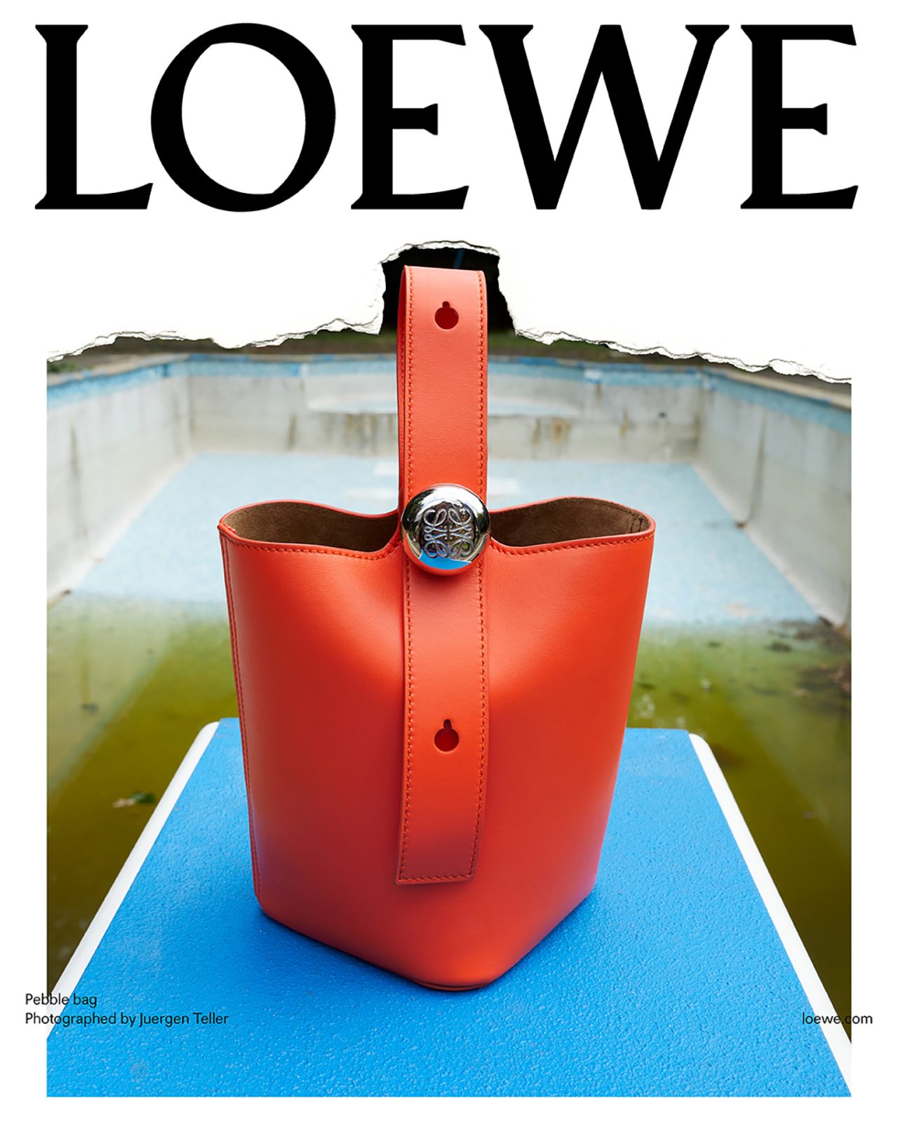 撮影を務めた Juergen Teller は過去に何度も LOEWE とのコラボを果たしており、前回の2023年秋冬プレコレクションでは、各ビジュアルに Juergen Teller 自身のアーカイブ作品を背景に使用するなど、常に挑戦的な作品を撮り続けている。またキャンペーンビジュアルは、一部を破り取られた写真を白い背景の上に置いて再撮影され、LOEWE の核であるクラフトへの信念から、このユニークな制作方法が採用された。