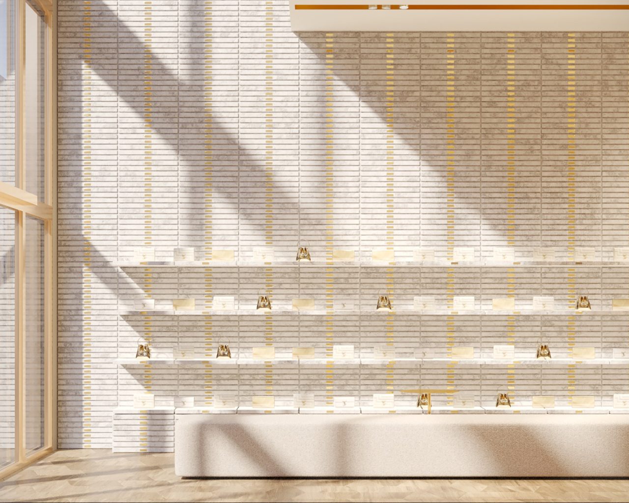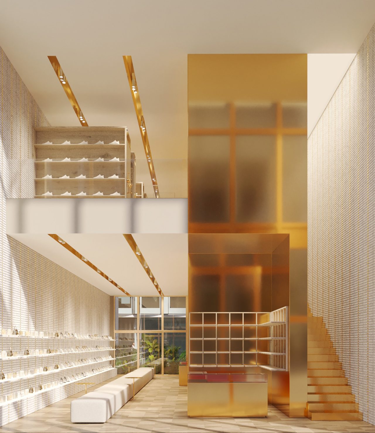銀座コンセプトストアでは、CROSBY STUDIO の創設者兼クリエイティブディレクターを務める HARRY NURIEV (ハリー・ヌリエフ) が手がけたパリのモンテーニュ通りにオープンした Jimmy Choo のポップアップブティックを進化させた内装が広がる。空間の全てに、強さとグラマラスを兼ね備えたブランドのクラフツマンシップが散りばめられた。
