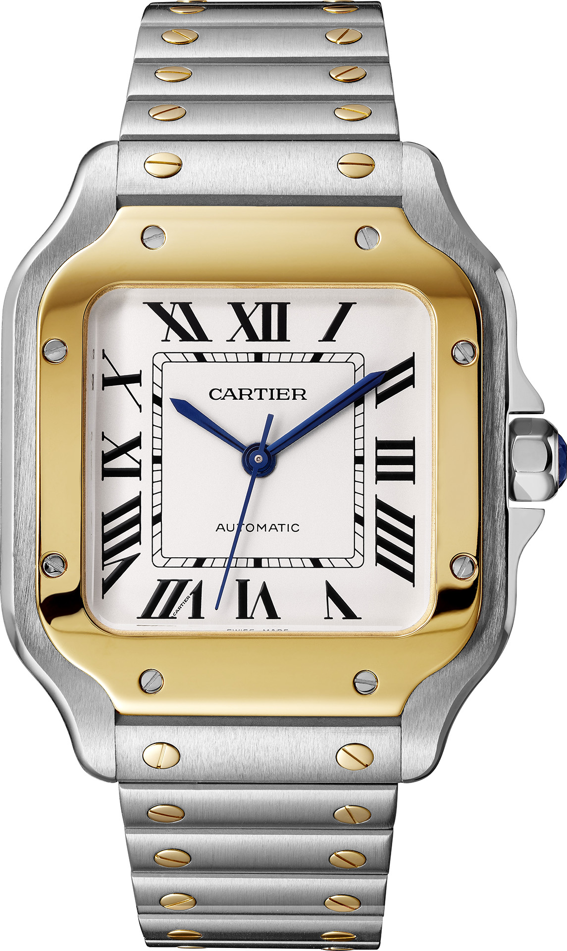「サントス ドゥ カルティエ」ウォッチ SS × YG、自動巻き ケース幅35.1 mm ¥1,557,600 (Vincent Wulveryck © Cartier)
